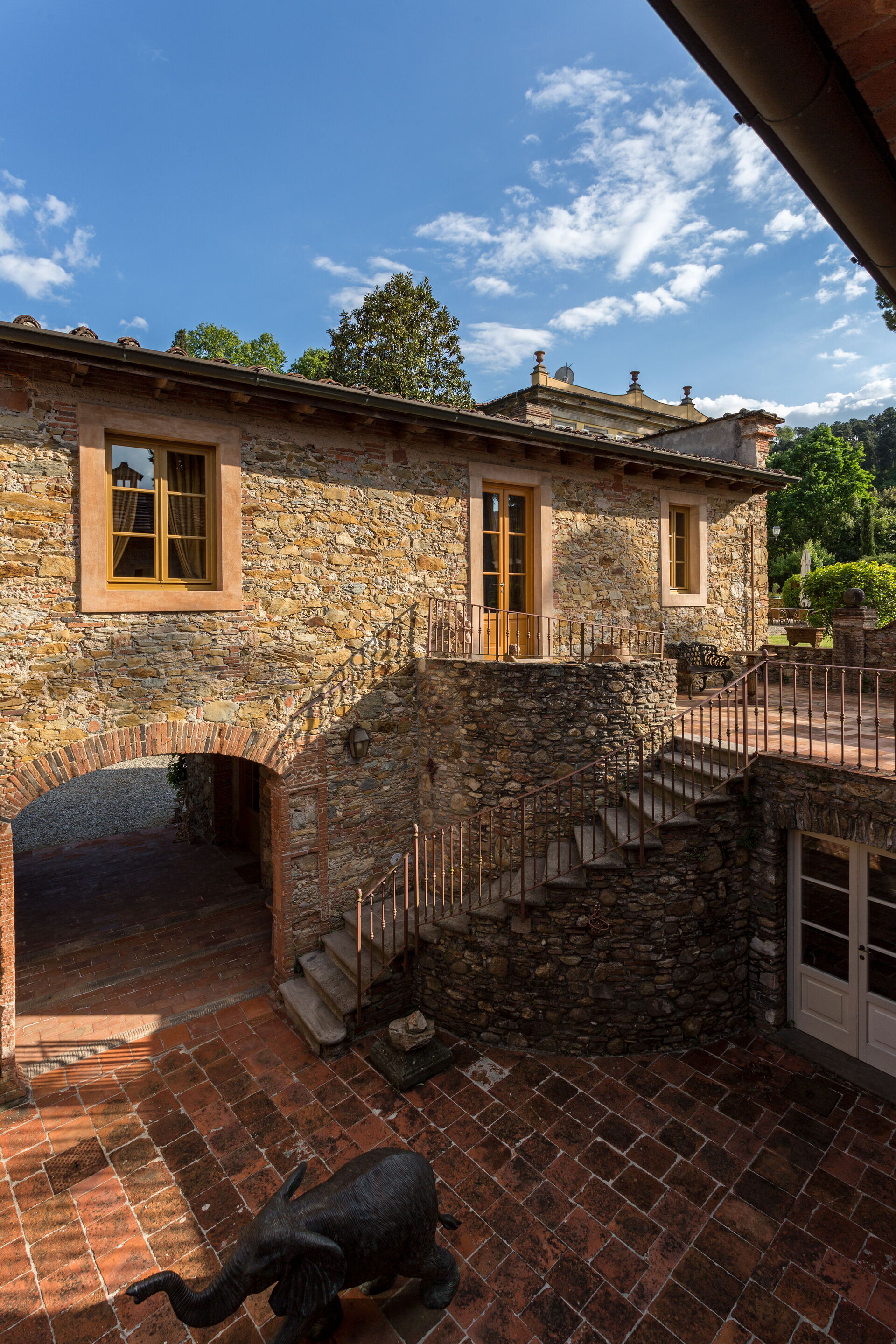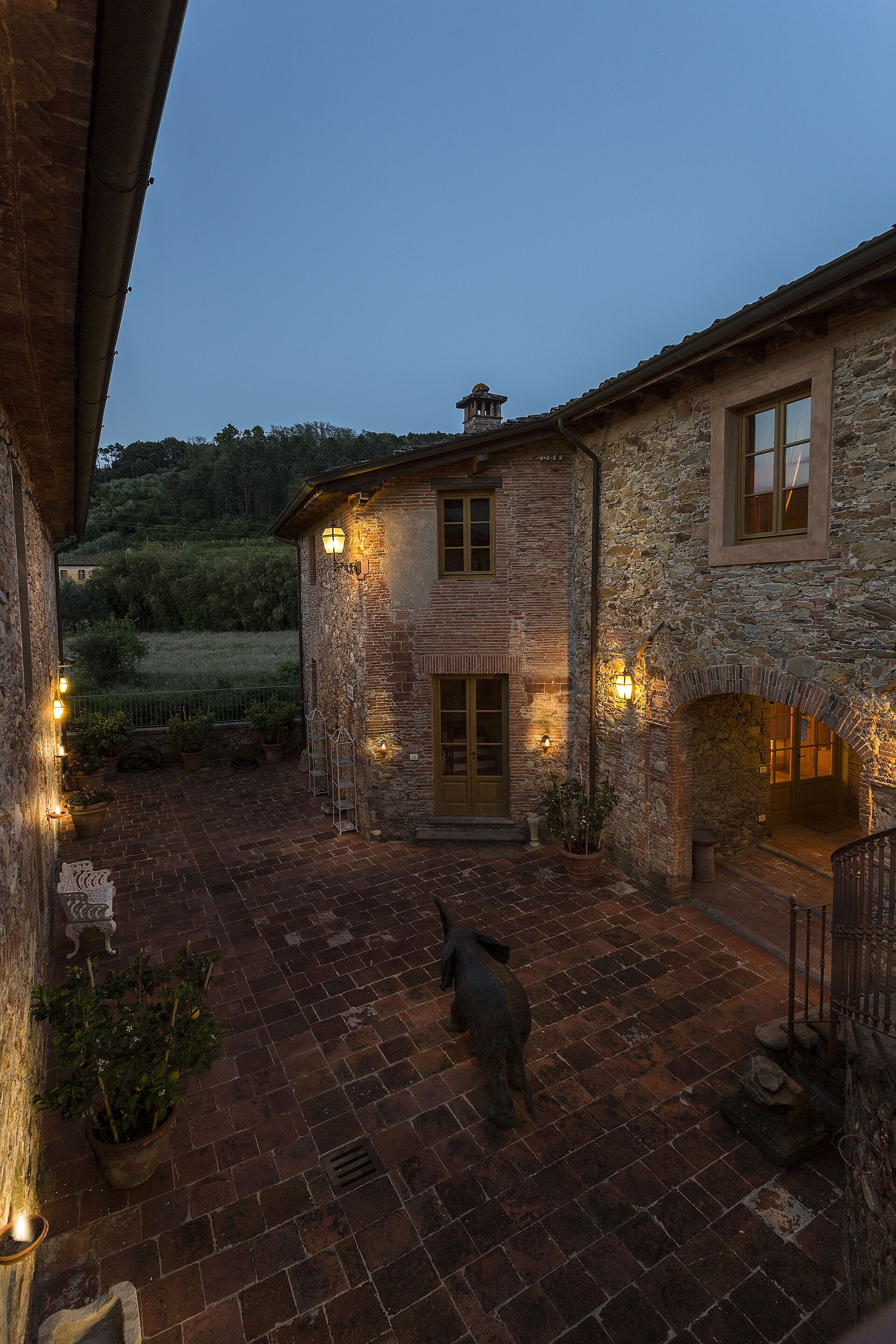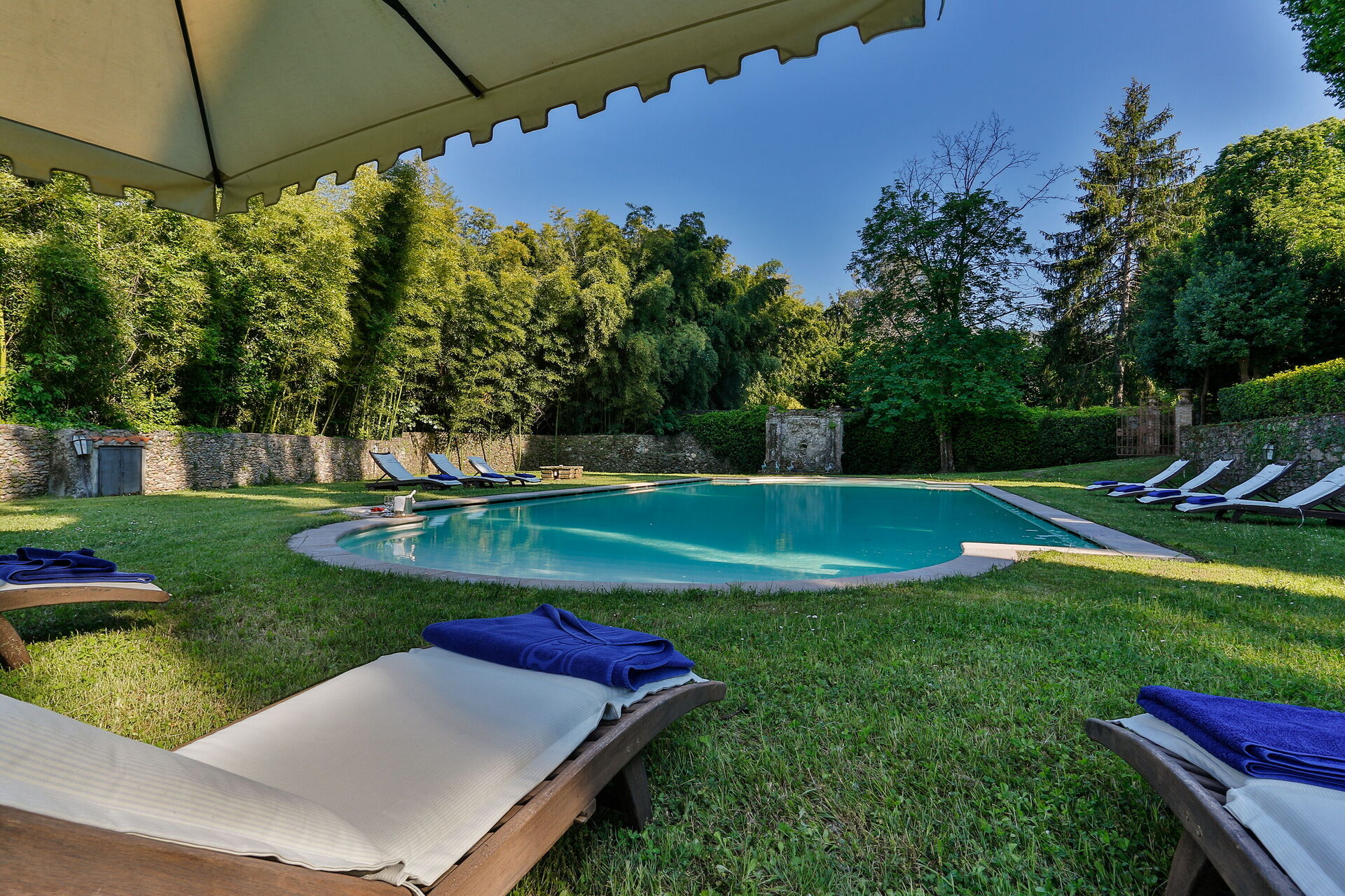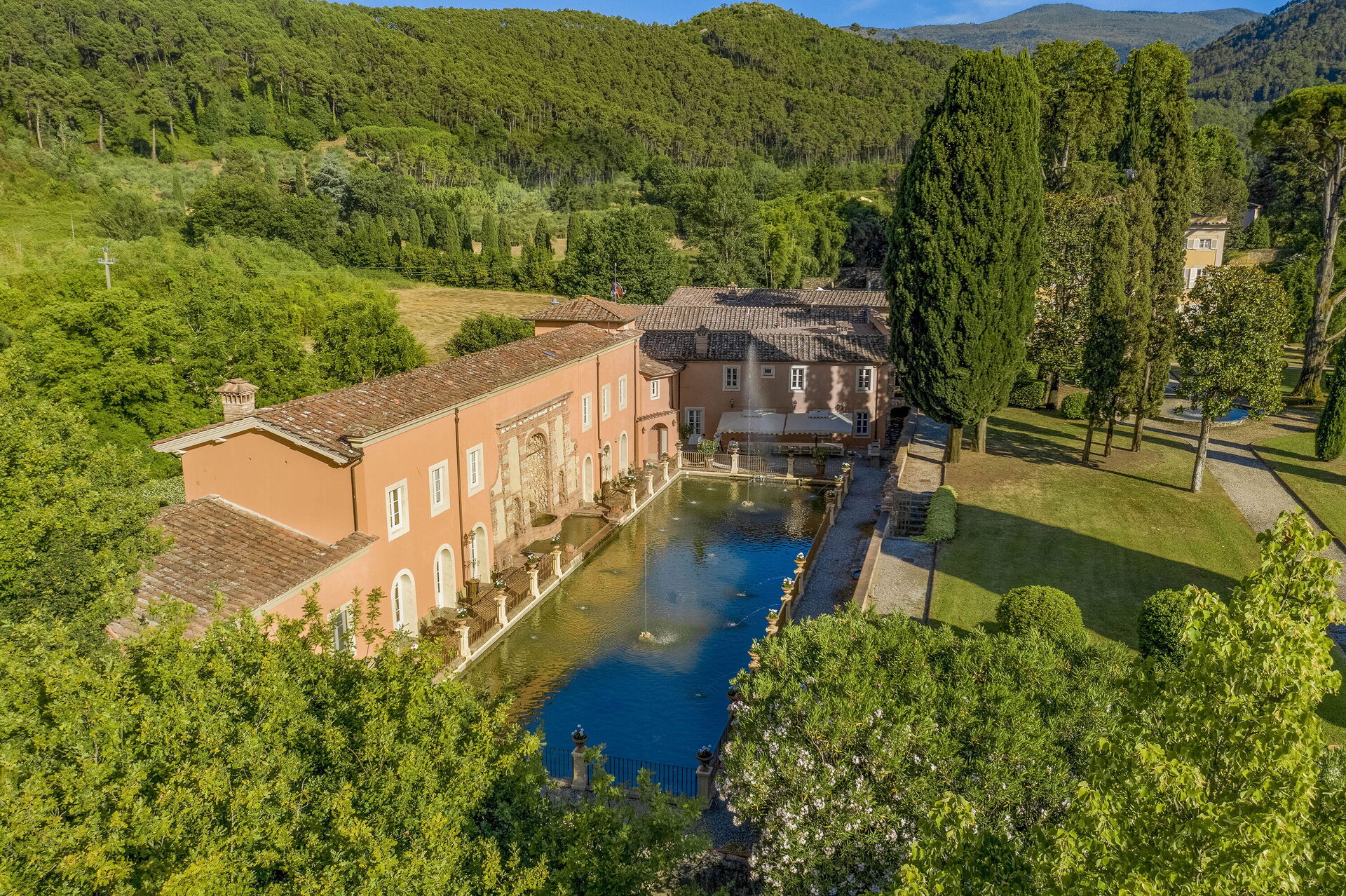 Posti letto 24 Camere da letto 12 Bagni 12 Superficie abitabile 1600m² Prezzo base settimanale € 23200 Circondato da colline piene di cinghiali, Borgo Bernardini era un tempo la residenza di caccia del Conte Cosimo Bernardini di Lucca che trascorreva i suoi fine settimana in campagna. La famiglia Bernardini ebbe un ruolo fondamentale nell'amministrazione e nella politica della Repubblica di Lucca e fu responsabile del mantenimento della legge (magistrati) e dell'ordine dal 1388 al 1798. Continuarono a sostenere il nuovo ordine politico con l'invasione di Napoleone verso la fine del XVIII secolo. In quel periodo, il Borgo fu ampliato per diventare un piccolo villaggio per i lavoratori della tenuta che comprendeva un frantoio, dei fornai e una cappella. Oggi la tenuta è stata trasformata in un lussuoso ed esclusivo rifugio toscano in un piccolo borgo circondato da un vasto parco decorato da fontane e giochi d'acqua, alberi secolari, piazzette e vicoli storici. La villa dispone di una piscina privata (18m x 8m x 1,8m) e di numerosi lettini dove potrai rilassarti godendoti la tranquillità della campagna toscana. Vicino alla piscina c'è una sala fitness con accesso al giardino e un grazioso soggiorno con mobili in vimini e grandi vetrate che si affacciano sull'area della piscina, il luogo ideale per leggere un libro o fare un massaggio rilassante o un trattamento di bellezza. Il barbecue e un'ampia zona pranzo all'aperto con 26 posti a sedere si trovano in un antico cortile della tenuta con un'imponente "Peschiera". Le aree esterne sono superbe, così come gli interni mozzafiato. Il nostro staff può aiutare gli ospiti con suggerimenti per sfruttare al meglio il loro soggiorno, garantendo un'esperienza esclusiva e altamente personalizzata. Possiamo organizzare corsi di cucina e servizio di vino/olio/gelato. (minimo 6 partecipanti); trasferimenti; escursioni; eventi e feste. (a pagamento). Incluso nel prezzo di affitto "Servizio di chef Servizio di chef giornaliero per la preparazione della colazione e di un pasto (pranzo o cena) 6 giorni a settimana (mercoledì giorno di riposo) "Servizio di pulizia giornaliero Servizio di pulizia giornaliero al mattino 6 giorni a settimana (domenica giorno di riposo) "Servizio di concierge "Elettricità A/C (fino a 2000 KW, oltre questa cifra il cliente dovrà pagare in base all'utilizzo), acqua, gas "Elettricità di riscaldamento (fino a 2000 KW, Oltre questa cifra il cliente dovrà pagare in base all'utilizzo), acqua, gas "Cambio biancheria il sabato e il mercoledì "Internet wifi "Accesso ai campi da tennis/calcio/pallavolo + palline e racchette "Pulizia della piscina e manutenzione del giardino "Asciugamani da bagno "Biancheria da letto "Asciugamani da piscina "Servizio di facchinaggio "Selezionato personalmente "Le case più raffinate, qualità garantita "Assistenza agli ospiti 24/7