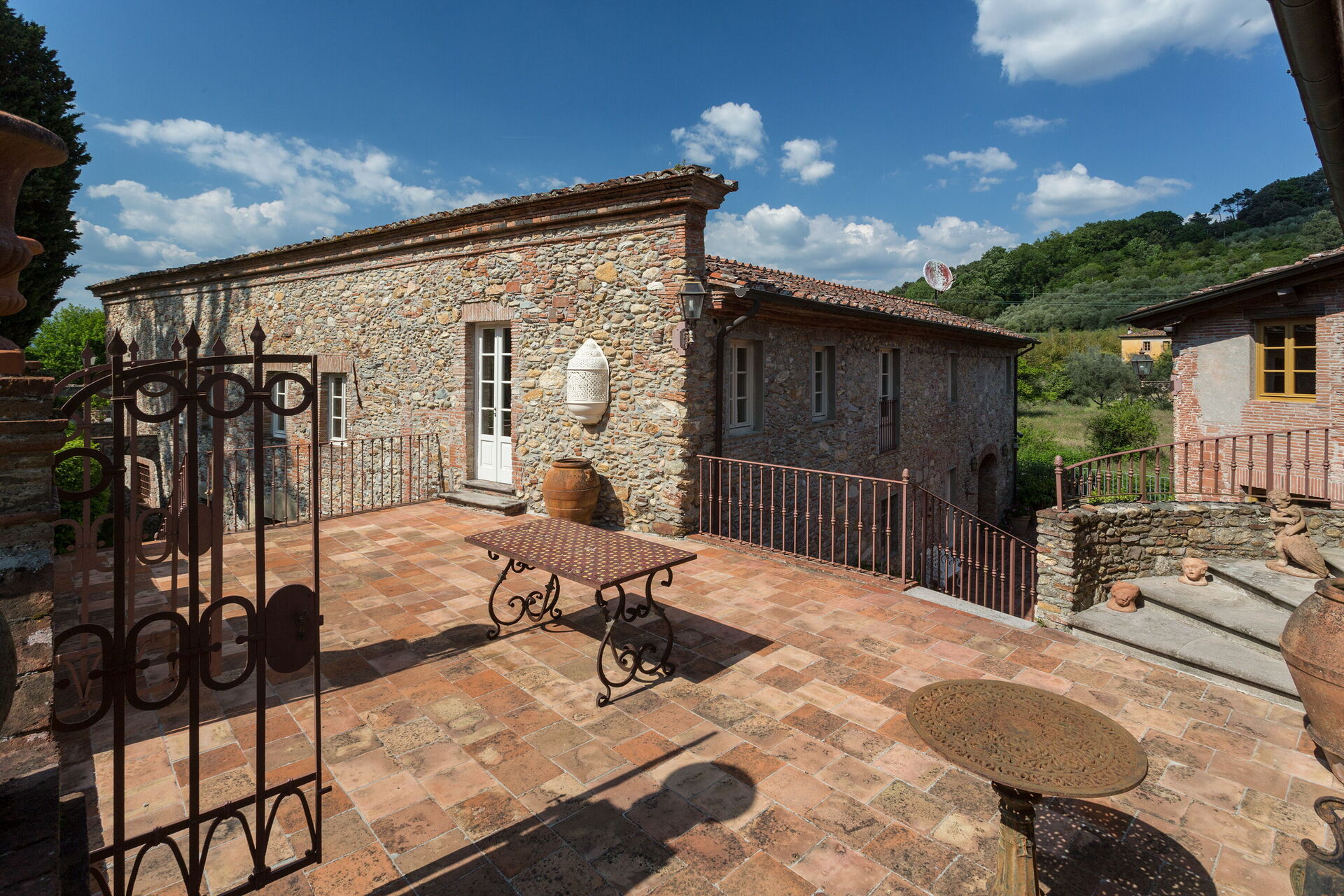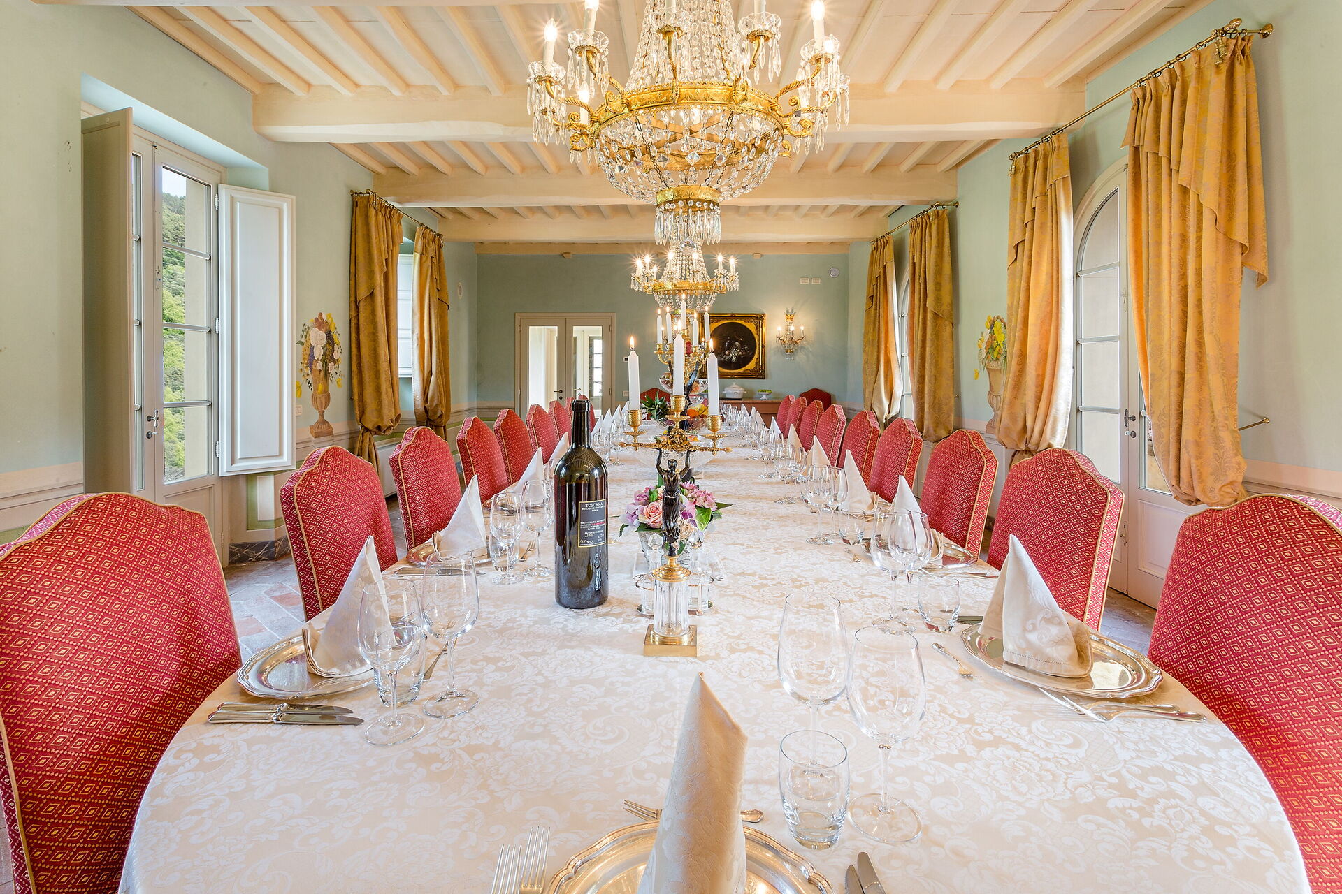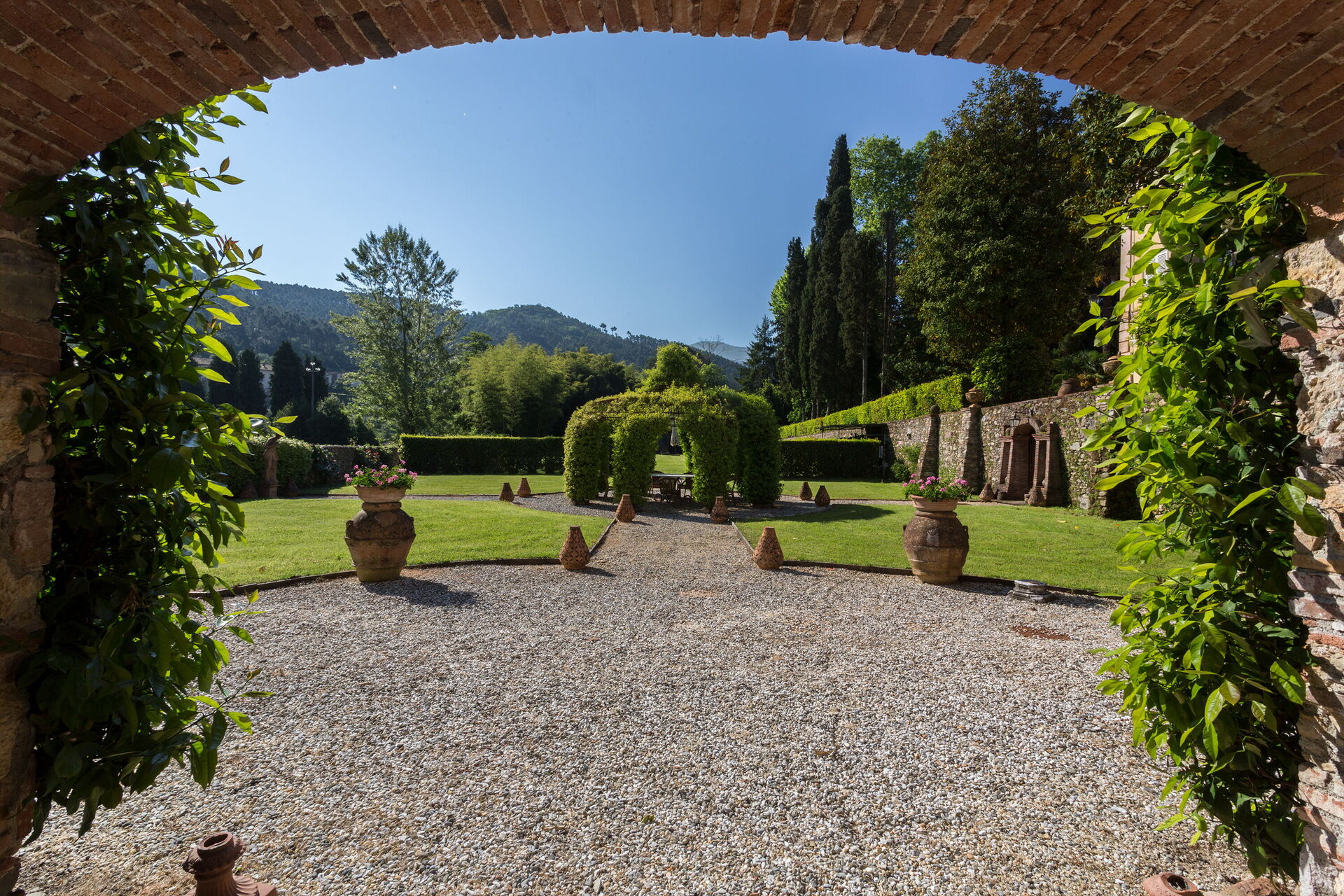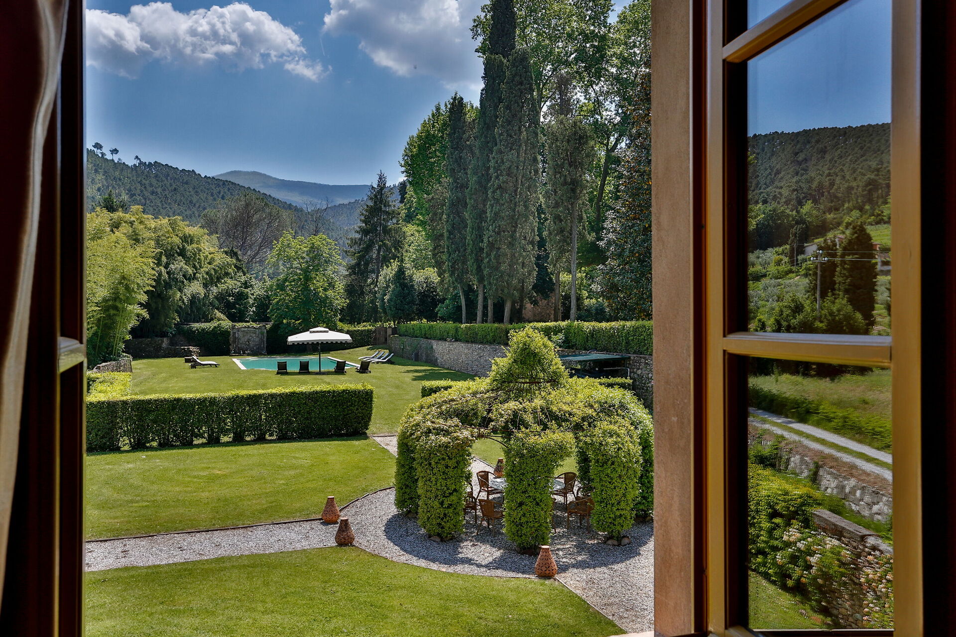 Posti letto 24 Camere da letto 12 Bagni 12 Superficie abitabile 1600m² Prezzo base settimanale € 23200 Circondato da colline piene di cinghiali, Borgo Bernardini era un tempo la residenza di caccia del Conte Cosimo Bernardini di Lucca che trascorreva i suoi fine settimana in campagna. La famiglia Bernardini ebbe un ruolo fondamentale nell'amministrazione e nella politica della Repubblica di Lucca e fu responsabile del mantenimento della legge (magistrati) e dell'ordine dal 1388 al 1798. Continuarono a sostenere il nuovo ordine politico con l'invasione di Napoleone verso la fine del XVIII secolo. In quel periodo, il Borgo fu ampliato per diventare un piccolo villaggio per i lavoratori della tenuta che comprendeva un frantoio, dei fornai e una cappella. Oggi la tenuta è stata trasformata in un lussuoso ed esclusivo rifugio toscano in un piccolo borgo circondato da un vasto parco decorato da fontane e giochi d'acqua, alberi secolari, piazzette e vicoli storici. La villa dispone di una piscina privata (18m x 8m x 1,8m) e di numerosi lettini dove potrai rilassarti godendoti la tranquillità della campagna toscana. Vicino alla piscina c'è una sala fitness con accesso al giardino e un grazioso soggiorno con mobili in vimini e grandi vetrate che si affacciano sull'area della piscina, il luogo ideale per leggere un libro o fare un massaggio rilassante o un trattamento di bellezza. Il barbecue e un'ampia zona pranzo all'aperto con 26 posti a sedere si trovano in un antico cortile della tenuta con un'imponente "Peschiera". Le aree esterne sono superbe, così come gli interni mozzafiato. Il nostro staff può aiutare gli ospiti con suggerimenti per sfruttare al meglio il loro soggiorno, garantendo un'esperienza esclusiva e altamente personalizzata. Possiamo organizzare corsi di cucina e servizio di vino/olio/gelato. (minimo 6 partecipanti); trasferimenti; escursioni; eventi e feste. (a pagamento). Incluso nel prezzo di affitto "Servizio di chef Servizio di chef giornaliero per la preparazione della colazione e di un pasto (pranzo o cena) 6 giorni a settimana (mercoledì giorno di riposo) "Servizio di pulizia giornaliero Servizio di pulizia giornaliero al mattino 6 giorni a settimana (domenica giorno di riposo) "Servizio di concierge "Elettricità A/C (fino a 2000 KW, oltre questa cifra il cliente dovrà pagare in base all'utilizzo), acqua, gas "Elettricità di riscaldamento (fino a 2000 KW, Oltre questa cifra il cliente dovrà pagare in base all'utilizzo), acqua, gas "Cambio biancheria il sabato e il mercoledì "Internet wifi "Accesso ai campi da tennis/calcio/pallavolo + palline e racchette "Pulizia della piscina e manutenzione del giardino "Asciugamani da bagno "Biancheria da letto "Asciugamani da piscina "Servizio di facchinaggio "Selezionato personalmente "Le case più raffinate, qualità garantita "Assistenza agli ospiti 24/7