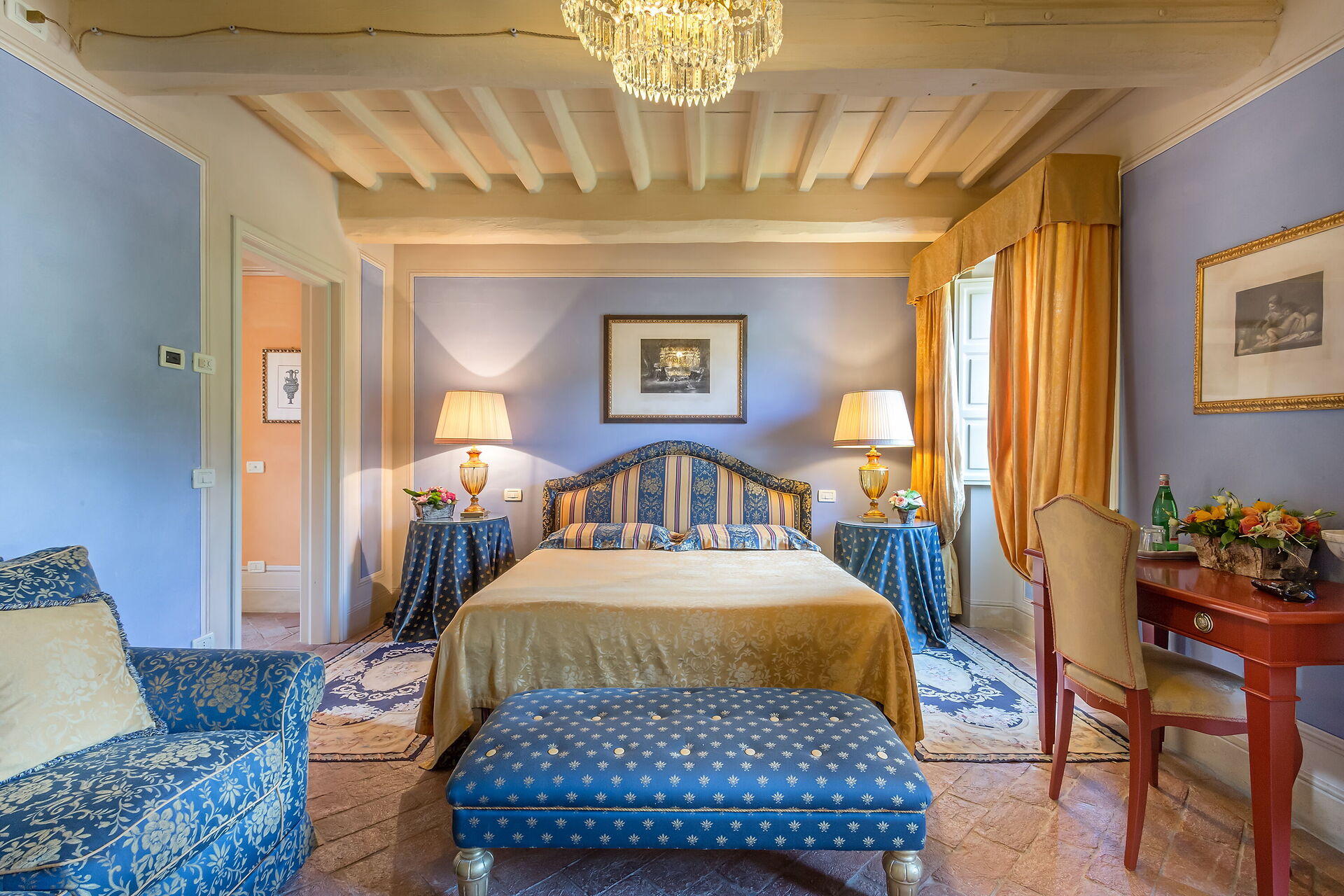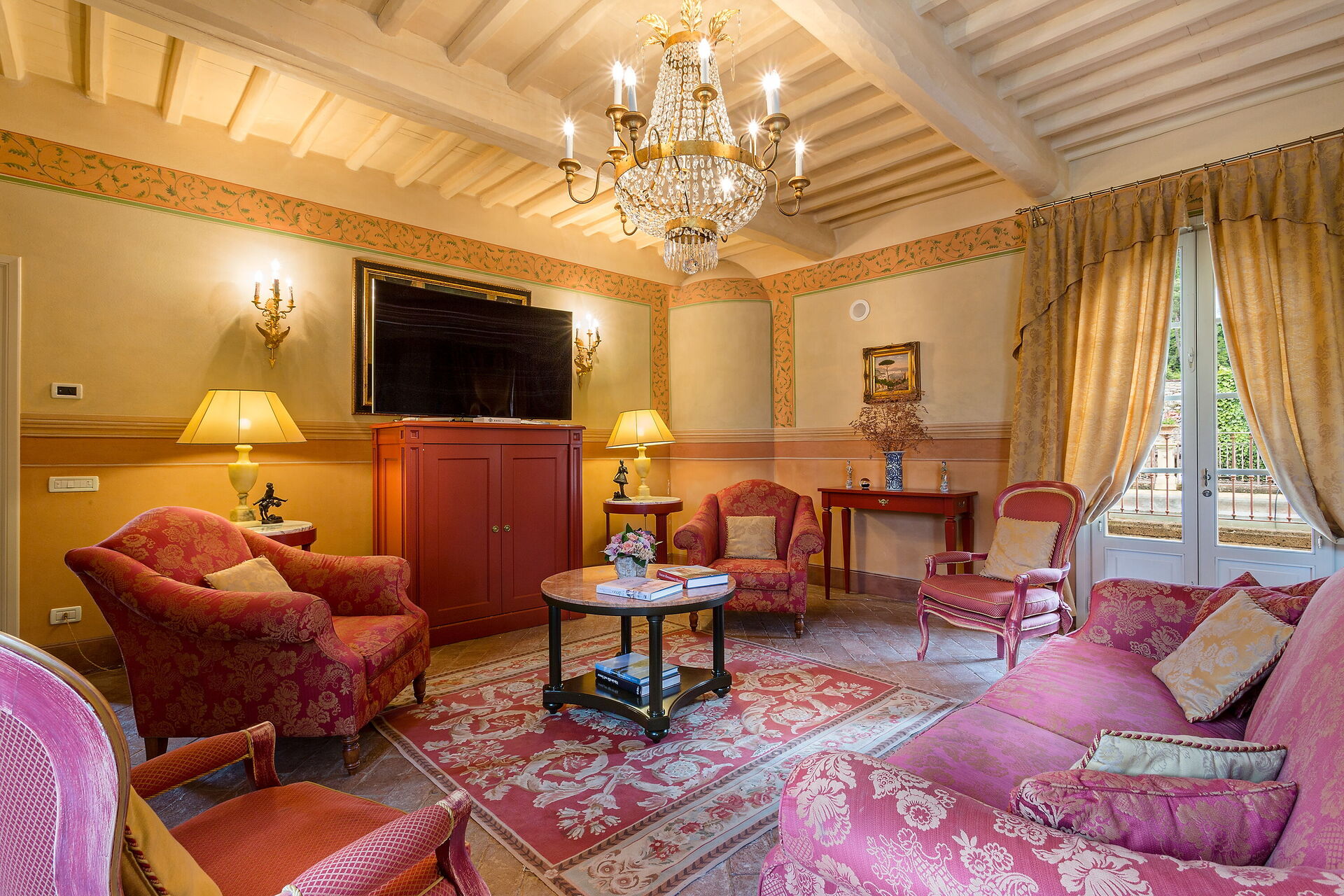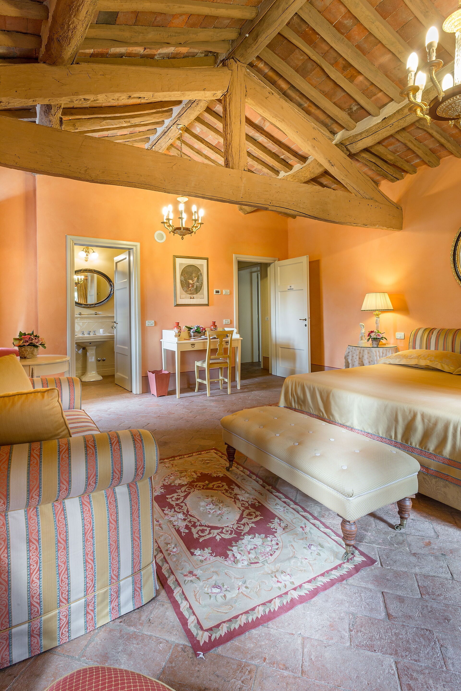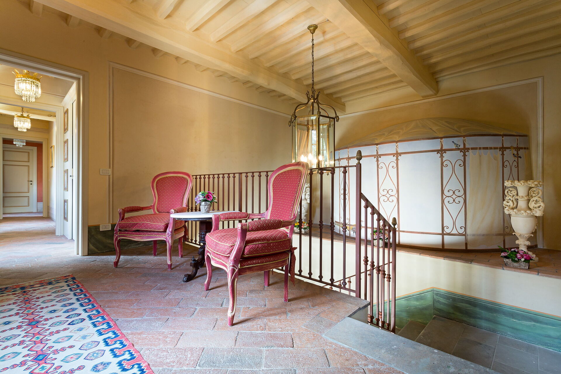 Posti letto 24 Camere da letto 12 Bagni 12 Superficie abitabile 1600m² Prezzo base settimanale € 23200 Circondato da colline piene di cinghiali, Borgo Bernardini era un tempo la residenza di caccia del Conte Cosimo Bernardini di Lucca che trascorreva i suoi fine settimana in campagna. La famiglia Bernardini ebbe un ruolo fondamentale nell'amministrazione e nella politica della Repubblica di Lucca e fu responsabile del mantenimento della legge (magistrati) e dell'ordine dal 1388 al 1798. Continuarono a sostenere il nuovo ordine politico con l'invasione di Napoleone verso la fine del XVIII secolo. In quel periodo, il Borgo fu ampliato per diventare un piccolo villaggio per i lavoratori della tenuta che comprendeva un frantoio, dei fornai e una cappella. Oggi la tenuta è stata trasformata in un lussuoso ed esclusivo rifugio toscano in un piccolo borgo circondato da un vasto parco decorato da fontane e giochi d'acqua, alberi secolari, piazzette e vicoli storici. La villa dispone di una piscina privata (18m x 8m x 1,8m) e di numerosi lettini dove potrai rilassarti godendoti la tranquillità della campagna toscana. Vicino alla piscina c'è una sala fitness con accesso al giardino e un grazioso soggiorno con mobili in vimini e grandi vetrate che si affacciano sull'area della piscina, il luogo ideale per leggere un libro o fare un massaggio rilassante o un trattamento di bellezza. Il barbecue e un'ampia zona pranzo all'aperto con 26 posti a sedere si trovano in un antico cortile della tenuta con un'imponente "Peschiera". Le aree esterne sono superbe, così come gli interni mozzafiato. Il nostro staff può aiutare gli ospiti con suggerimenti per sfruttare al meglio il loro soggiorno, garantendo un'esperienza esclusiva e altamente personalizzata. Possiamo organizzare corsi di cucina e servizio di vino/olio/gelato. (minimo 6 partecipanti); trasferimenti; escursioni; eventi e feste. (a pagamento). Incluso nel prezzo di affitto "Servizio di chef Servizio di chef giornaliero per la preparazione della colazione e di un pasto (pranzo o cena) 6 giorni a settimana (mercoledì giorno di riposo) "Servizio di pulizia giornaliero Servizio di pulizia giornaliero al mattino 6 giorni a settimana (domenica giorno di riposo) "Servizio di concierge "Elettricità A/C (fino a 2000 KW, oltre questa cifra il cliente dovrà pagare in base all'utilizzo), acqua, gas "Elettricità di riscaldamento (fino a 2000 KW, Oltre questa cifra il cliente dovrà pagare in base all'utilizzo), acqua, gas "Cambio biancheria il sabato e il mercoledì "Internet wifi "Accesso ai campi da tennis/calcio/pallavolo + palline e racchette "Pulizia della piscina e manutenzione del giardino "Asciugamani da bagno "Biancheria da letto "Asciugamani da piscina "Servizio di facchinaggio "Selezionato personalmente "Le case più raffinate, qualità garantita "Assistenza agli ospiti 24/7