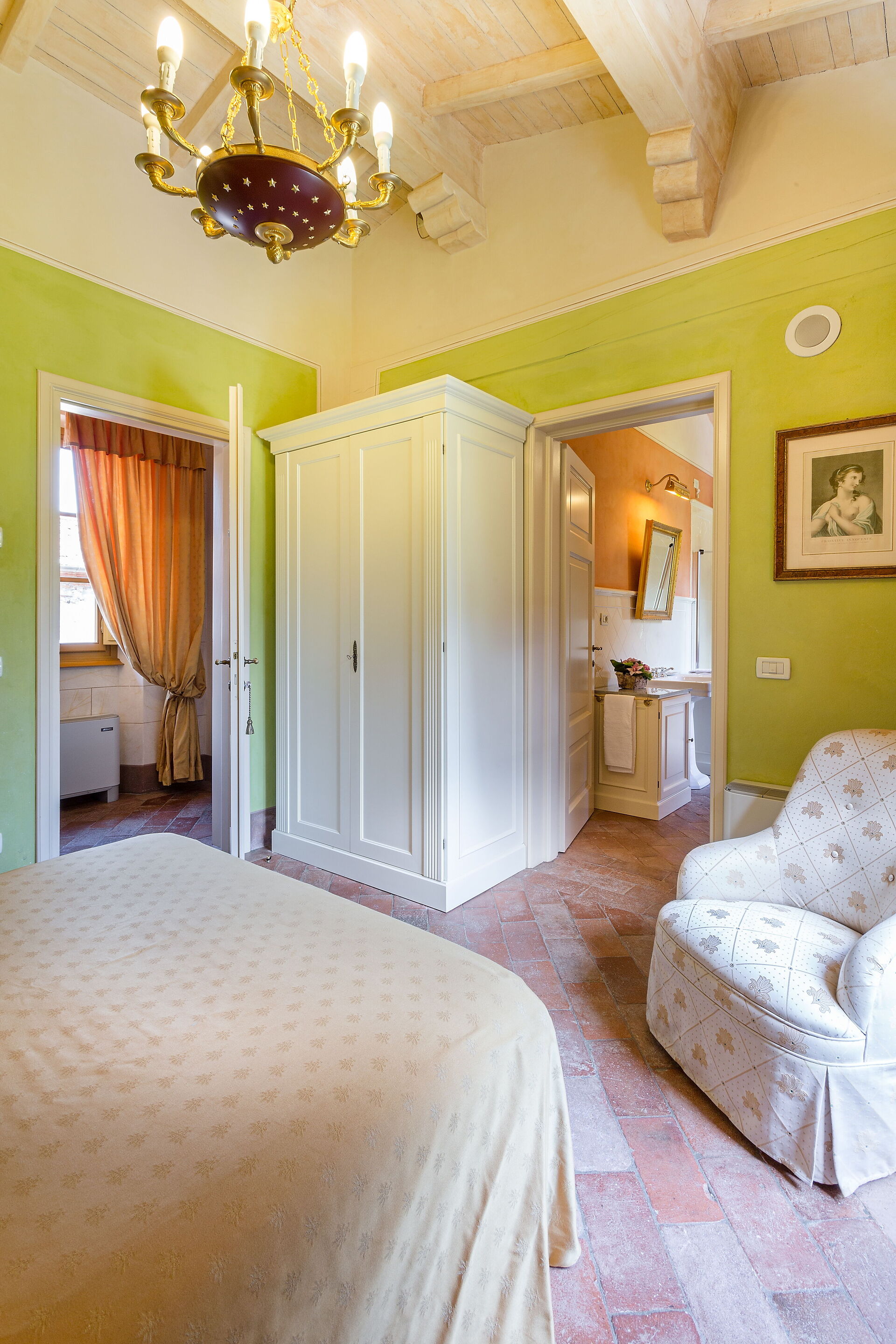 Camera da letto 9: letto matrimoniale (170cm x 190cm); bagno privato con vasca idromassaggio e doccia combinata