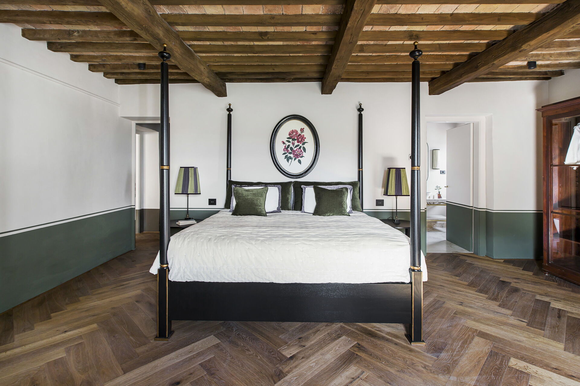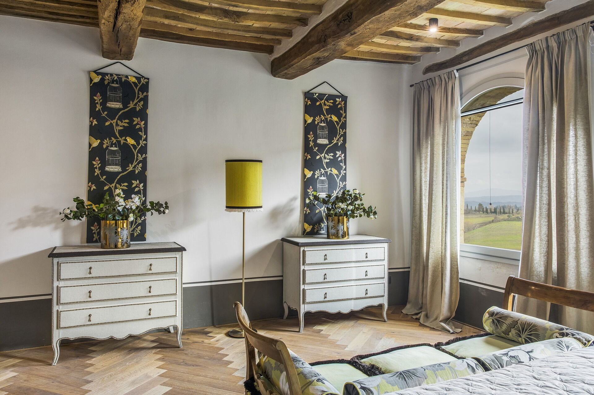 Mobili artigianali e un occhio moderno per i colori danno nuova vita a questo ex convento del XVI secolo situato tra la Val di Chiana e la Val d'Orcia in Toscana. Gli interni sono stati ristrutturati con gusto nel 2021 dal designer che ha voluto uno stile moderno combinato con alcuni elementi tradizionali. Tutte le camere da letto sono dotate di aria condizionata, TV ed eleganti bagni interni splendidamente decorati con marmo travertino. La villa principale vanta una palestra e una piscina coperta con idromassaggio, mentre la guest house è dotata di una sala da biliardo.