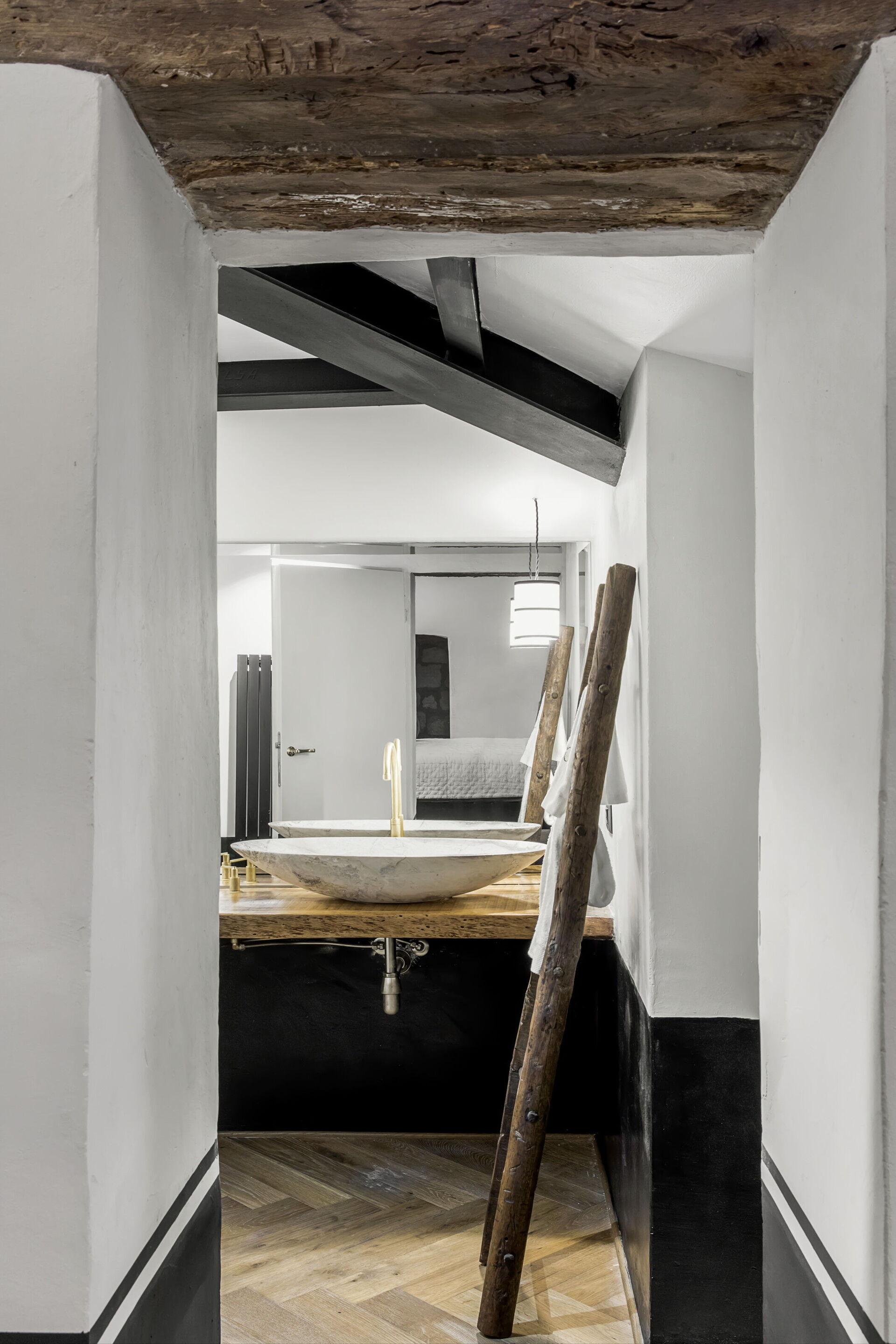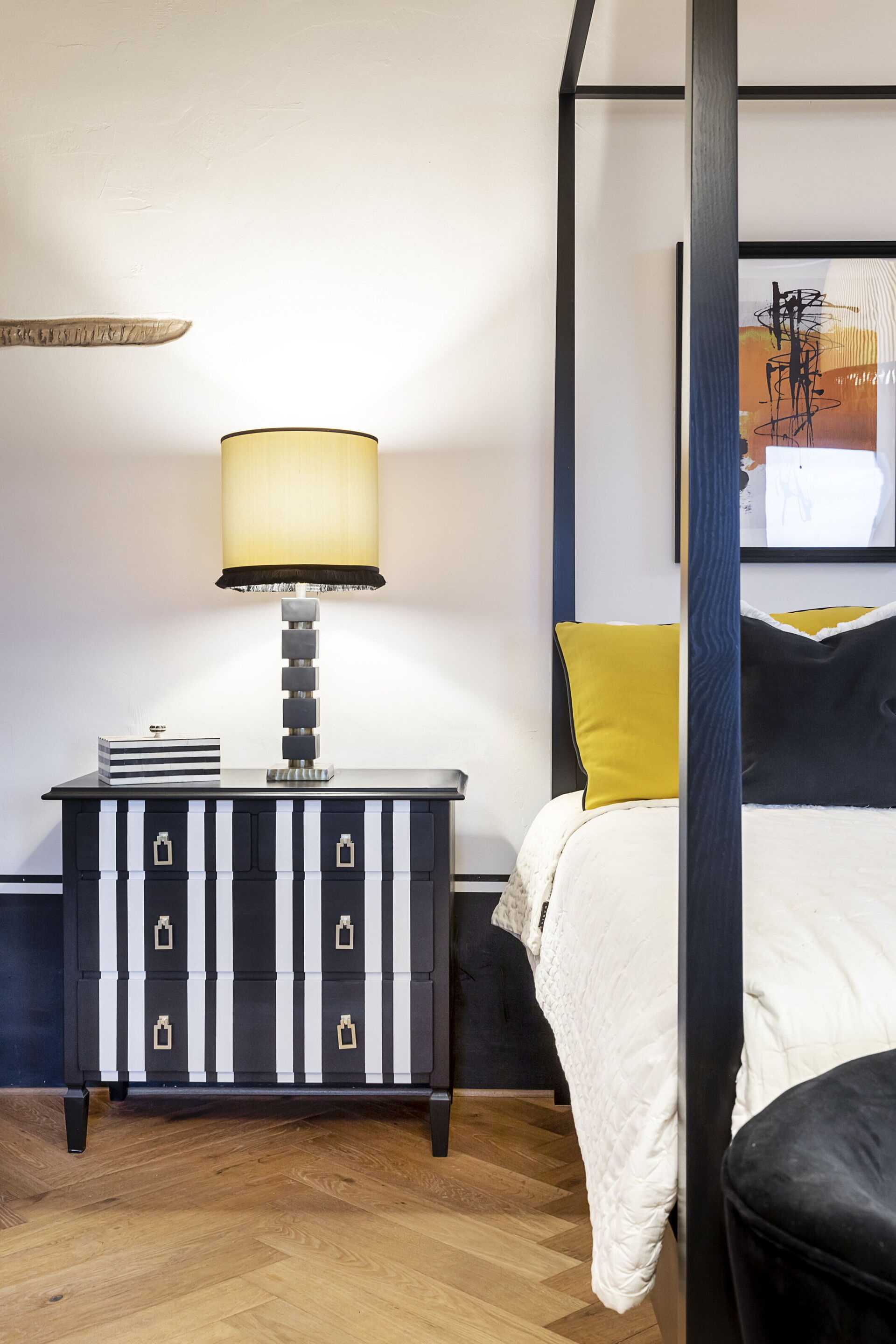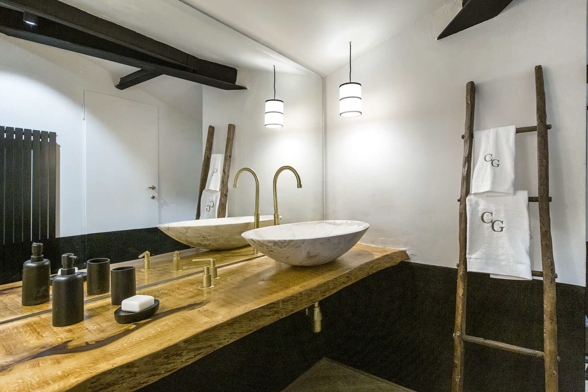 Camera molto grande / suite con letto king size e bagno diviso in due parti: da un lato lavandino, bidet e wc, e piccola cabina armadio, e dall'altro vasca/caverna con doccia. Smart tv e bagno con set di cortesia e asciugacapelli. Divano letto.