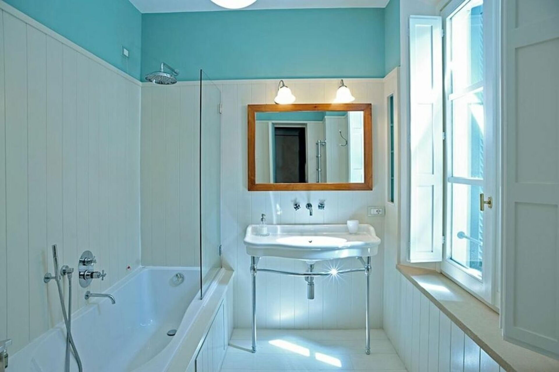 La villa dispone di 8 bagni, di cui 6 en suite, 1 di servizio completo, ed 1 senza doccia. Due bagni hanno la vasca, oltre alla doccia.