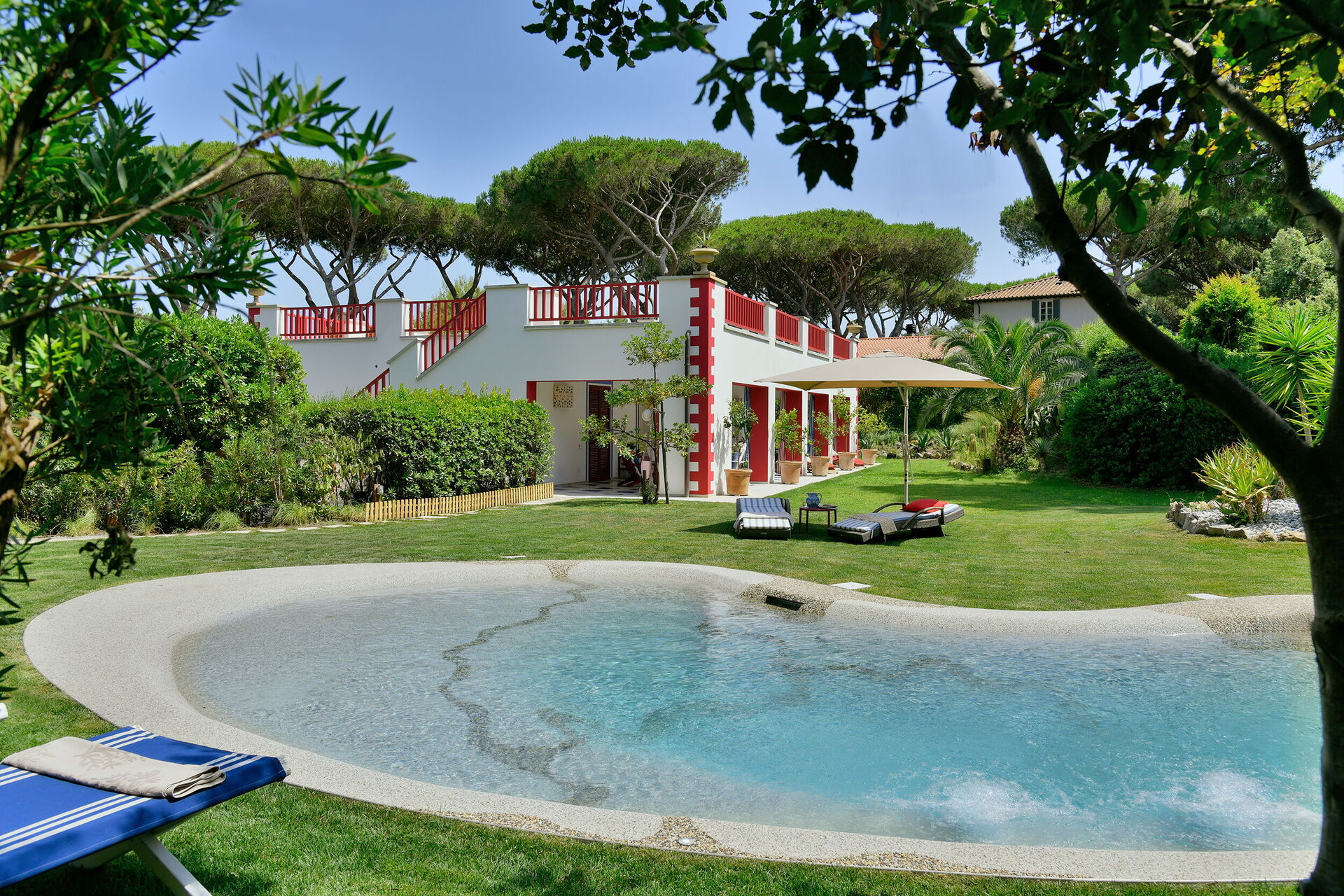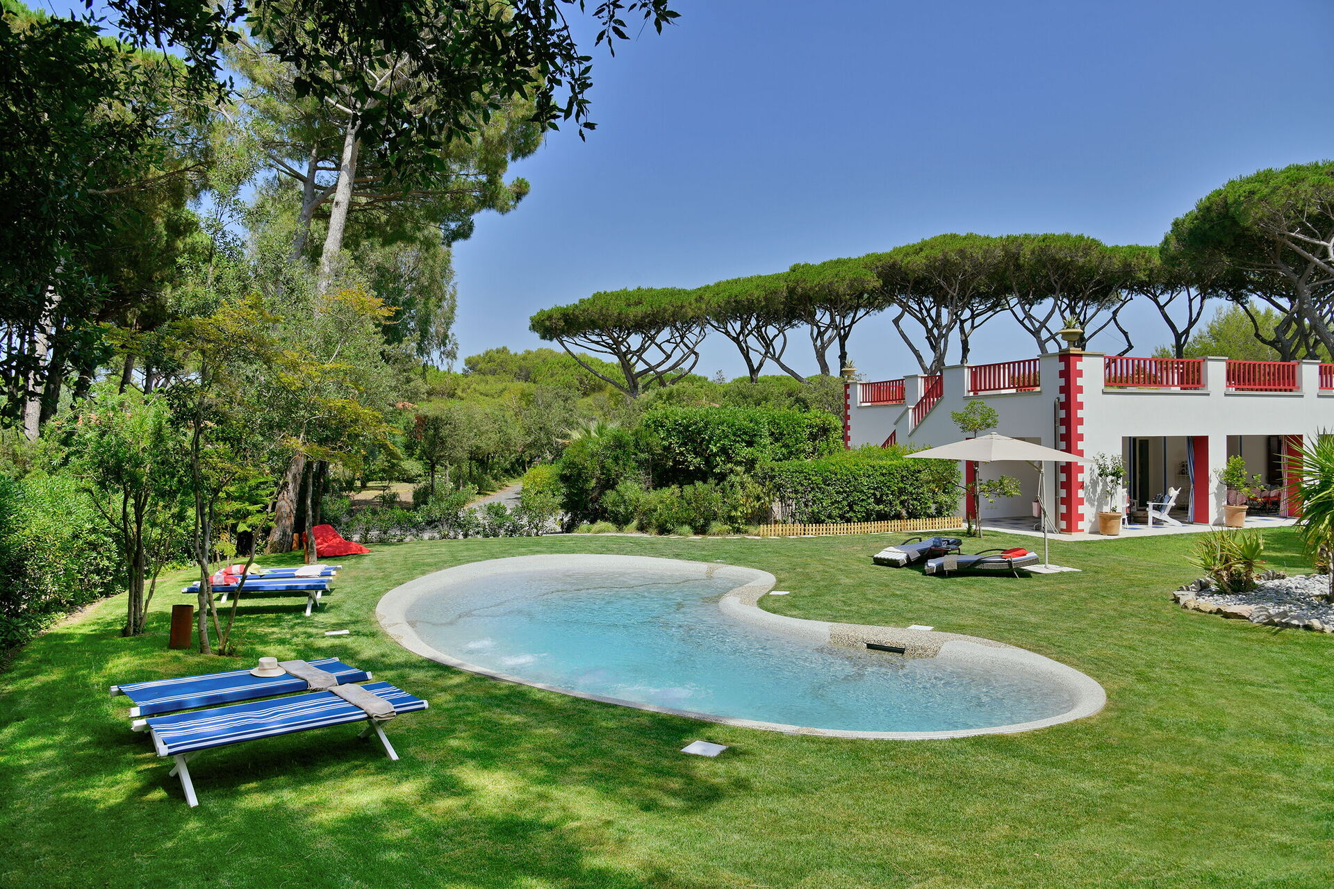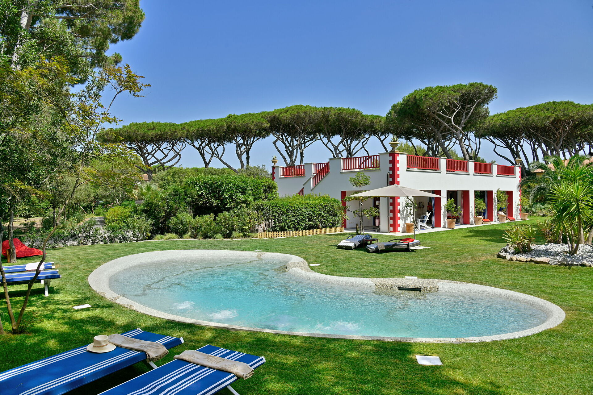 Villa Rossa è una moderna villa al mare situata all'interno di una tenuta recintata, appartenente a una famiglia aristocratica fiorentina.