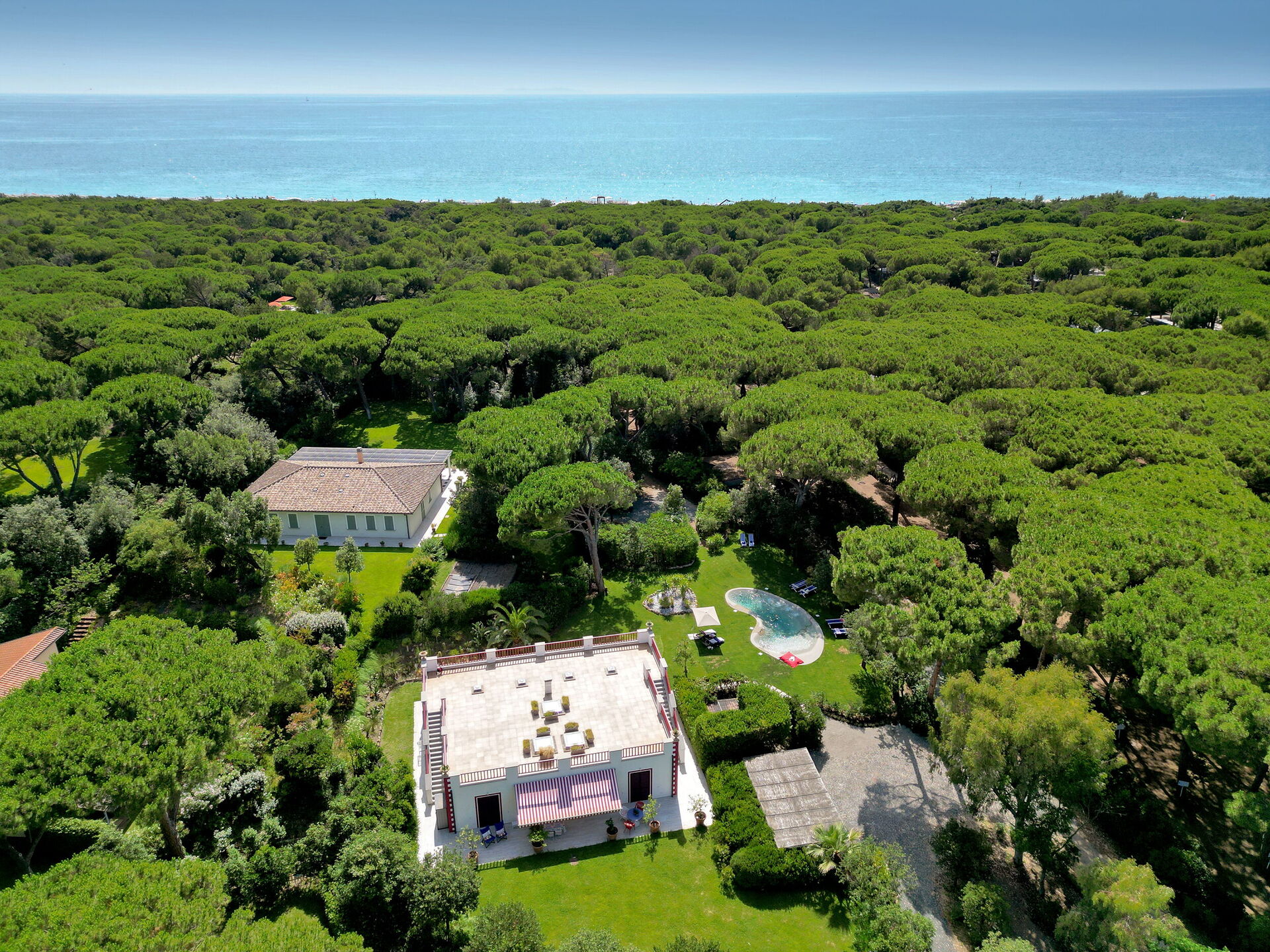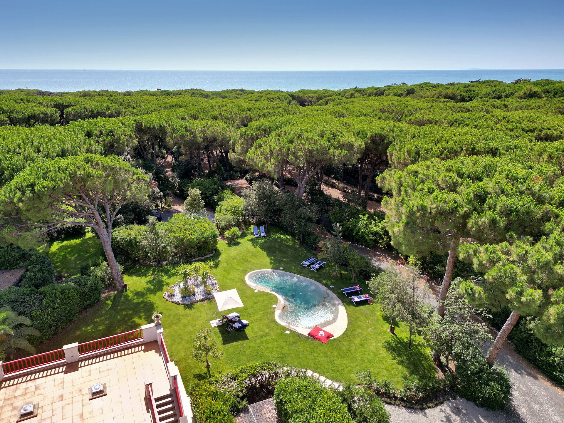 La villa si trova a soli 300 m dalla spiaggia di Marina di Bibbona, una località balneare della Maremma livornese. Dopo aver varcato un cancello chiuso a chiave, un sentiero privato conduce alla spiaggia attraversando la pineta e le dune. A disposizione degli ospiti anche una cabina privata con asciugamani, lettini e ombrelloni.