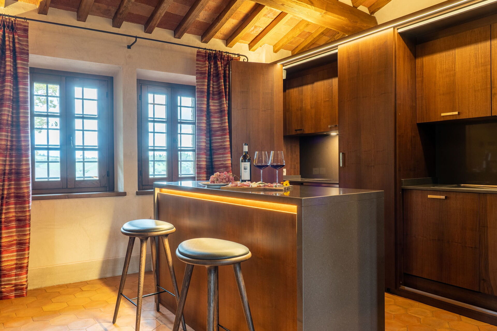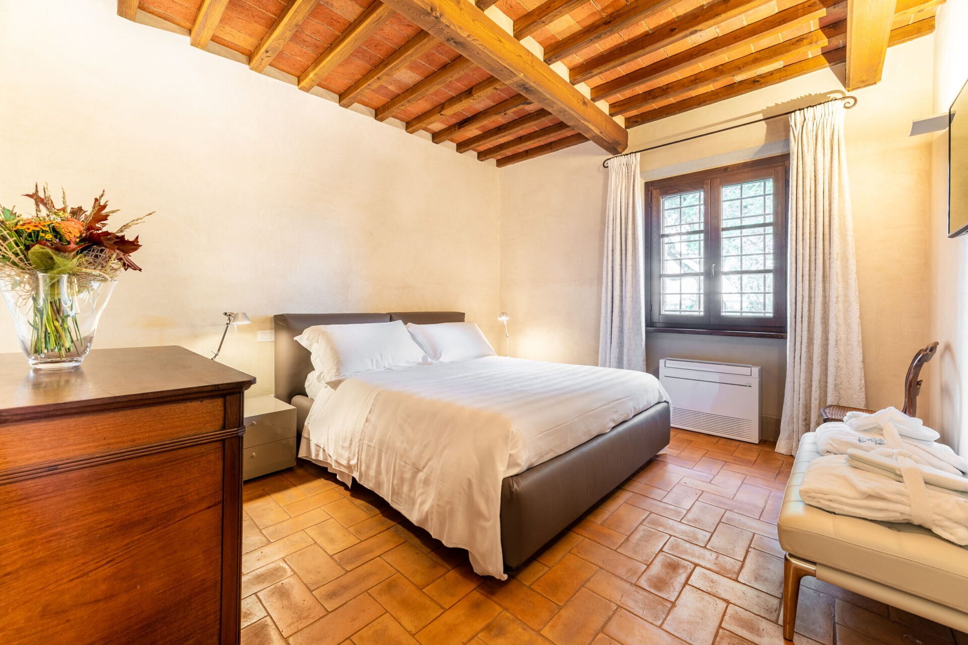 Posti letto 12 Camere da letto 6 Bagni 6 Superficie abitabile 400m² Prezzo base settimanale € 27900 Lo splendido giardino mediterraneo, la fattoria biologica, l'uliveto secolare e il vigneto sembrano agli ospiti un'oasi indipendente, libera dalla frenesia quotidiana. Anche il centro benessere e la splendida piscina panoramica contribuiscono a rendere questa villa un luogo magico, dove rilassarsi e concentrarsi sul proprio benessere. La villa si trova tra la Valdichiana e la Val d'Orcia, una zona famosa per la bellezza della campagna e come centro di arte e tradizione. La vacanza qui sarà un'esperienza indimenticabile alla scoperta delle tante caratteristiche della zona... le dolci colline, i boschi, il mare facilmente raggiungibile, i borghi tradizionali con le antiche stradine tortuose, le botteghe artigiane e i negozi di gastronomia tradizionale, nonché la possibilità di raggiungere facilmente le famose città d'arte di Firenze, Siena, San Quirico d'Orcia, Montalcino ecc. Villa Benefizio è stata recentemente restaurata in modo da riportare alla luce le antiche mura della torre di guardia che risalgono al XVI secolo e che si fondono bene con le nuove aree moderne della villa. C'è una piscina esclusiva (24 metri, 100-200 cm. di altezza) da cui puoi ammirare una delle più belle viste possibili. Qui potrai goderti il calore del sole durante il giorno o rilassarti con un drink nelle fresche serate estive. Nel giardino c'è un sentiero recintato di 1,5 km dove puoi camminare o correre. La villa ha molte offerte per gli ospiti: corsi di cucina con uno chef privato per la preparazione e la degustazione dei vari piatti tipici toscani; visite alle mense del vino di Montepulciano, raccolta delle olive nel periodo dell'olio, visite ai caseifici locali. A tutto questo si possono aggiungere voli in mongolfiera, escursioni a cavallo, ricerca del tartufo accompagnata dai famosi cani o maiali da tartufo. La villa è inoltre circondata dall'enorme parco di Villa Trecci che è a disposizione degli ospiti per rilassanti passeggiate, con circa 400 varietà di piante diverse, un laghetto, una fattoria biologica, un uliveto e vigneti.