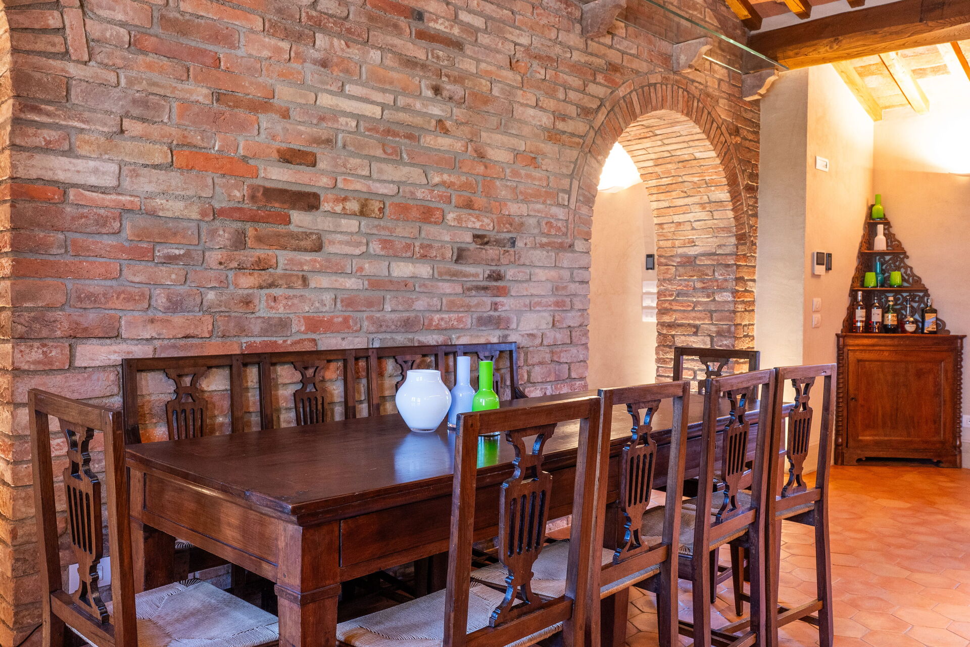 Alloggi Insieme a tutte le moderne tecnologie la villa offre travi tradizionali, pavimenti in cotto, il tutto reso ancora più suggestivo dai giochi di luce provenienti dal centro benessere. Sei camere luminose ed eleganti che si affacciano sul panorama, ciascuna con bagno privato con doccia, tutte ben attrezzate con servizi moderni e un ascensore che collega i due piani. La villa può ospitare un massimo di 12 persone. Il Centro Benessere con piscina interna e idromassaggio, il bagno turco, le docce sensoriali che si affacciano sul nostro fantastico giardino con piscina privata e un percorso di circa un chilometro e mezzo per fare jogging o passeggiate circonda la Villa, tutto questo per prenderti cura del tuo corpo, della tua mente e del tuo benessere. La villa è facilmente raggiungibile in quanto il piano terra non ha scale e c'è un ascensore per raggiungere il piano superiore (un ascensore che può ospitare una sedia a rotelle) e quindi tutte le stanze sono considerate idonee. Anche le aree esterne sono considerate idonee: ad esempio, la piscina è raggiungibile tramite una passerella e non tramite una scala. I bagni, invece, non sono particolarmente adatti perché tutti gli accessori del bagno sono uguali. Piano terra Entrando nella villa si trovano, a sinistra, un'ampia sala da pranzo e una cucina moderna e ben attrezzata. A destra si trovano il centro benessere e il bagno. Il centro benessere comprende una piscina riscaldata con idromassaggio, sauna, bagno turco, il tutto con vista sullo splendido parco. Al piano terra si trovano anche 3 eleganti camere da letto matrimoniali, tutte con bagno privato e doccia. Primo piano Il piano superiore comprende un altro salone con cucina e 3 camere matrimoniali con bagno privato con doccia. Una camera è composta da due letti singoli e le altre due da un letto matrimoniale. L'arredamento della villa è un elegante mix di antico e moderno che garantisce il massimo del comfort e del relax.
