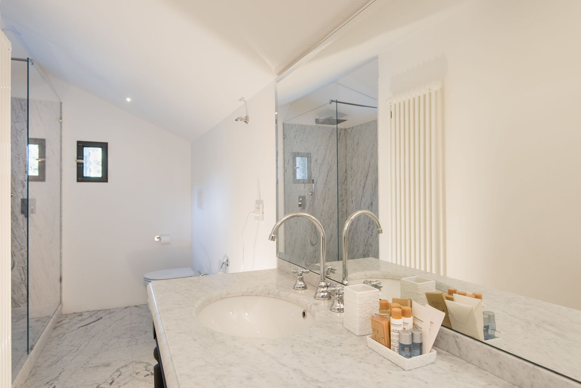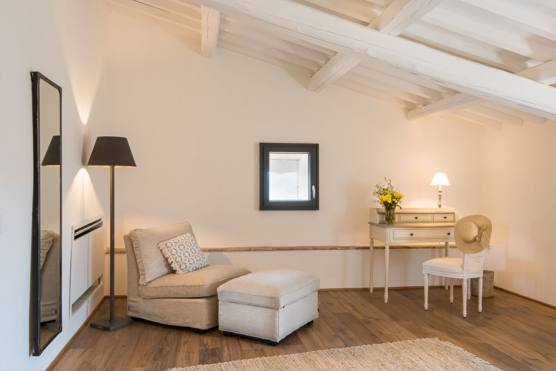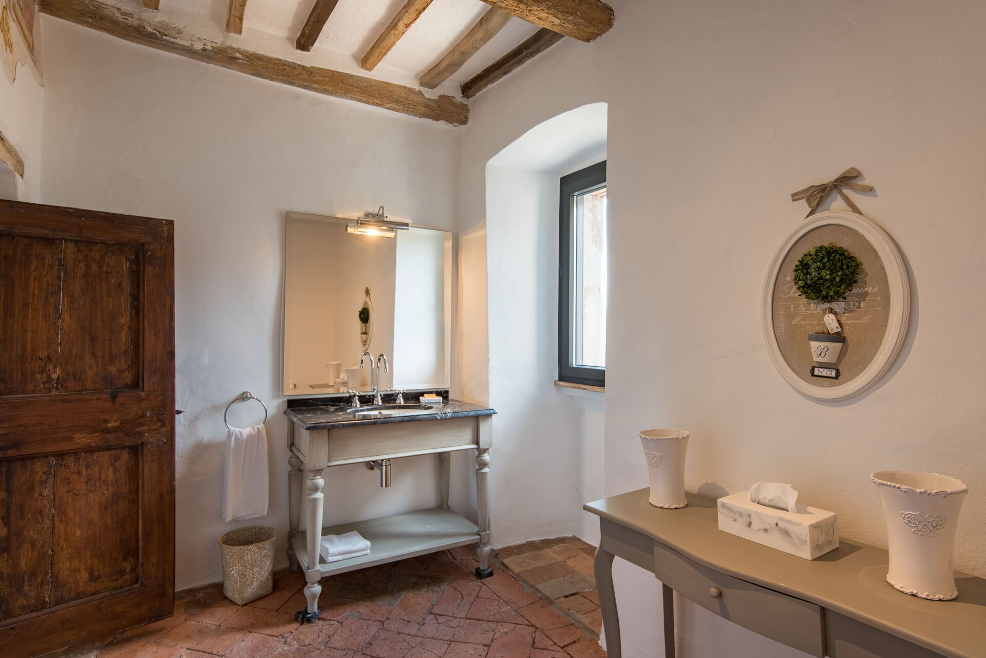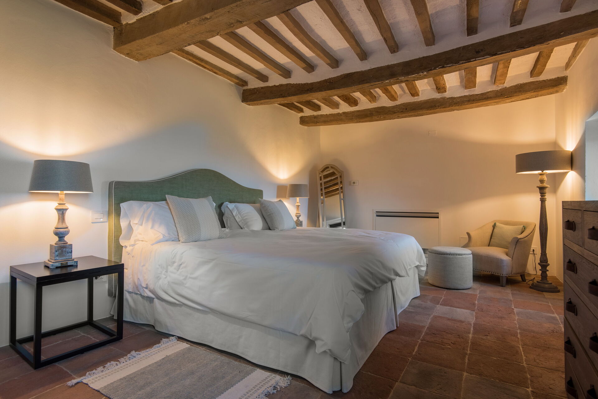 Lo spazio regna sovrano in questa villa, dall'ampio giardino e terreno circostante, alla grande cucina e alle 10 camere da letto ben arredate con i loro sontuosi bagni in marmo (6 nell'unità principale della villa e 4 nella villa annessa). Soffitti a volta, pavimenti in cotto recuperato, affreschi del XIII secolo, scale in marmo travertino creano una casa unica, lussuosa senza essere ostentata, che mescola il comfort moderno con i materiali tradizionali.