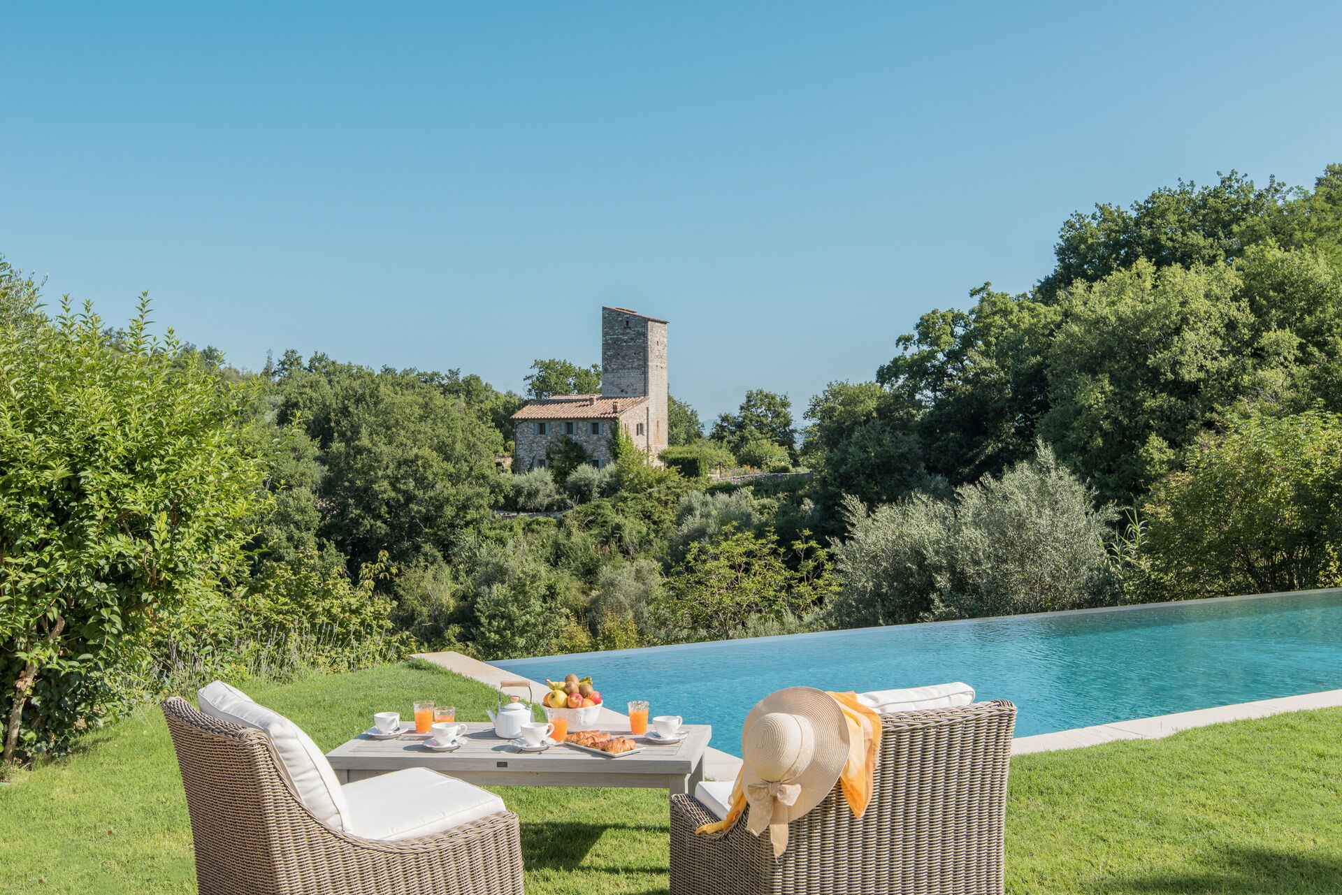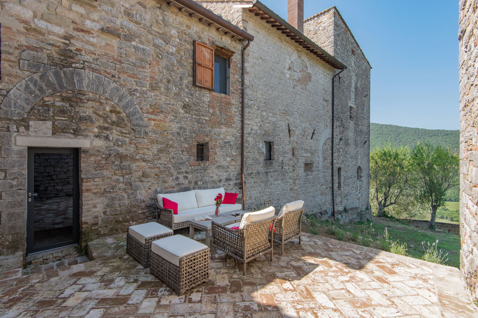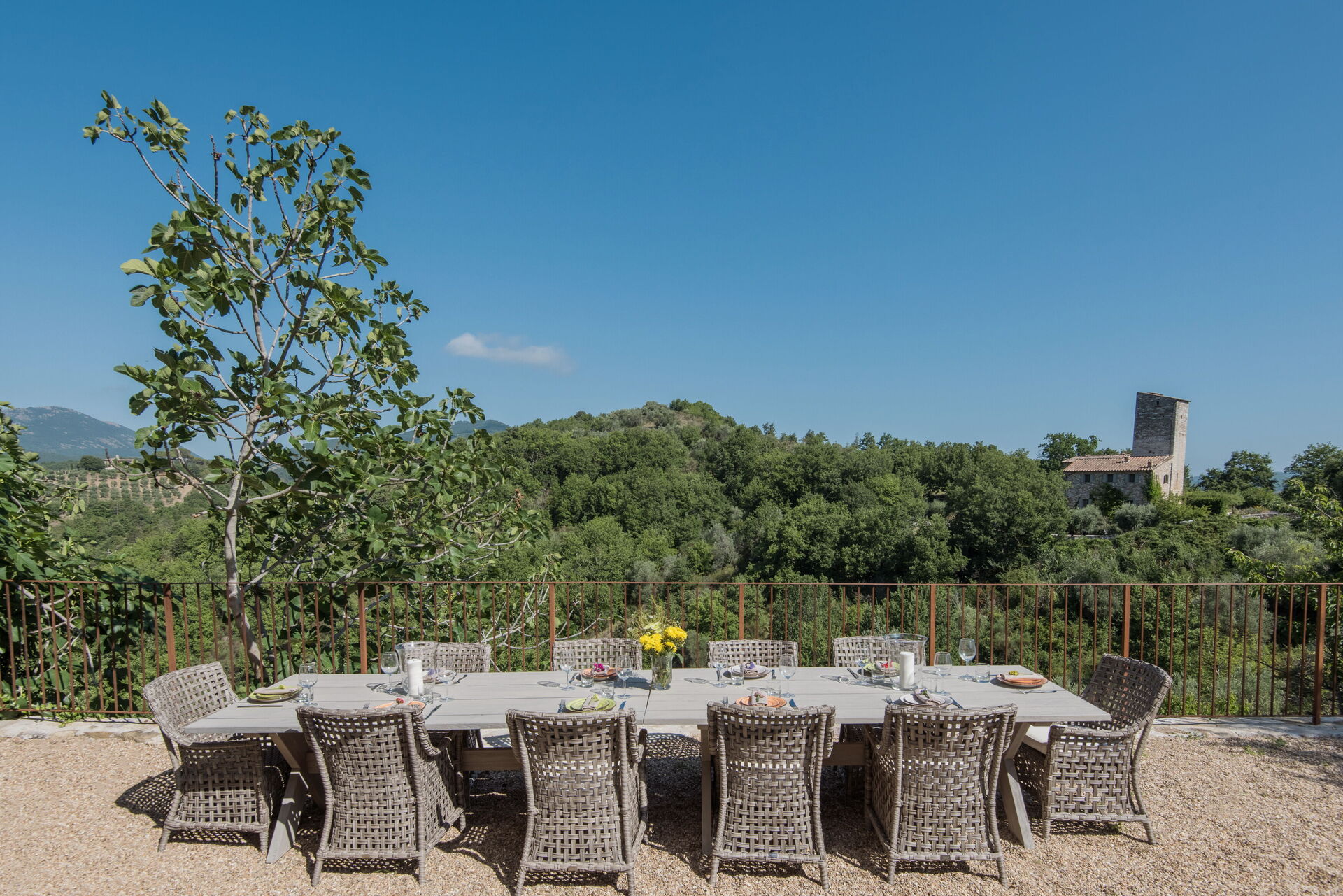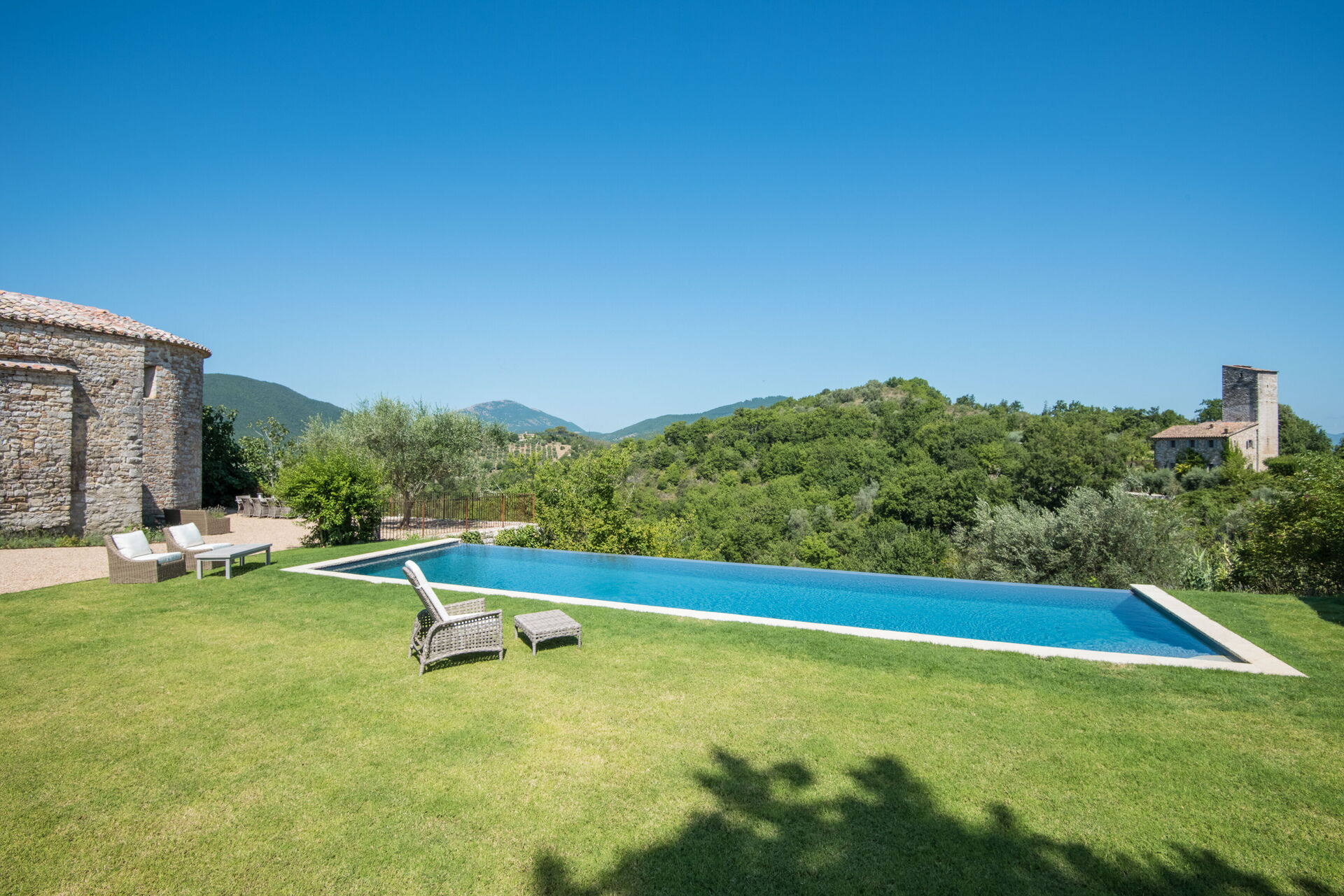 Situato in una posizione impareggiabile sulla cima di una collina che domina la valle del Tevere, con una vista mozzafiato su campi, dolci colline, uliveti e vigneti, questo antico castello e l'annessa chiesa risalenti all'XI secolo sono stati ora meticolosamente ristrutturati e trasformati in una villa di lusso con una splendida piscina a sfioro ed è una location perfetta per eventi e matrimoni indimenticabili.