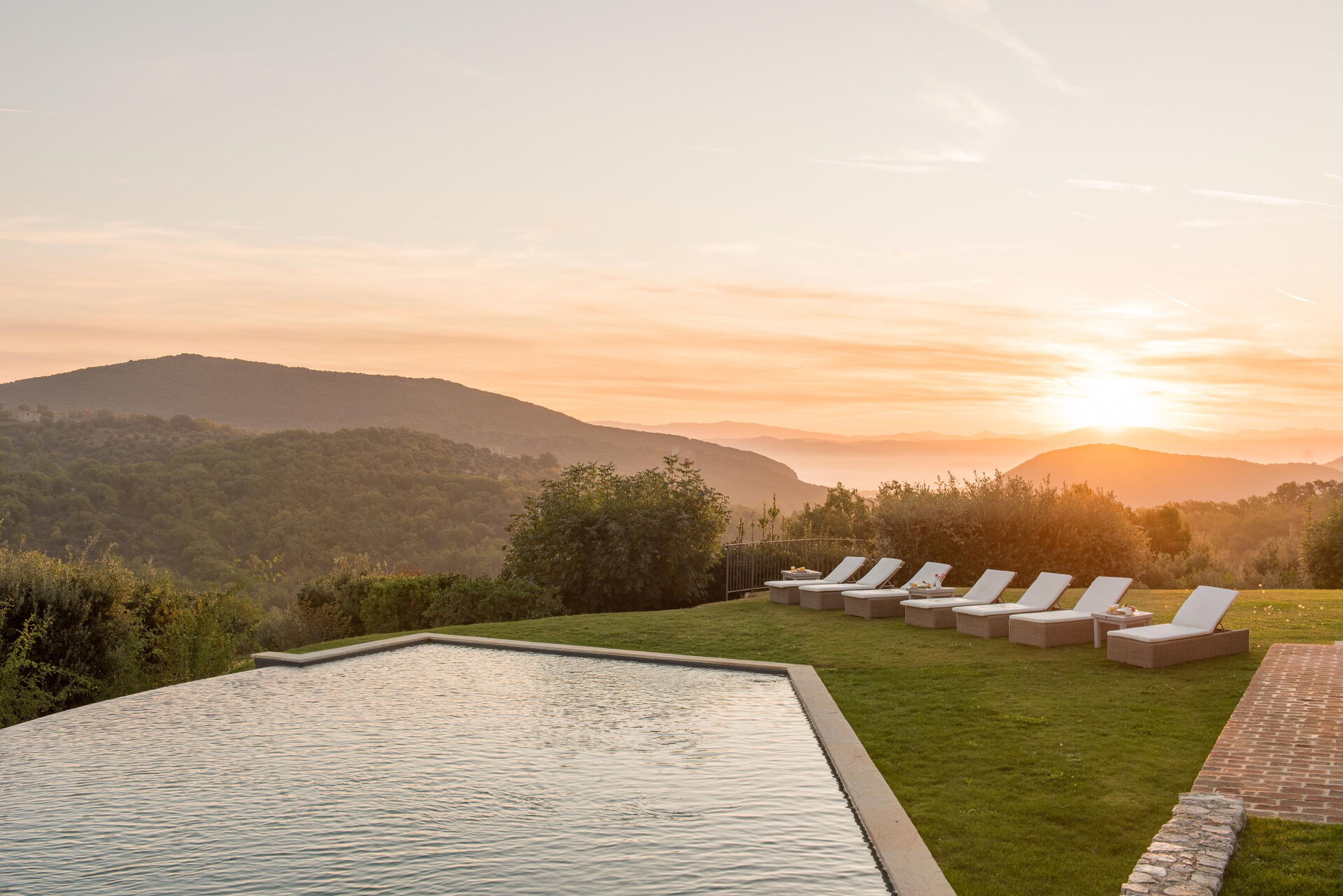Sul lato sinistro della Villa si trova un giardino d'inverno, ombreggiato dal vento, dove è possibile fare colazione, pranzare e cenare in piena stagione. Appena sopra questo giardino d'inverno, accessibile dal retro della Villa e dalla terrazza principale anteriore, si trovano un roseto ombreggiato, diverse terrazze e il nostro orto, che produce verdure fresche pronte per essere servite dal nostro chef durante i pasti. L'area della piscina è accessibile anche dal lato sinistro della Villa. Si trova a circa 100 metri di distanza, garantendo la privacy sia della Villa che degli ospiti della piscina. La piscina a sfioro è lunga 18,8 metri e larga 4 metri, attrezzata con 20 lettini e 10 ombrelloni. Un'area lounge esterna è disponibile presso il bar/piscina, dove si trova anche uno spogliatoio.