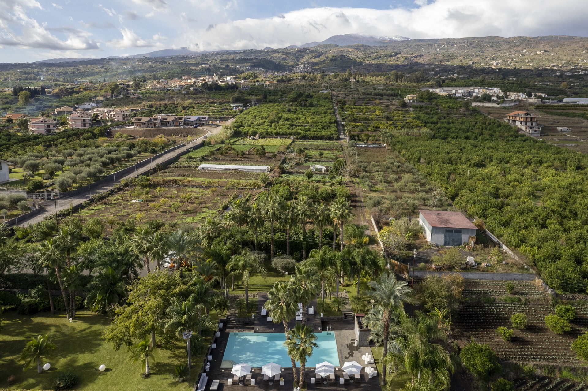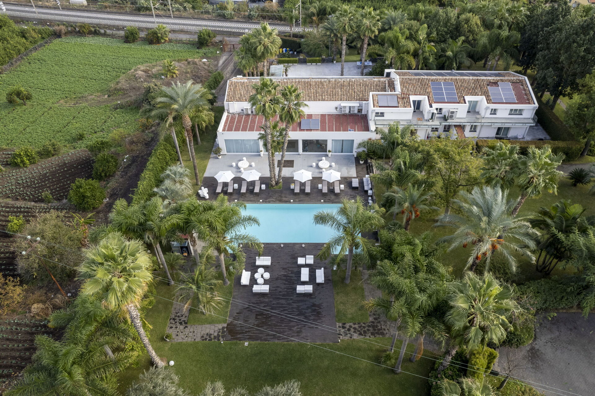 Set in the Sicilian Ionian coast, located between the sea and the Volcano, surrounded by the green park of 7 hectares, amid a lush of orange and lemon groves with countless varieties of