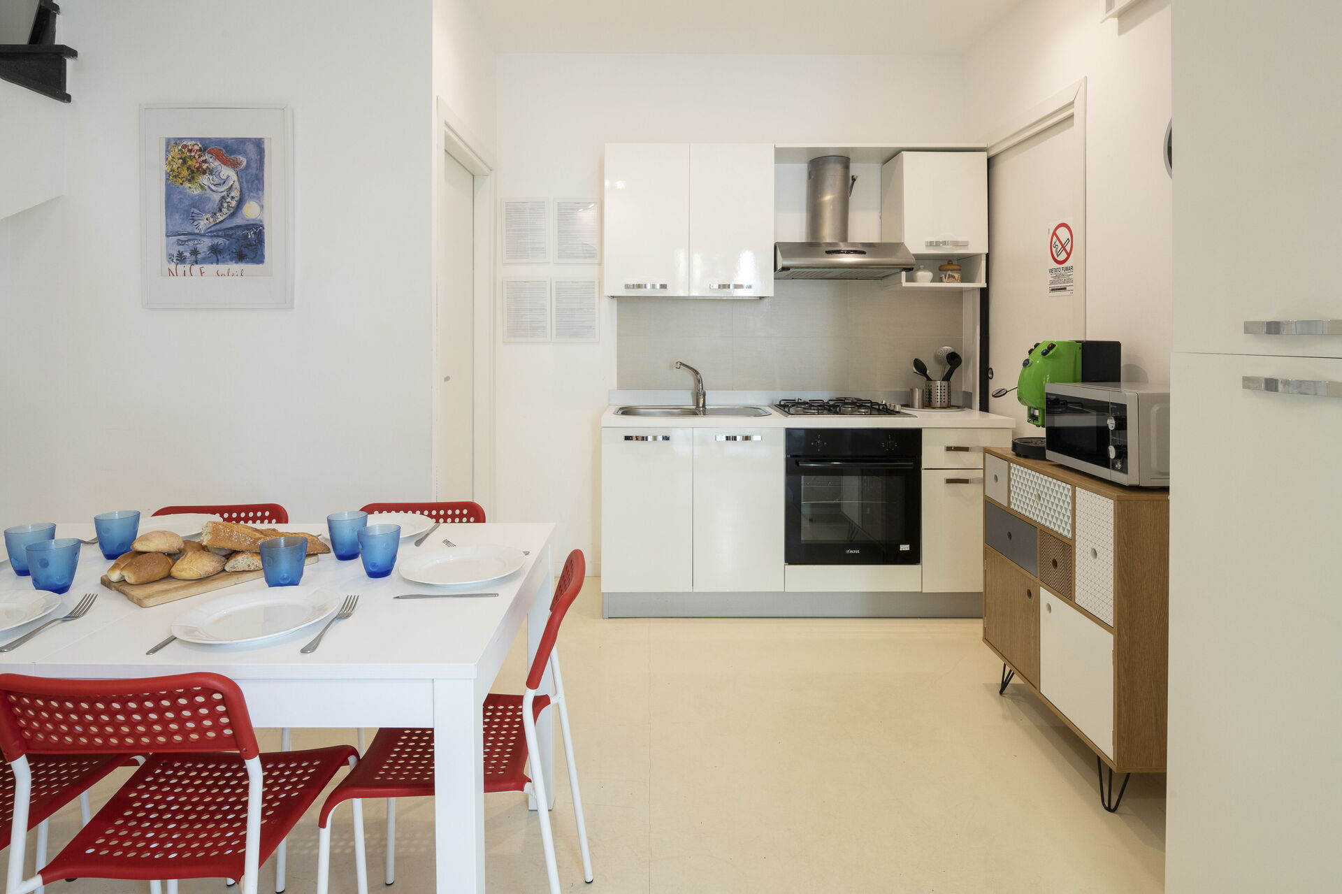 Well Equipped Kitchen, Oven, Freezer, Fridge, WiFi Internet, Dishwasher, Italian Coffee Machine, Microwave, Stove Top, Dining Table, Toaster