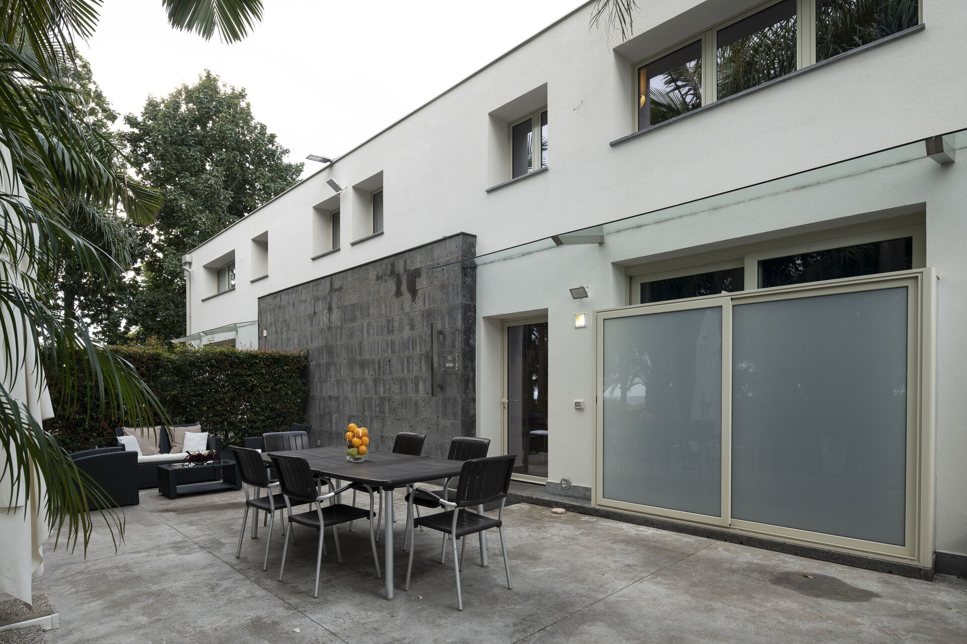 ‣ The outdoor area features four alfresco areas in front of each apartment, soccer table, ping pong, a large green area with typical Sicilian vegetation.