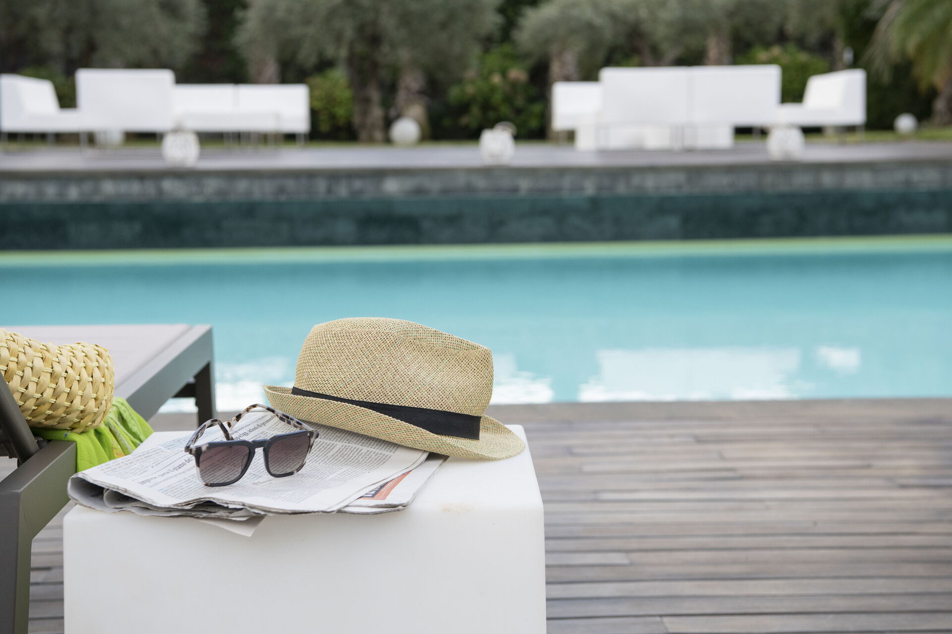 modern pool environment in a dark wood, lava stone, and sound-absorbing windows. Very comfortable, this is a modern family retreat full of light and a welcoming vibe.