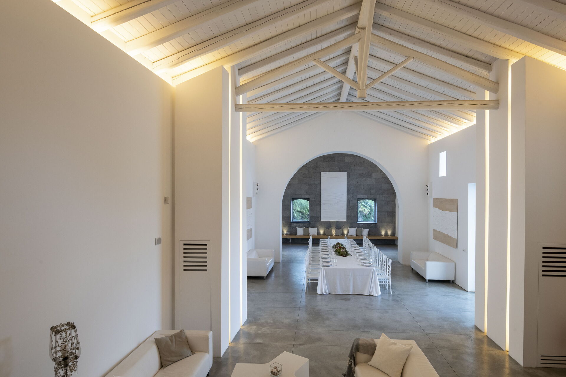 The white ceilings lend an airy feel to the interiors. Elements of classic Italian residential architecture, such as the alfresco terraces, are combined with contemporary touches, a