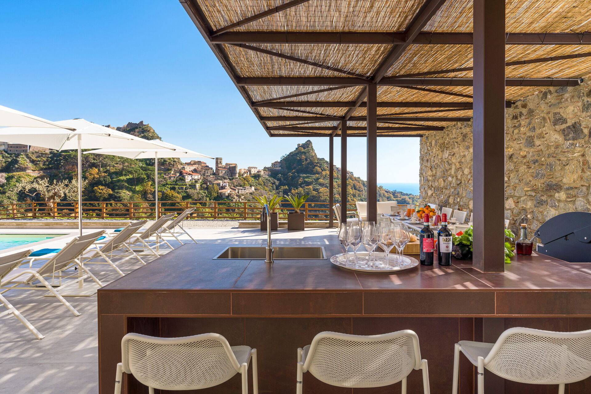 Here, under pergolas woven with jasmine, and by the saltwater pool shimmering like a slice of the Ionian itself, the essence of al fresco living reaches its peak.