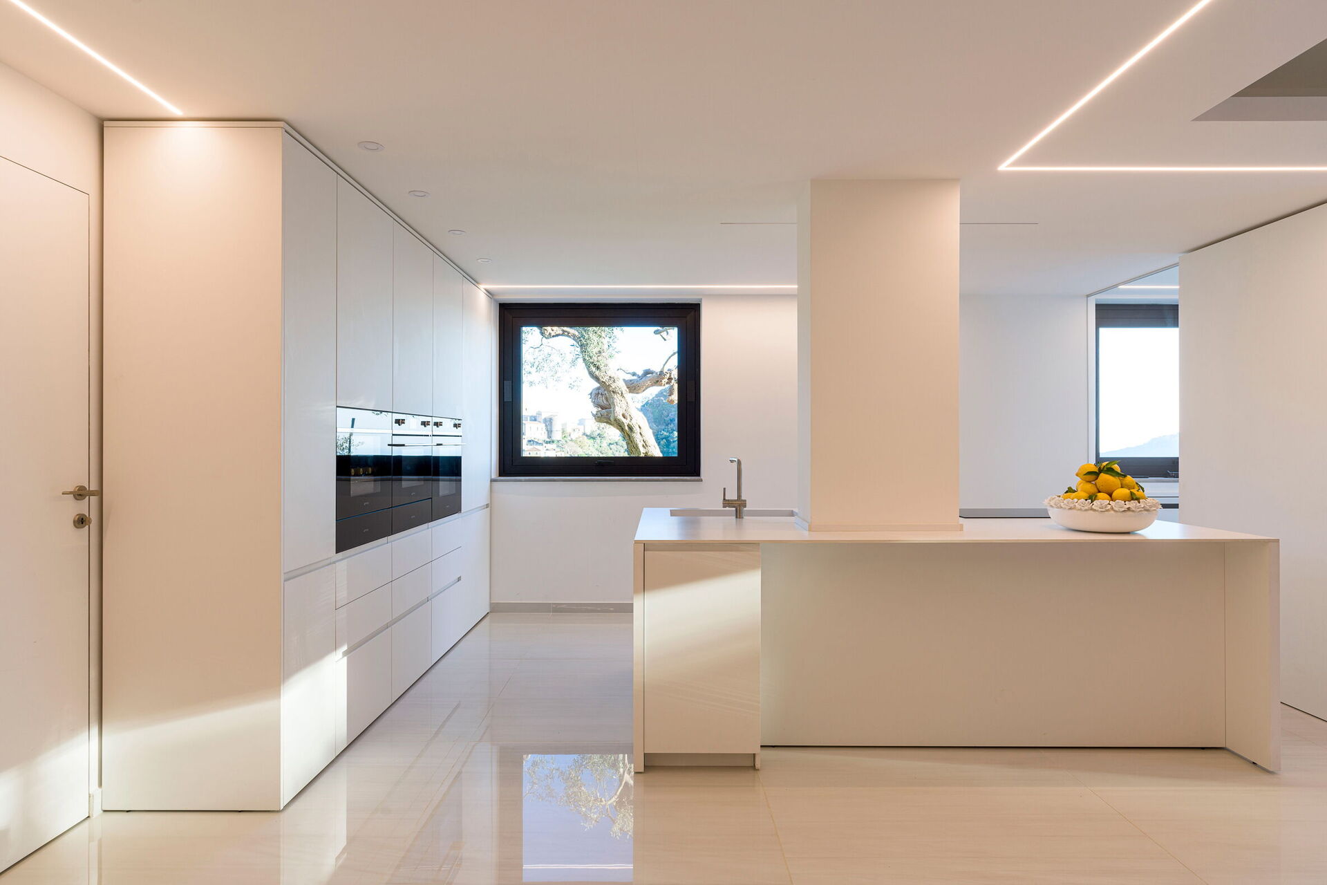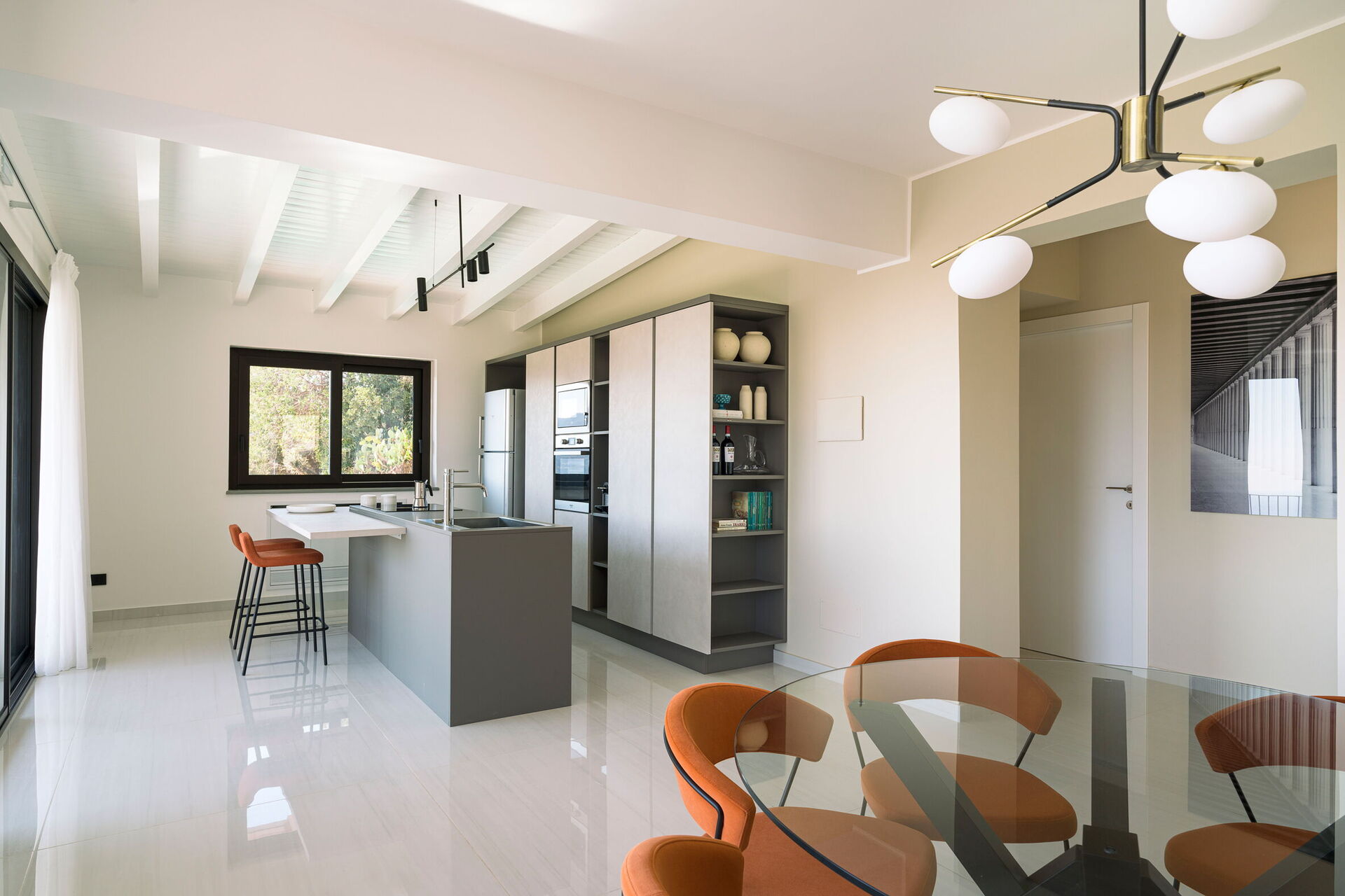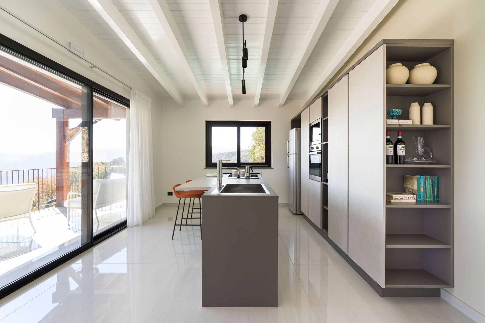 Fully equipped designer kitchen with double fridge, oven, espresso and ice maker