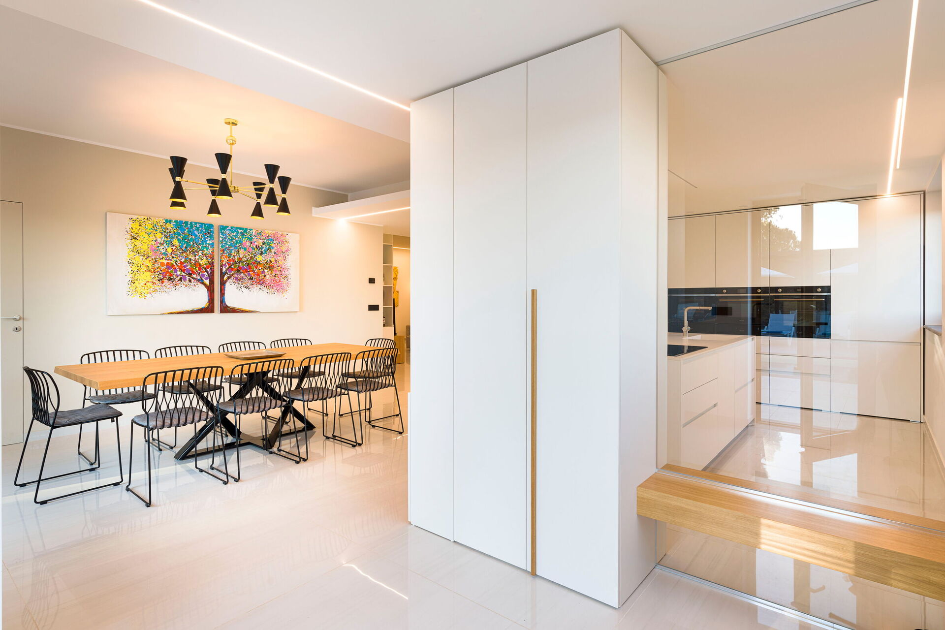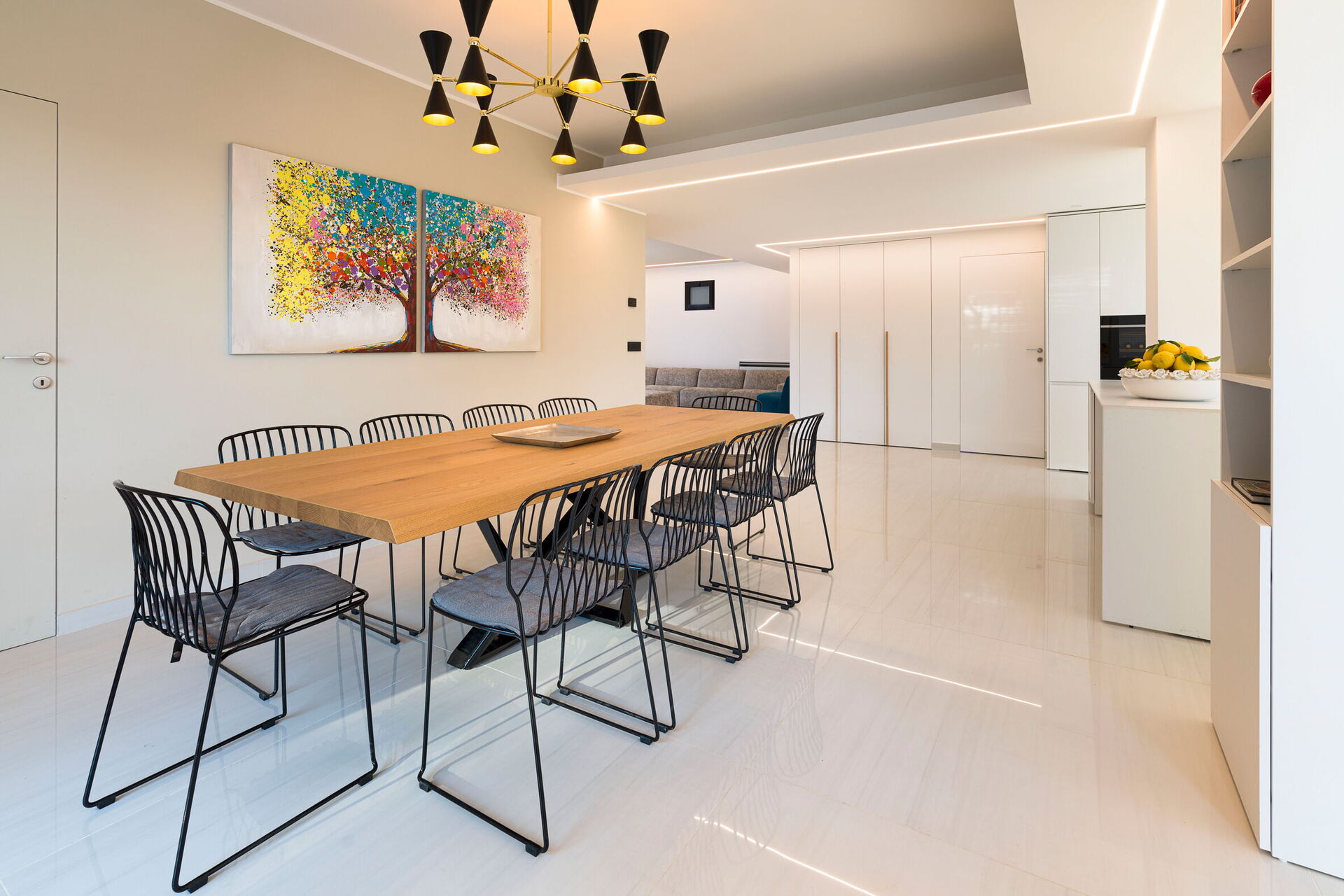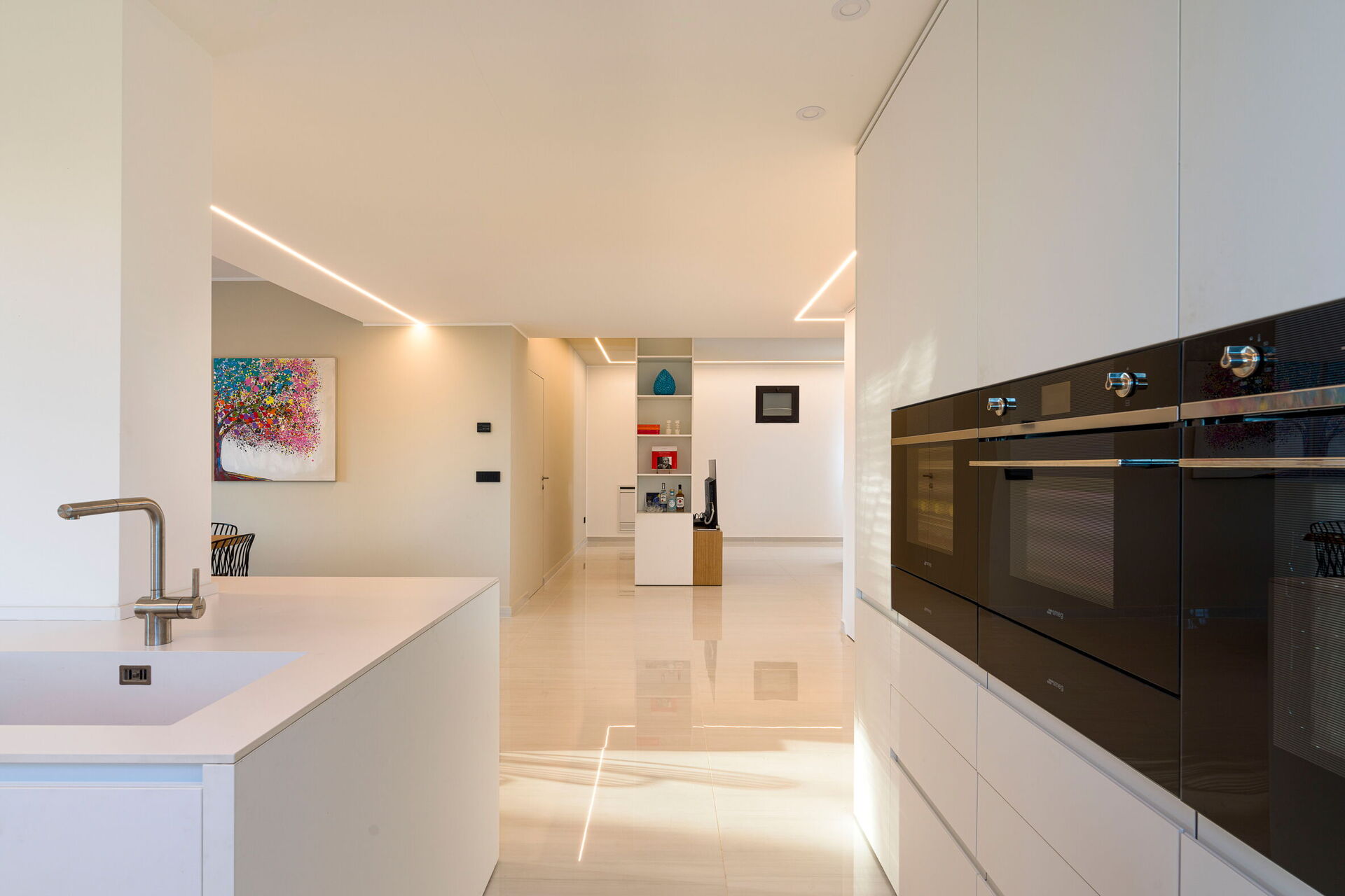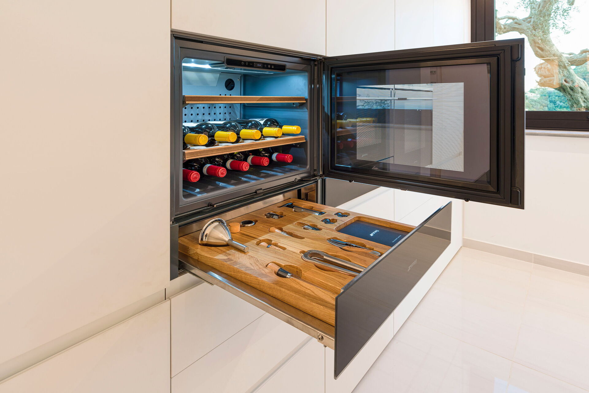 Fully equipped designer kitchen with double fridge, oven, espresso and ice maker