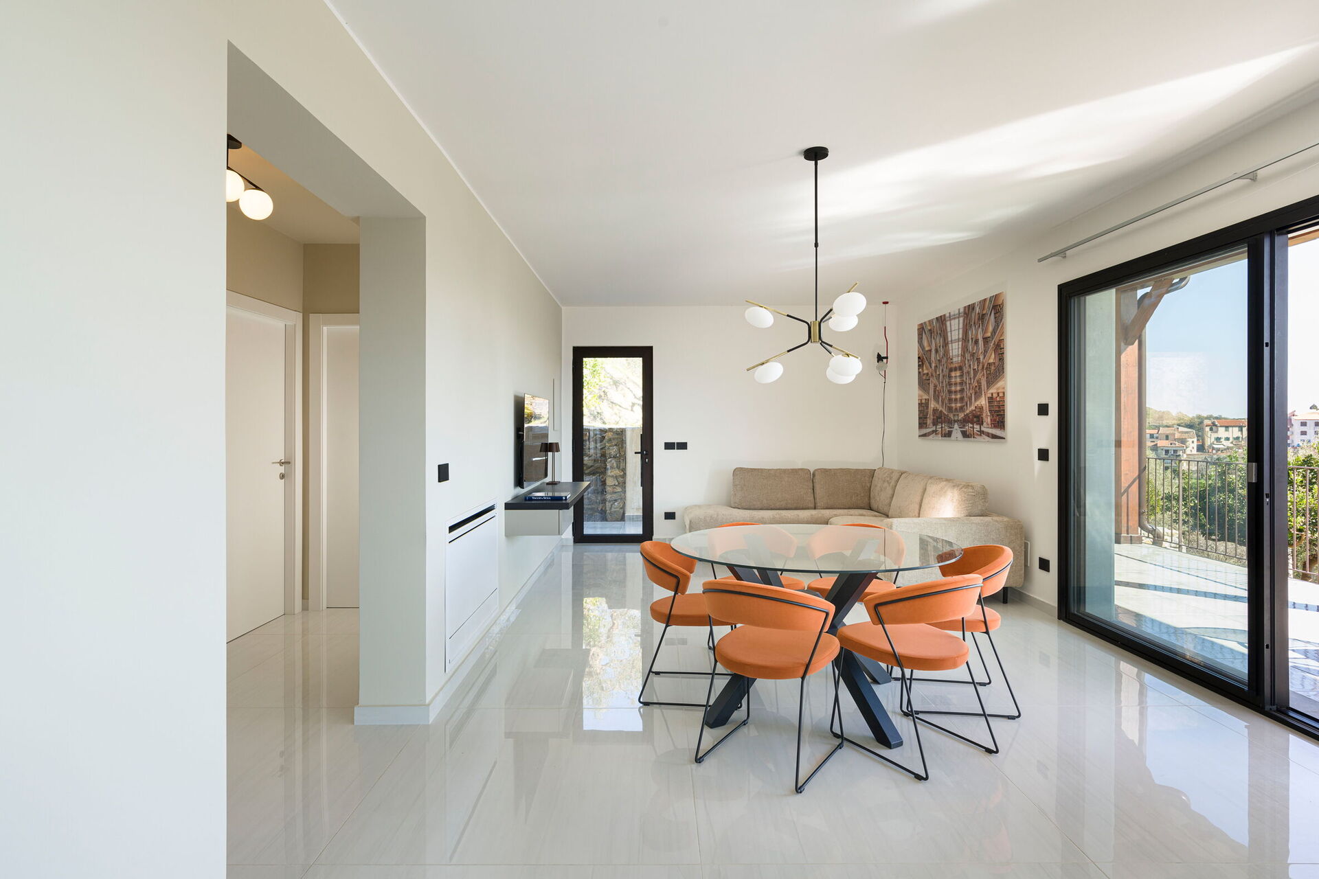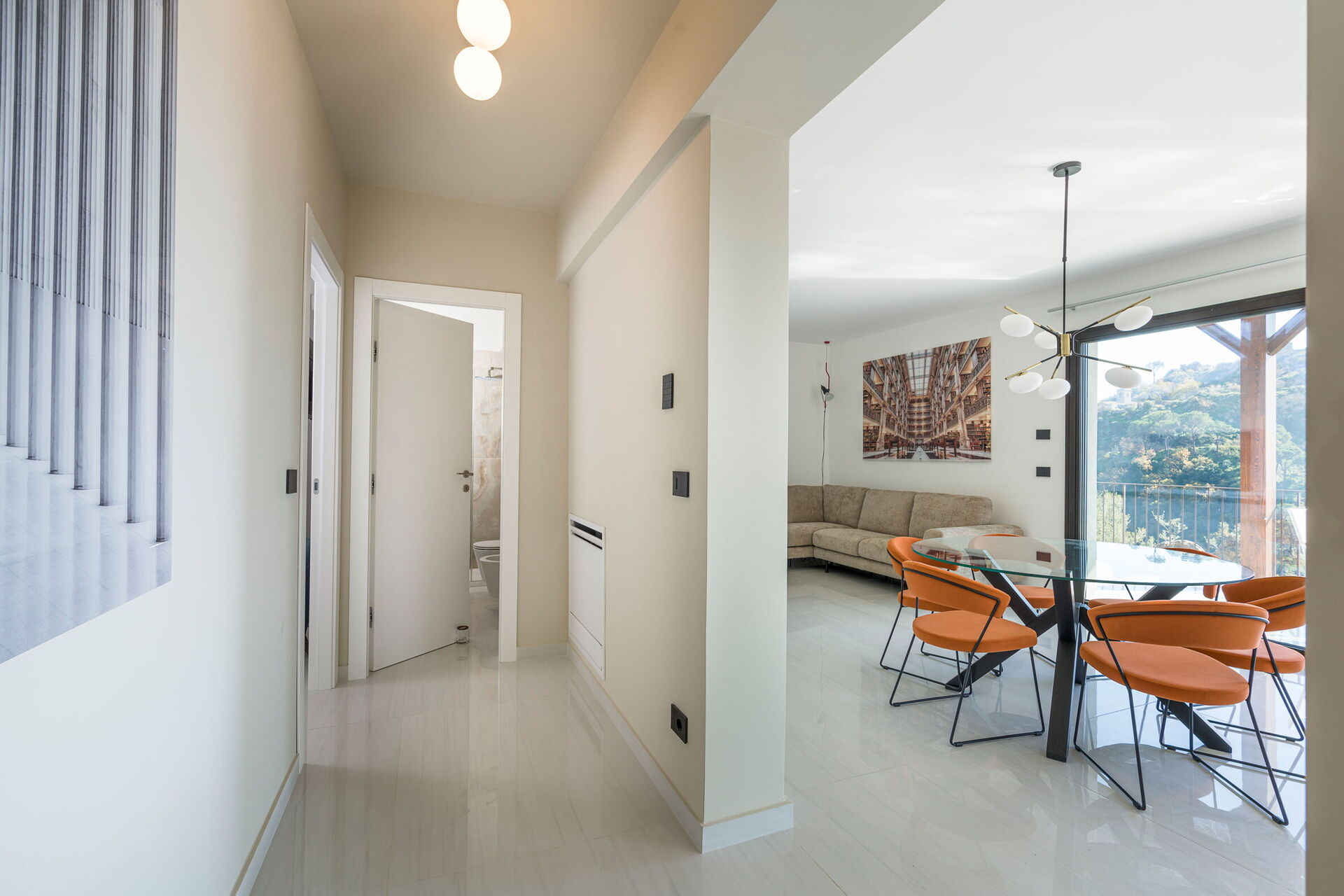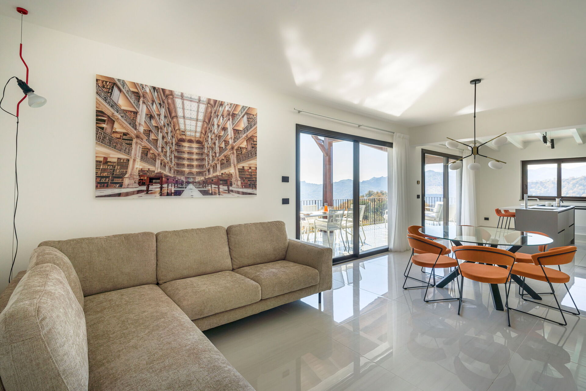 Grand open-plan living/dining room with floor-to-ceiling views