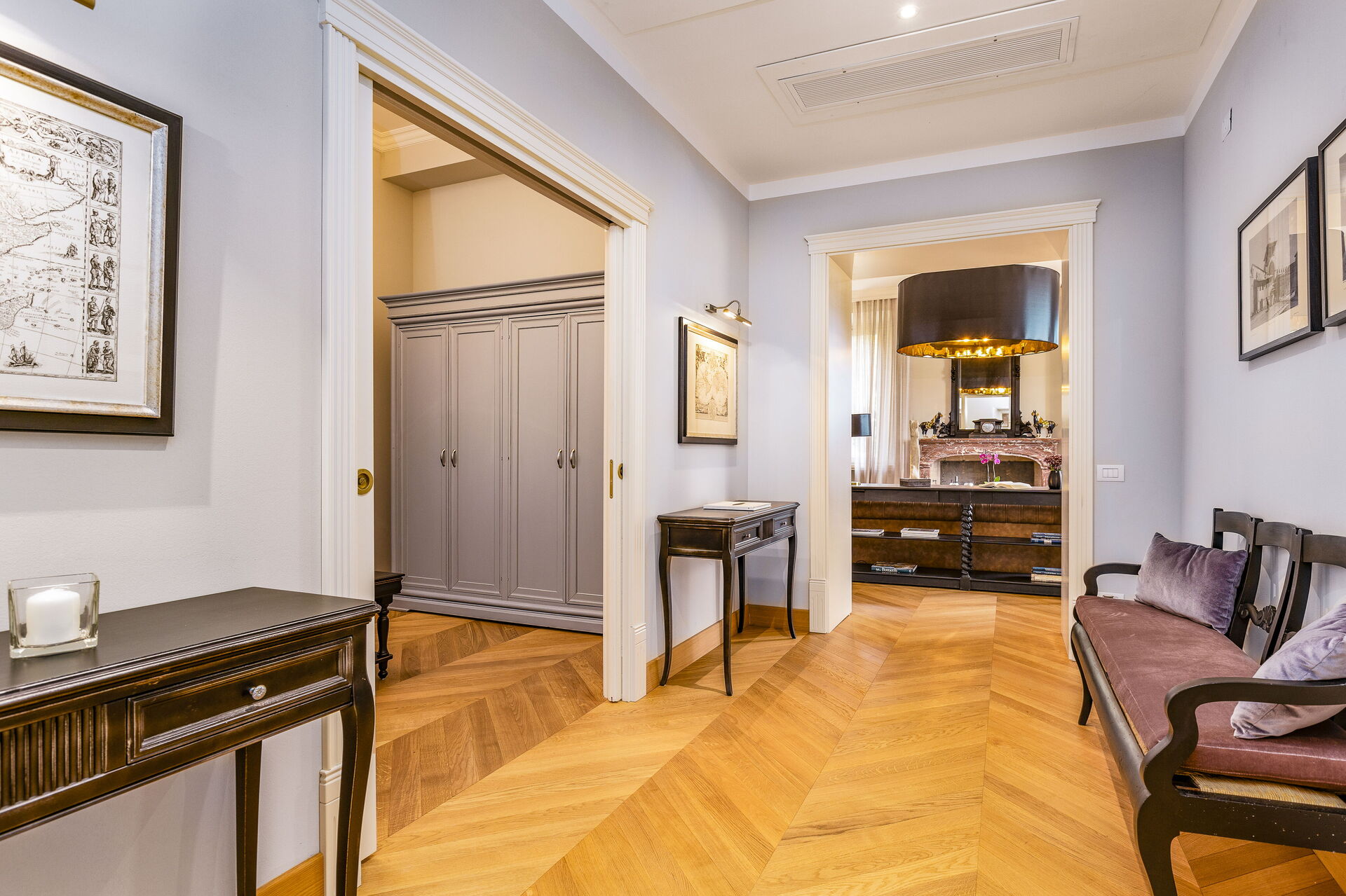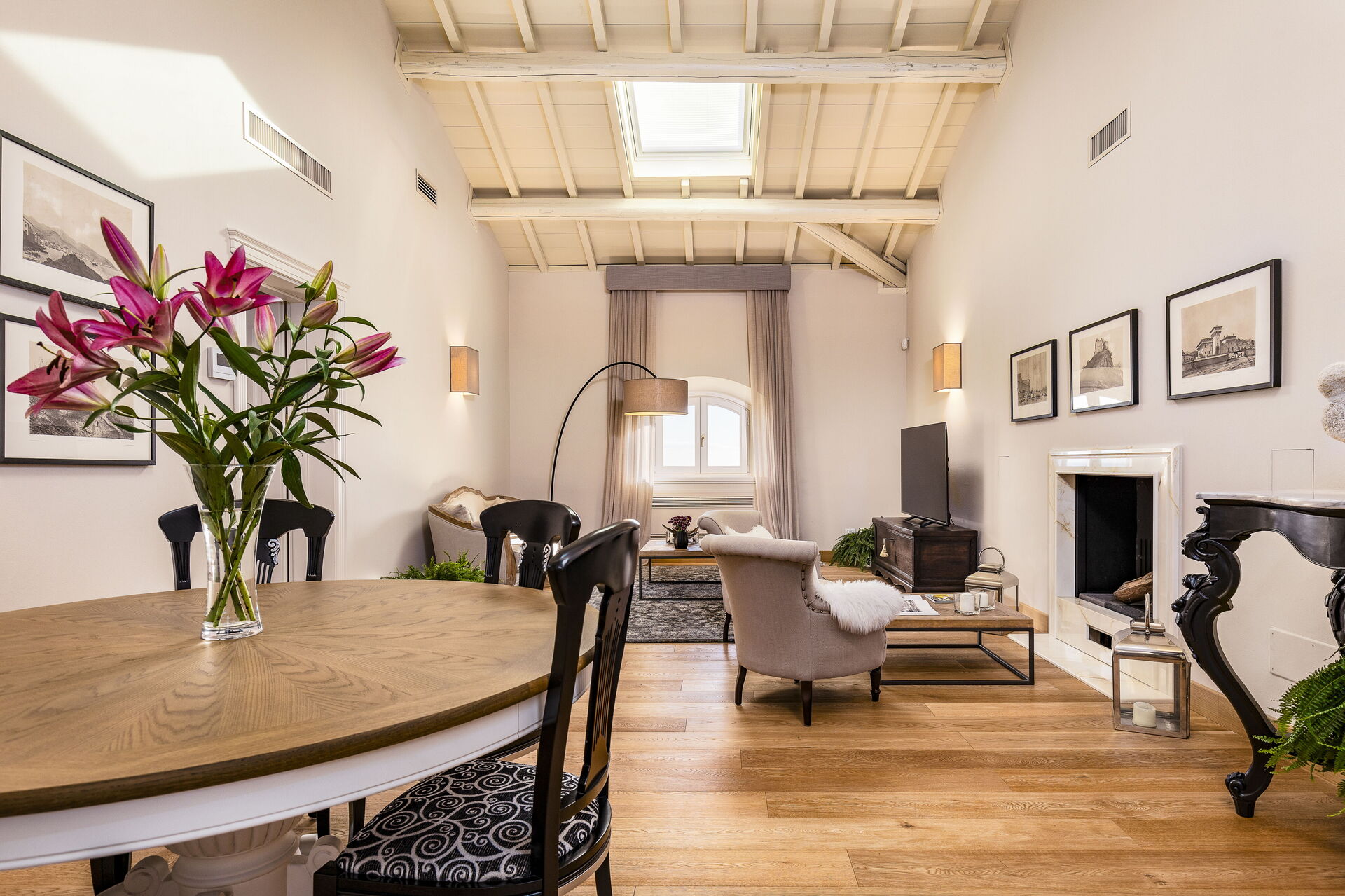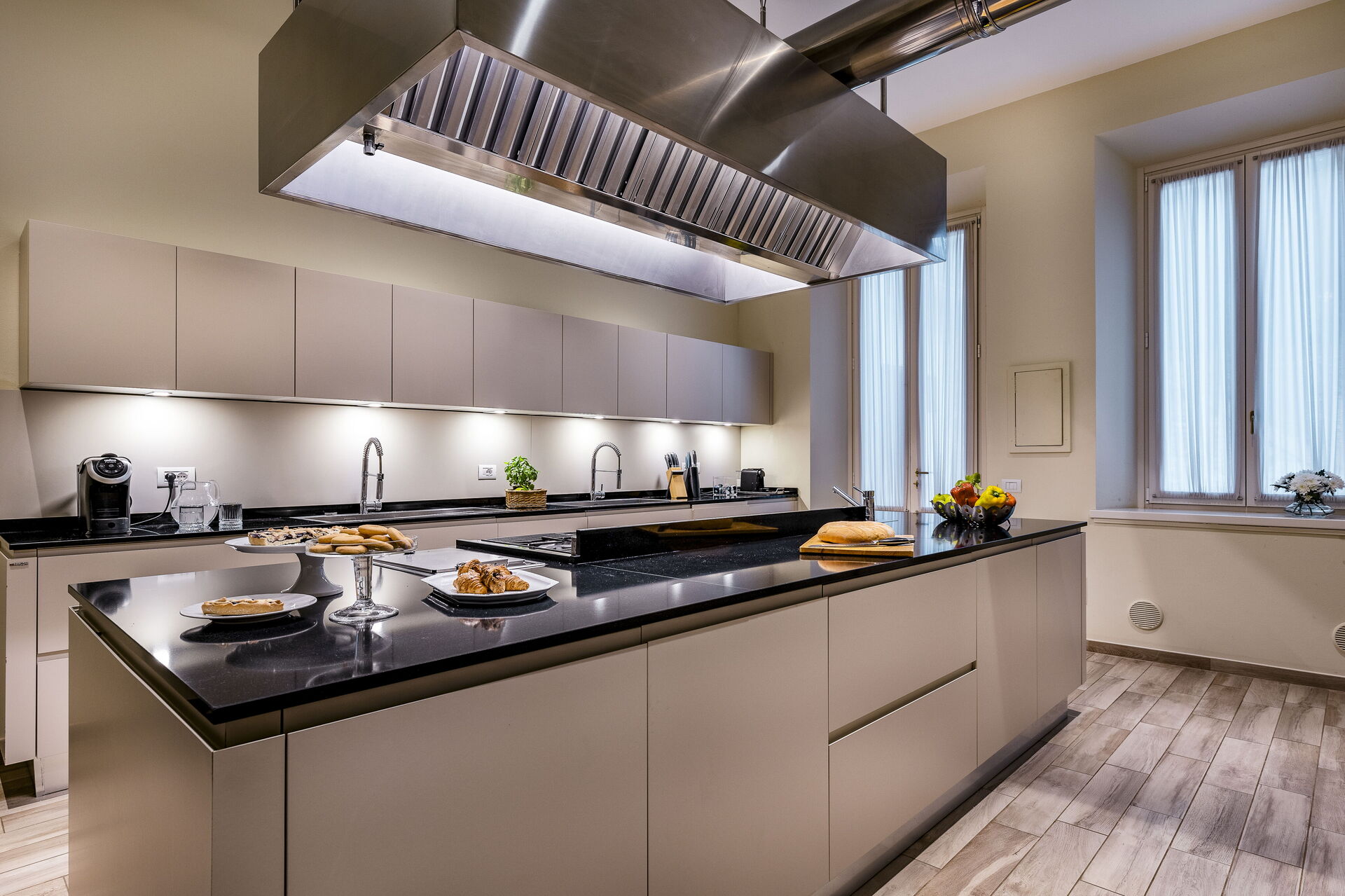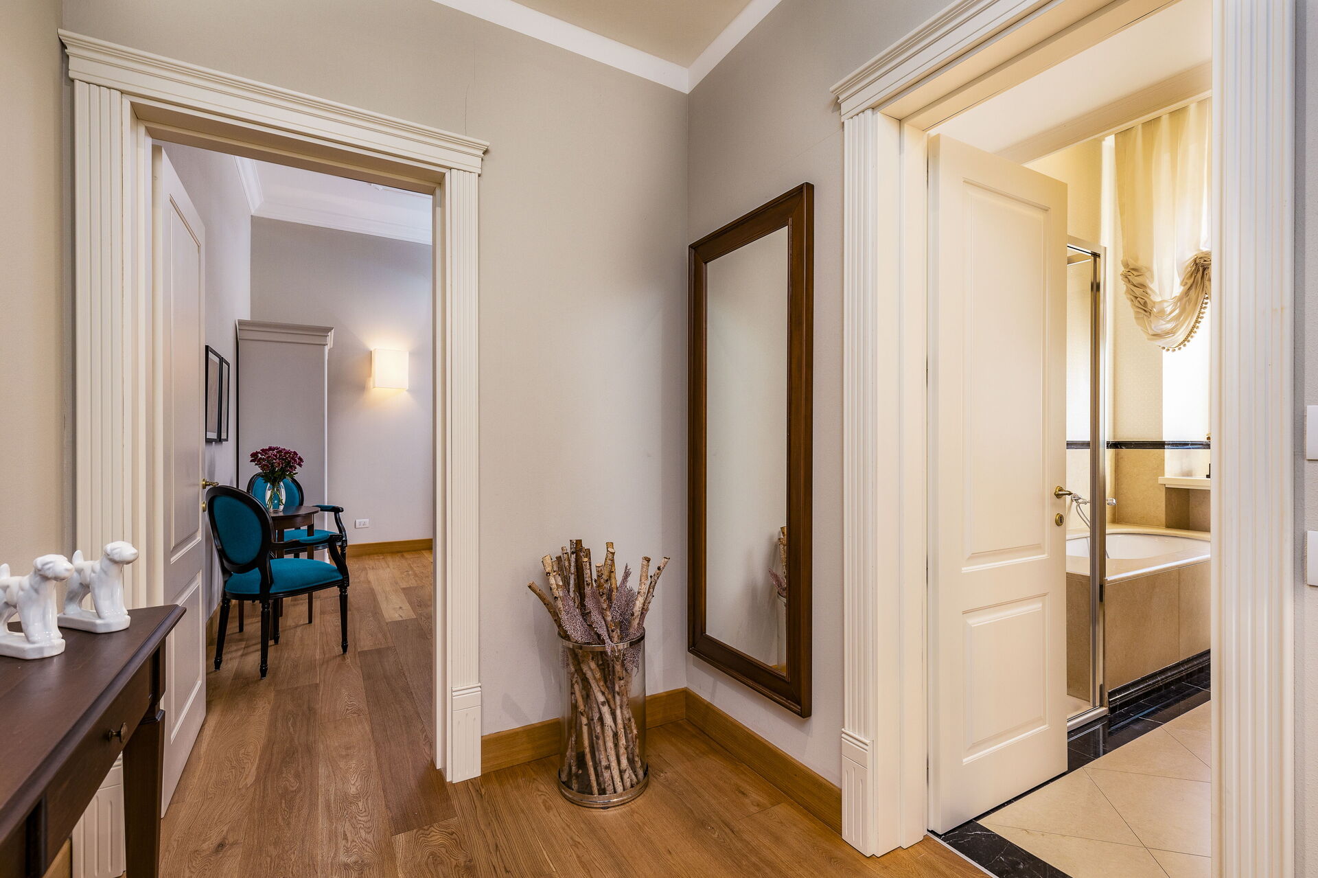 Approached with research in the historical context, results in a new- classic style with a contemporary touch, quality washed wooden boards and marble. Modern yet very comfortable,