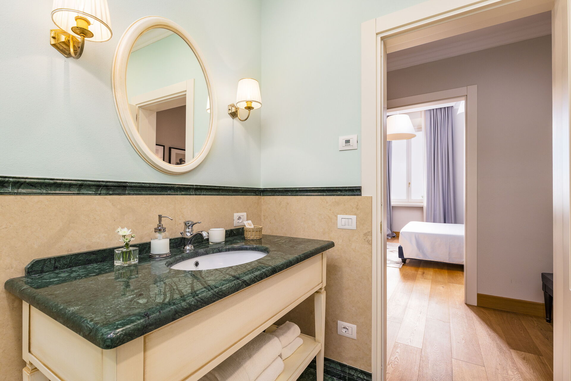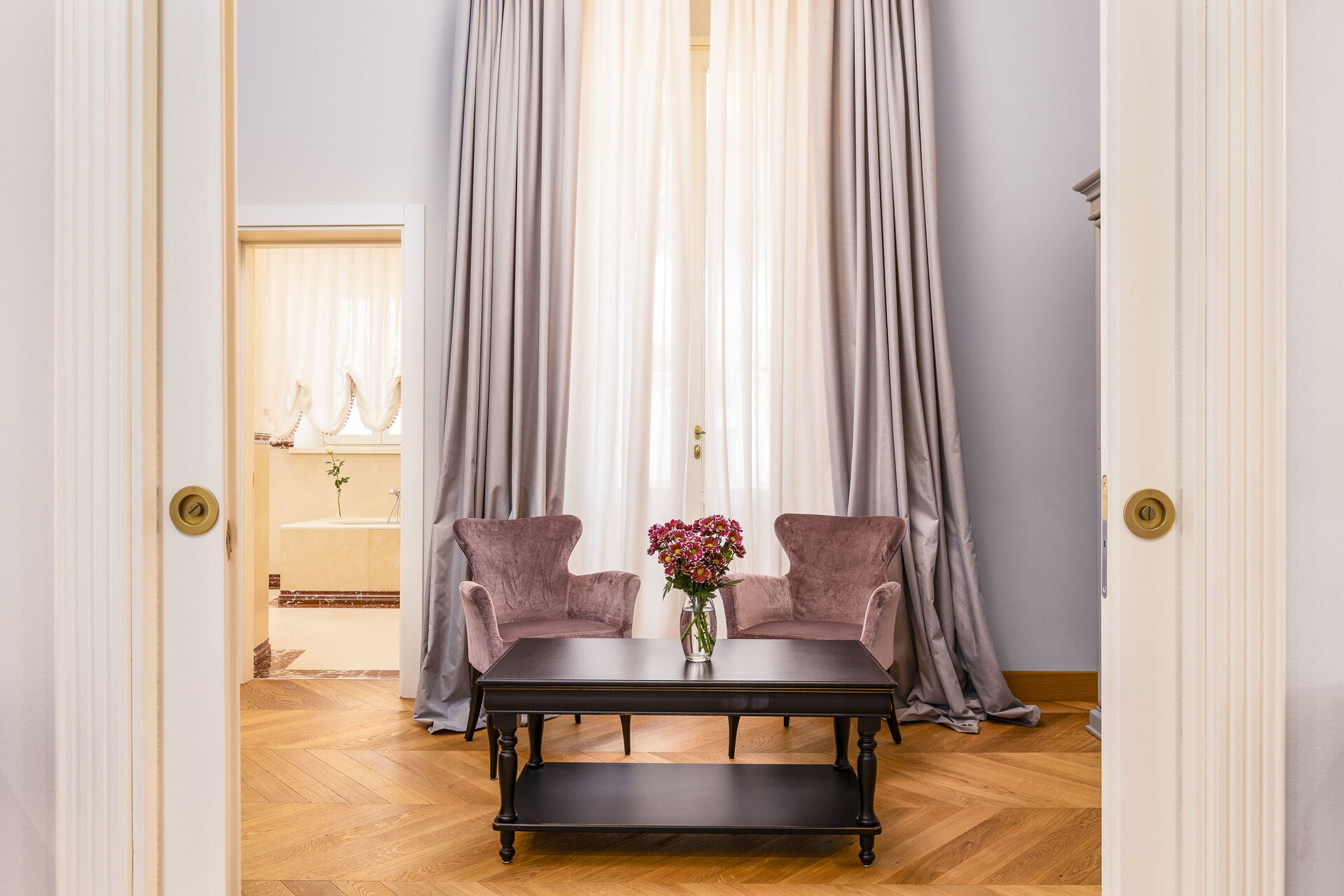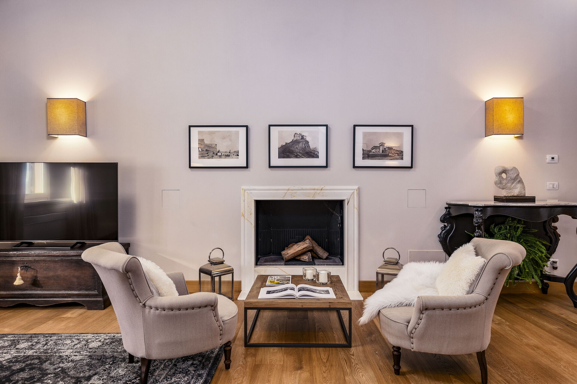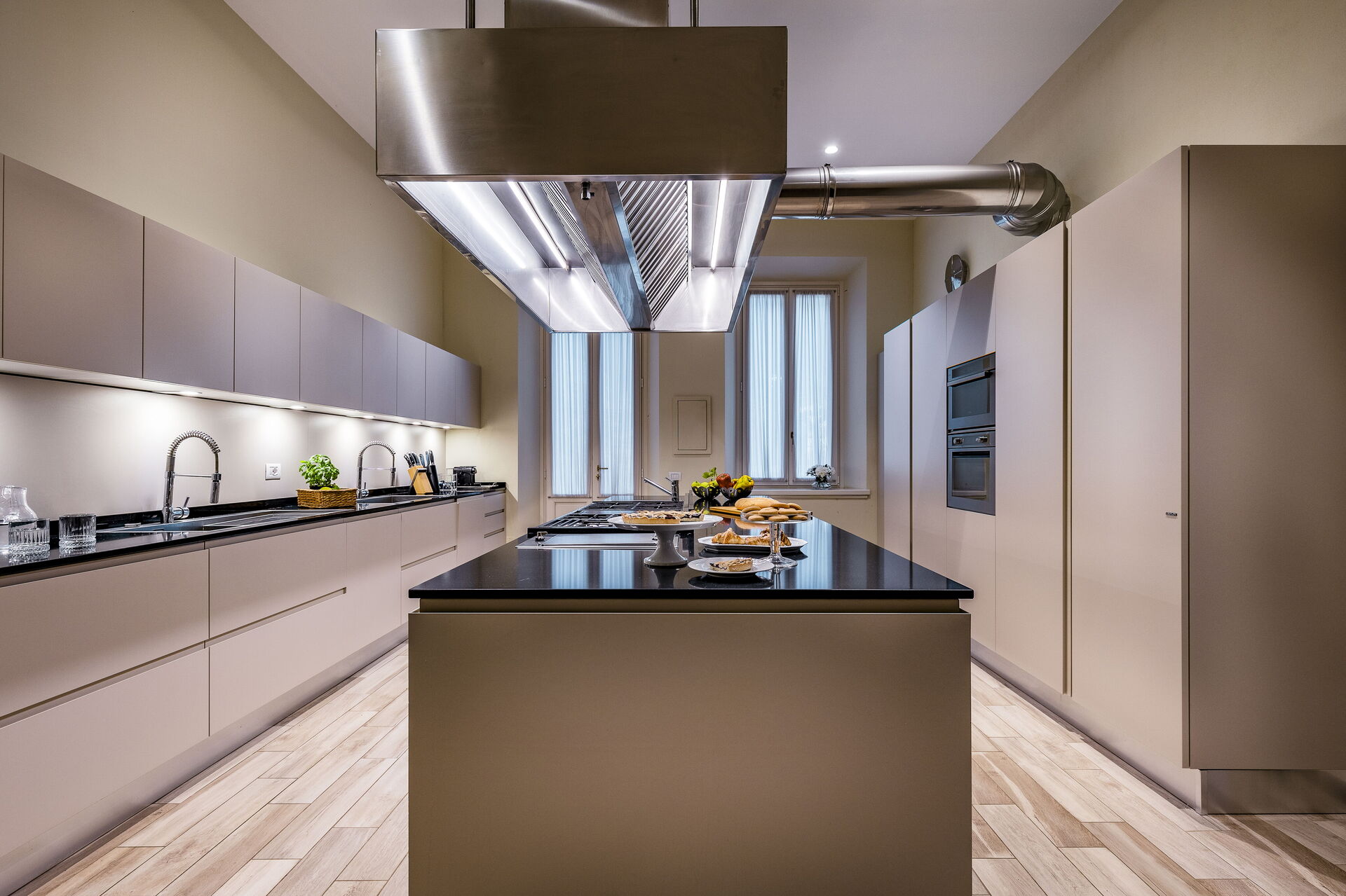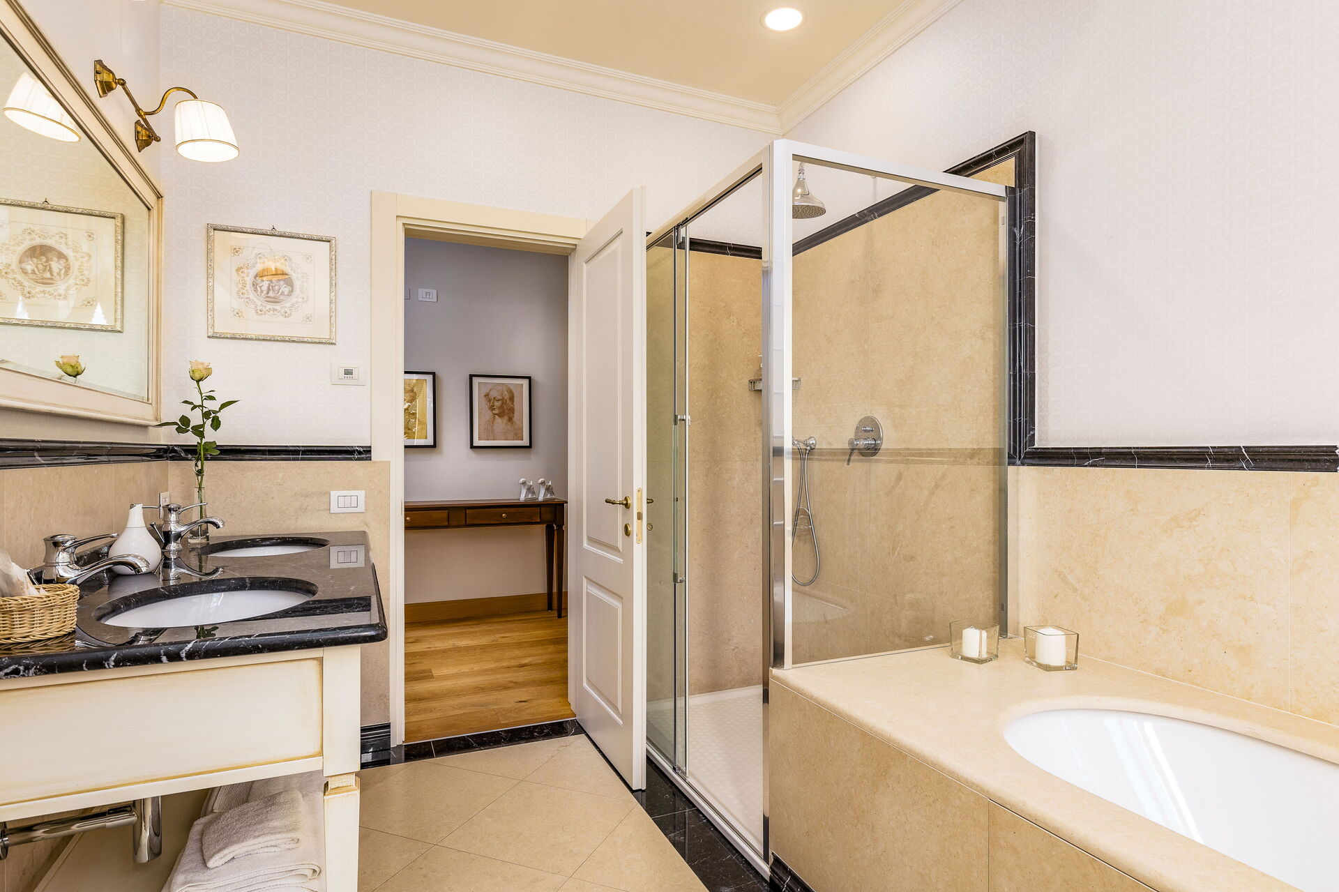 Approached with research in the historical context, results in a new- classic style with a contemporary touch, quality washed wooden boards and marble. Modern yet very comfortable,