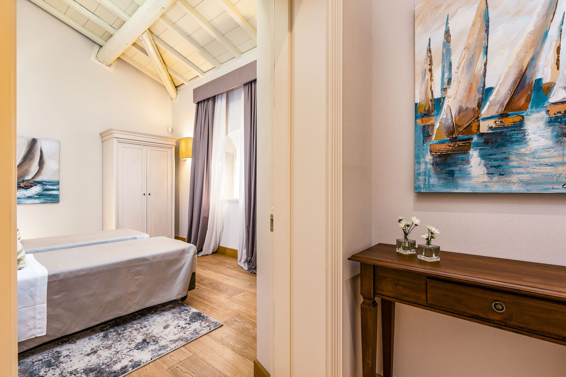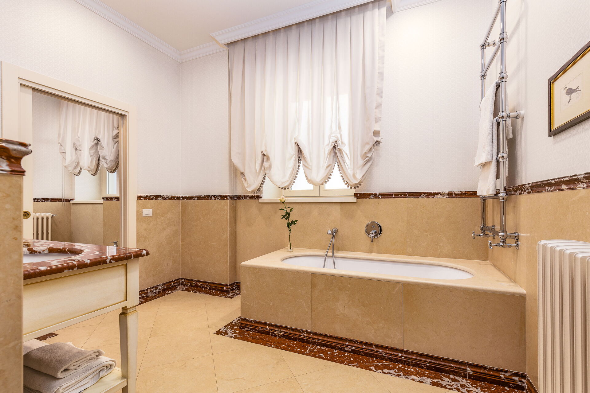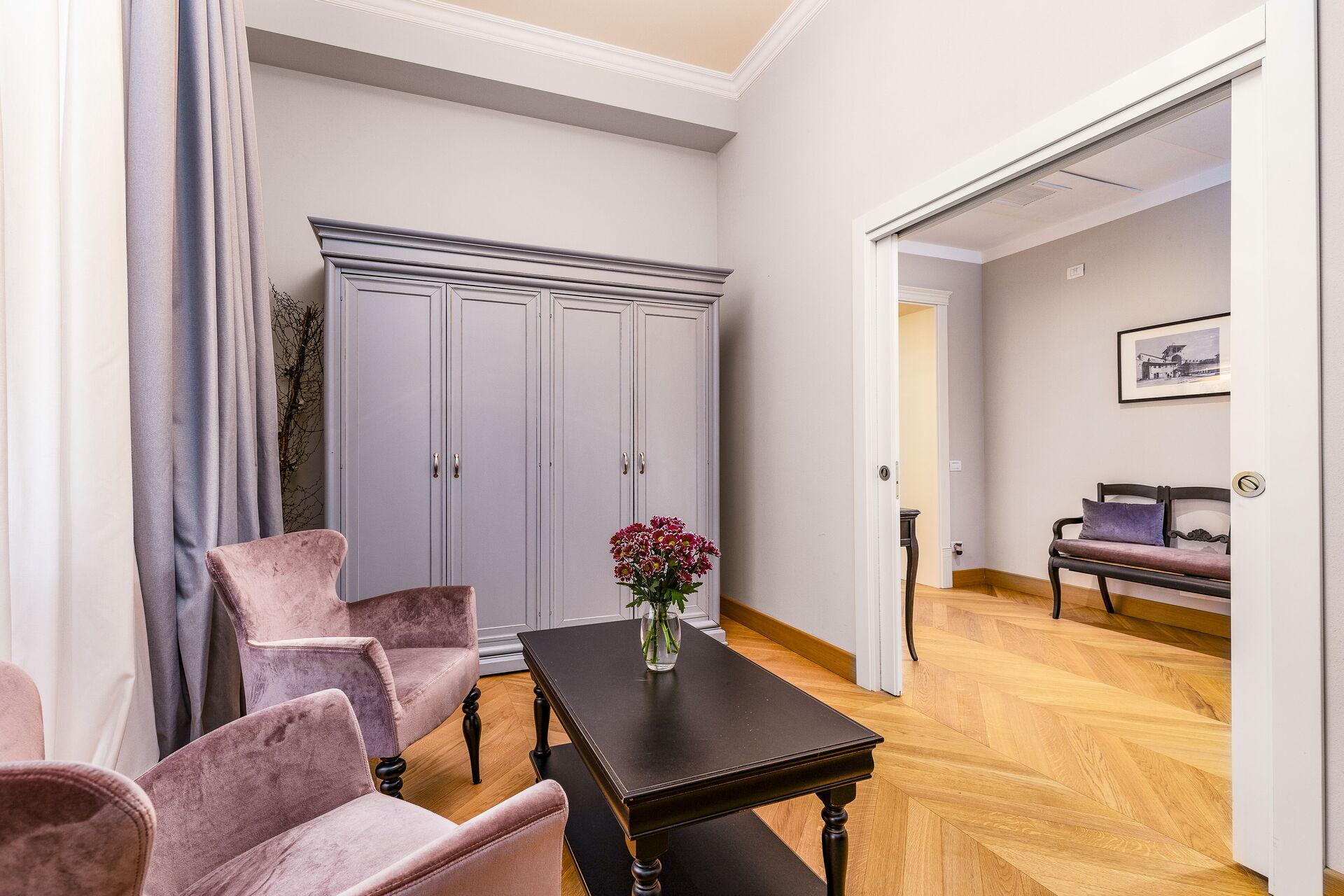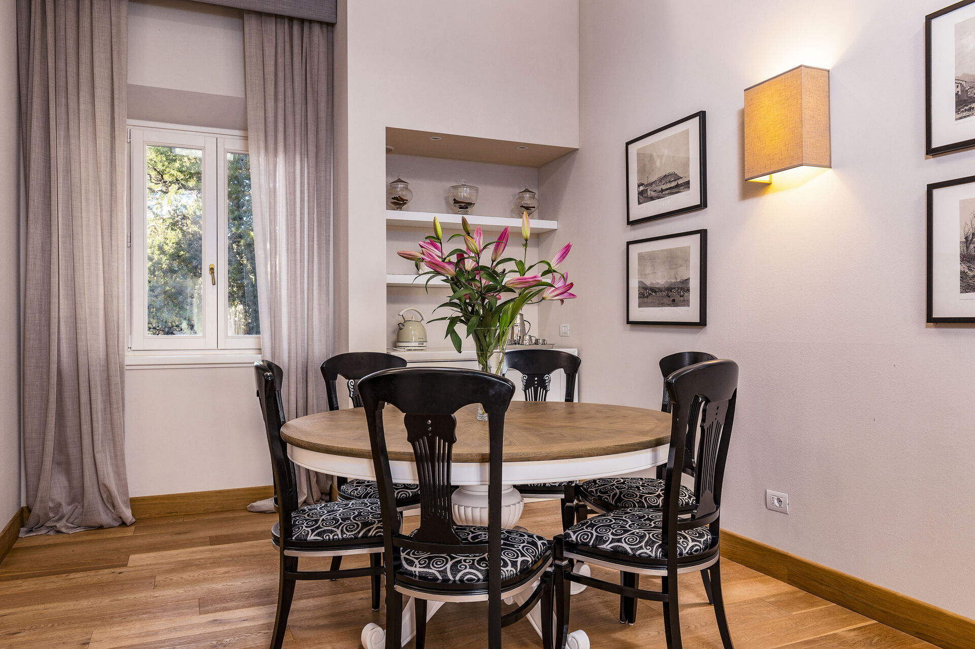 Approached with research in the historical context, results in a new- classic style with a contemporary touch, quality washed wooden boards and marble. Modern yet very comfortable,