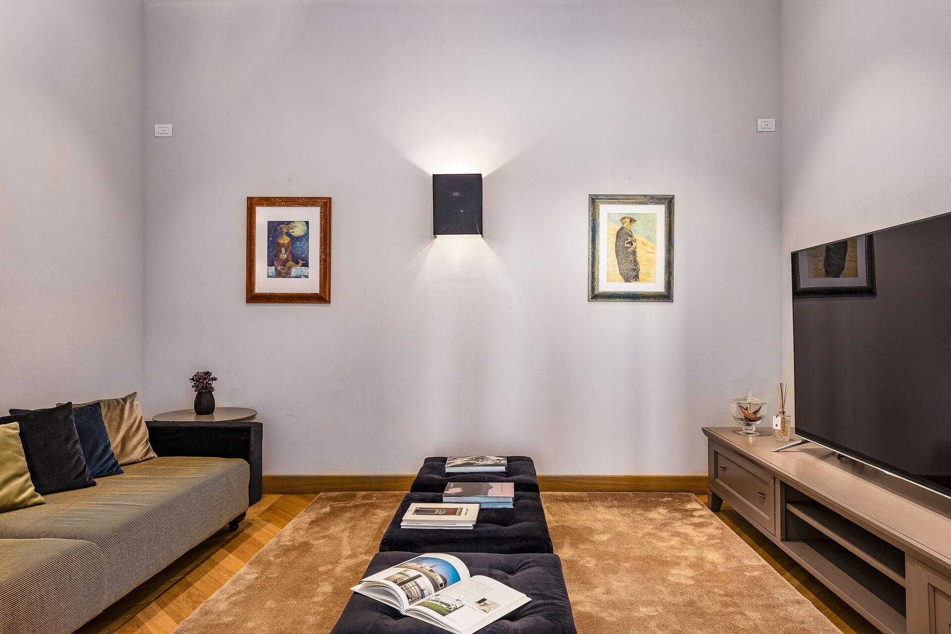 polyester padding and 27-centimetre height. There is a total of 4 extra beds for addition or substitution, at extra cost. Our villa features a lift, of 63 centimetres of side, that can be used to access upper floors for people with problems of mobility. Thanks to a modern smart system, guests can connect their devices (smartphone, tablet, iPhone) to the villa wireless fast network and listen to music, choosing from the local music library or from their own playlists.