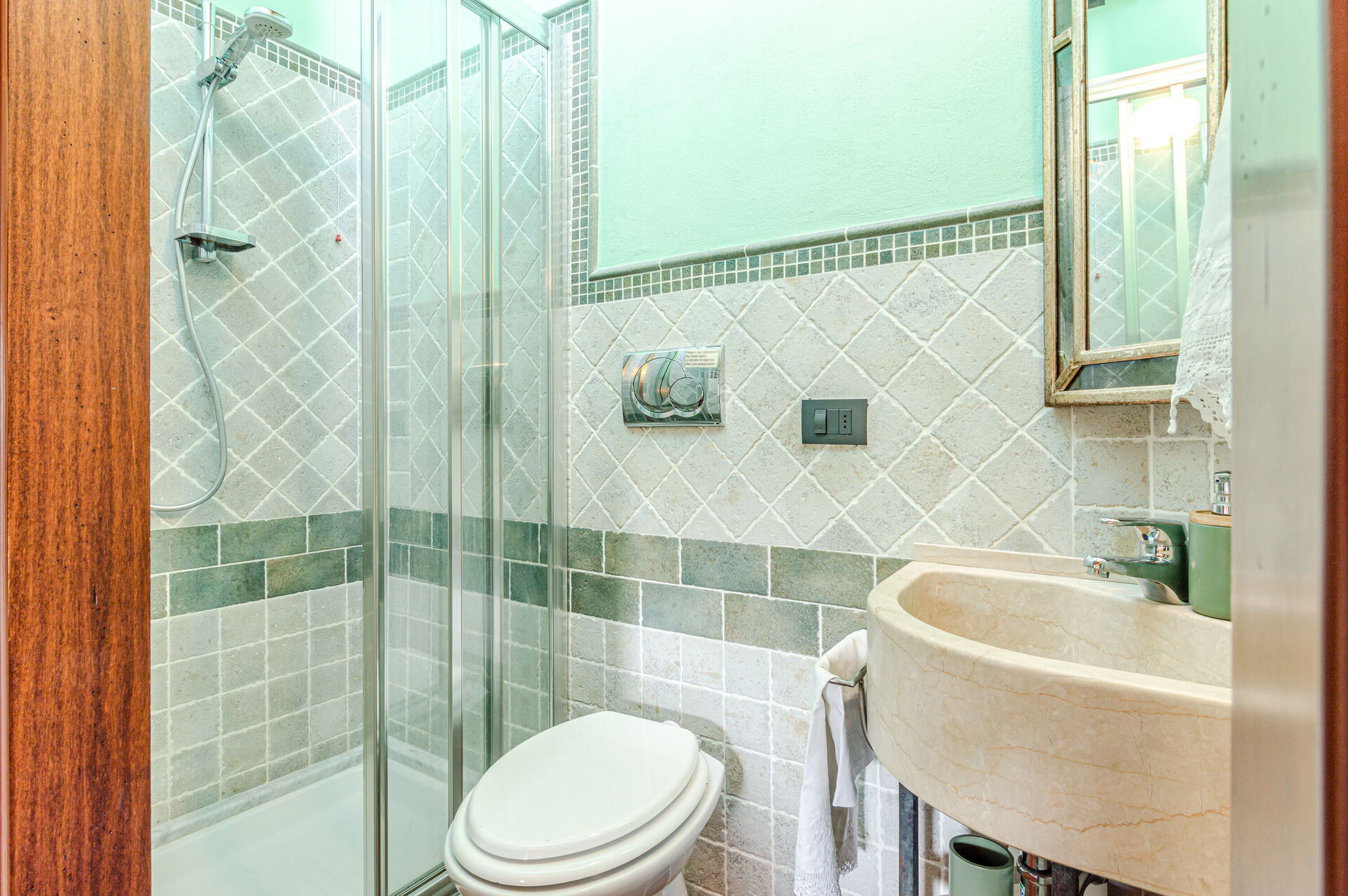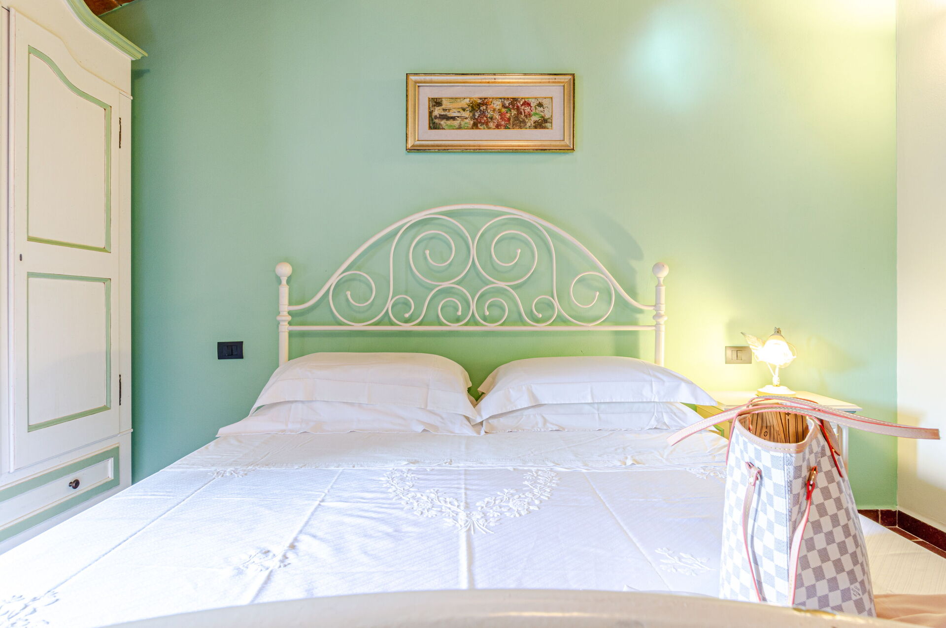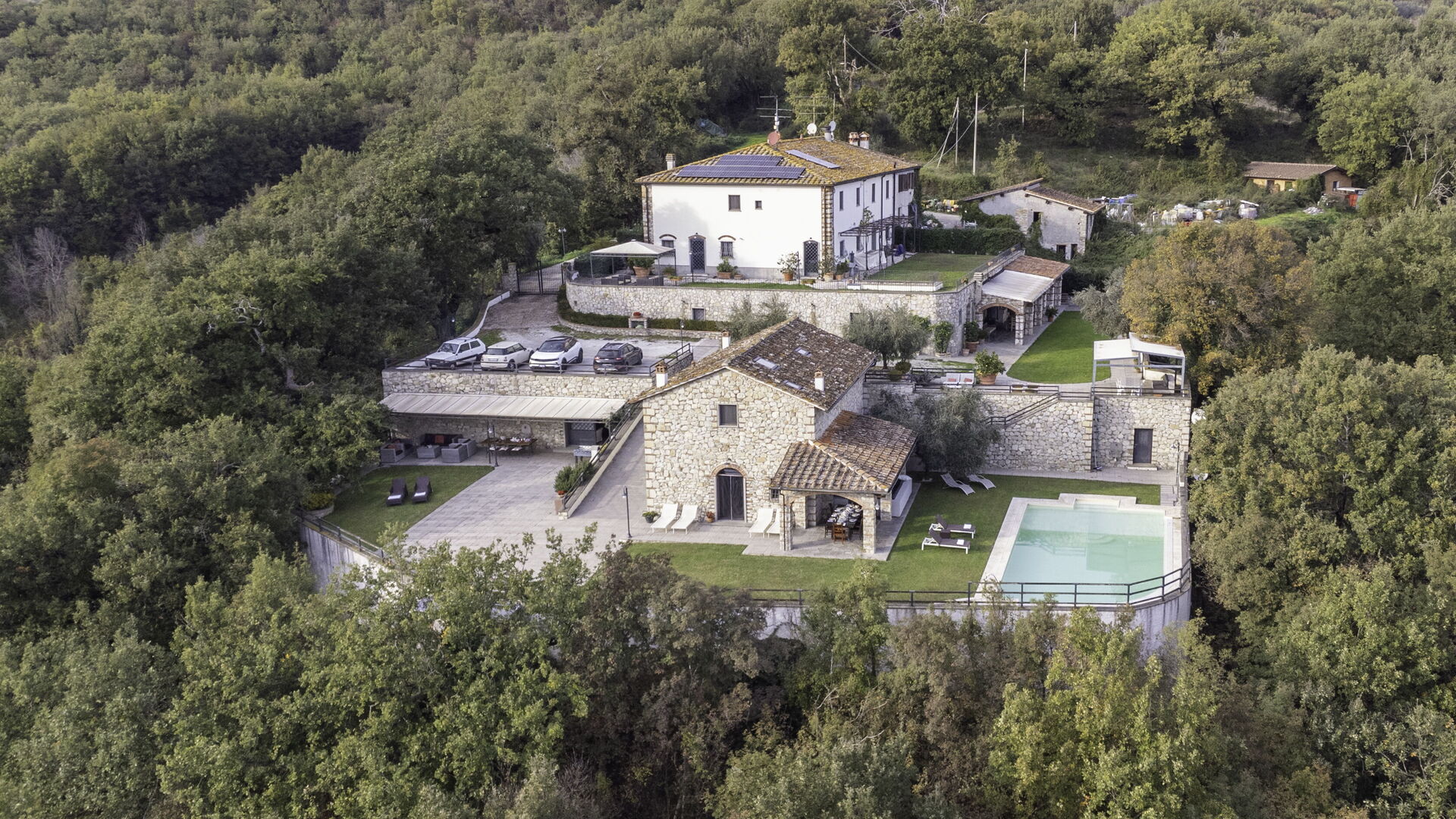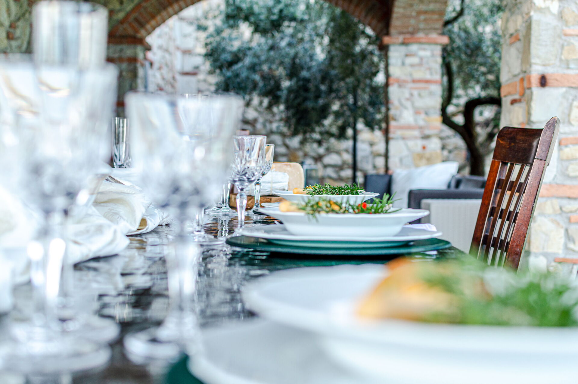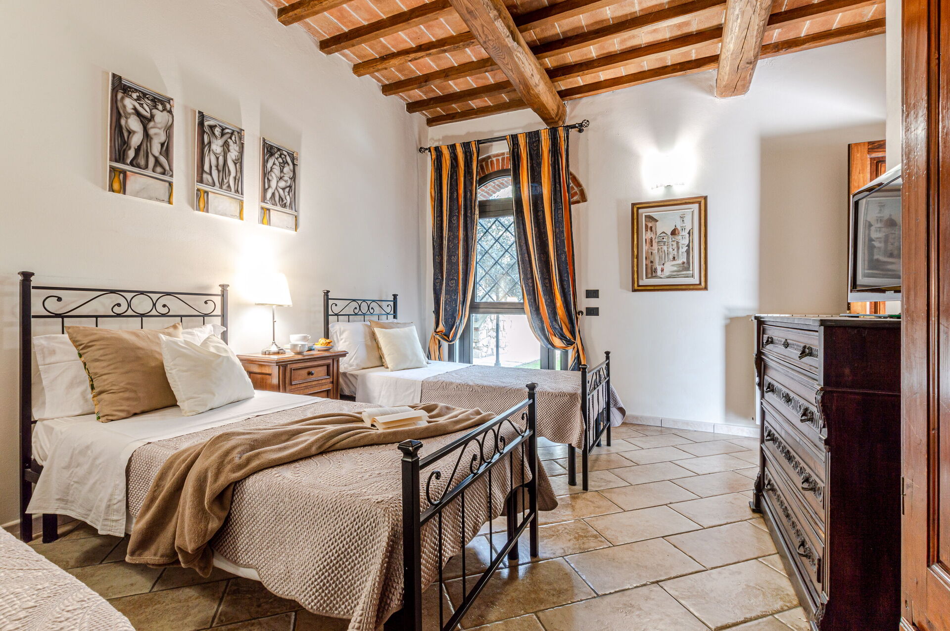 Villa Le Croci (220 m²) has been renovated, but many of the original decorations and materials have been retained, such as natural stone, beamed ceilings, and terracotta tiles.