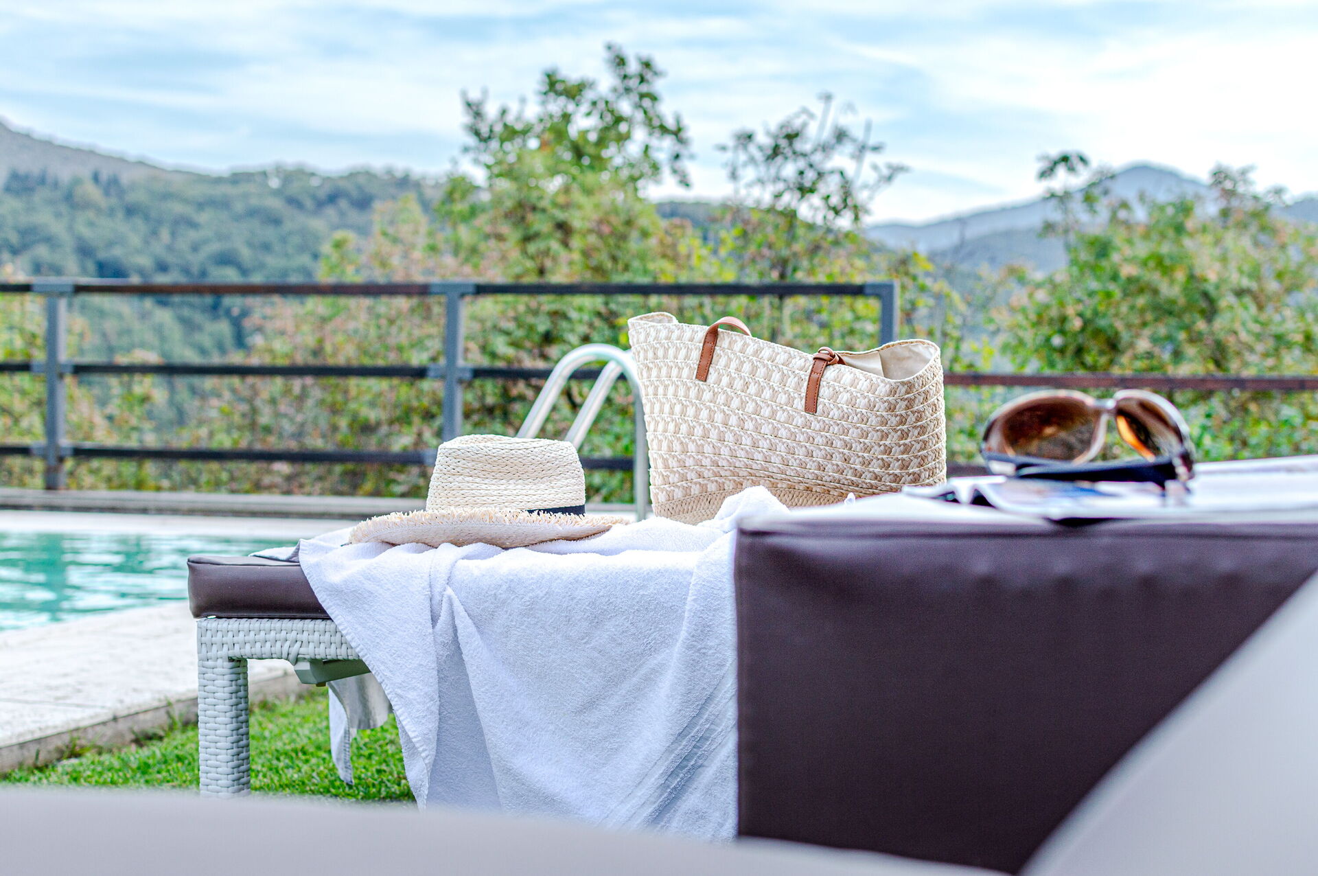 On its terraces, surrounded by oak trees, olive trees, and vineyards, tranquility reigns supreme. A walk through these beautiful grounds can lead to unexpected encounters with nature: deer, hares, and pheasants. The garden and panoramic terrace, adorned with modern furnishings, invite you to relax outdoors. Tables, chairs, sofas, and a barbecue await to satisfy your every culinary desire.