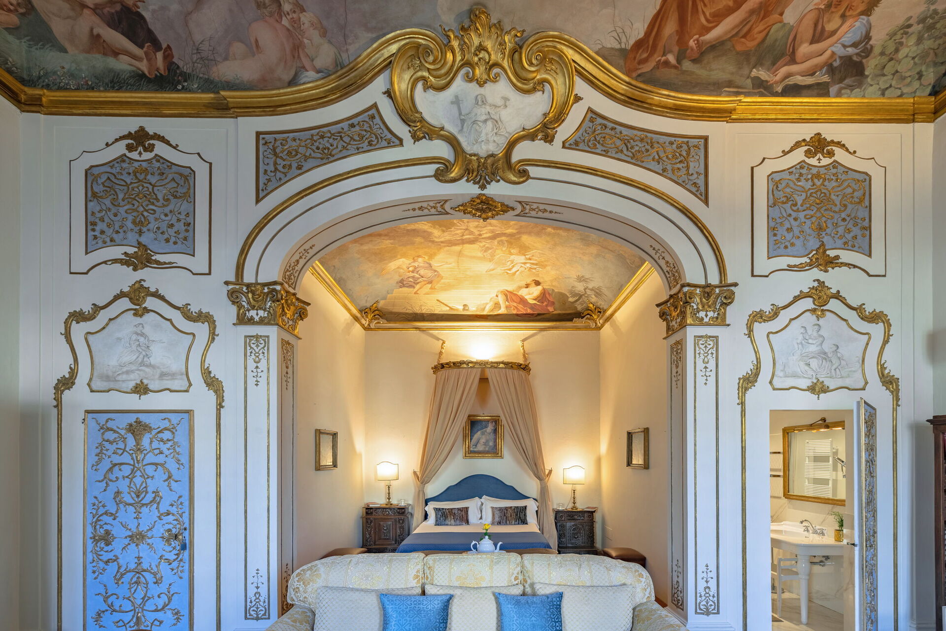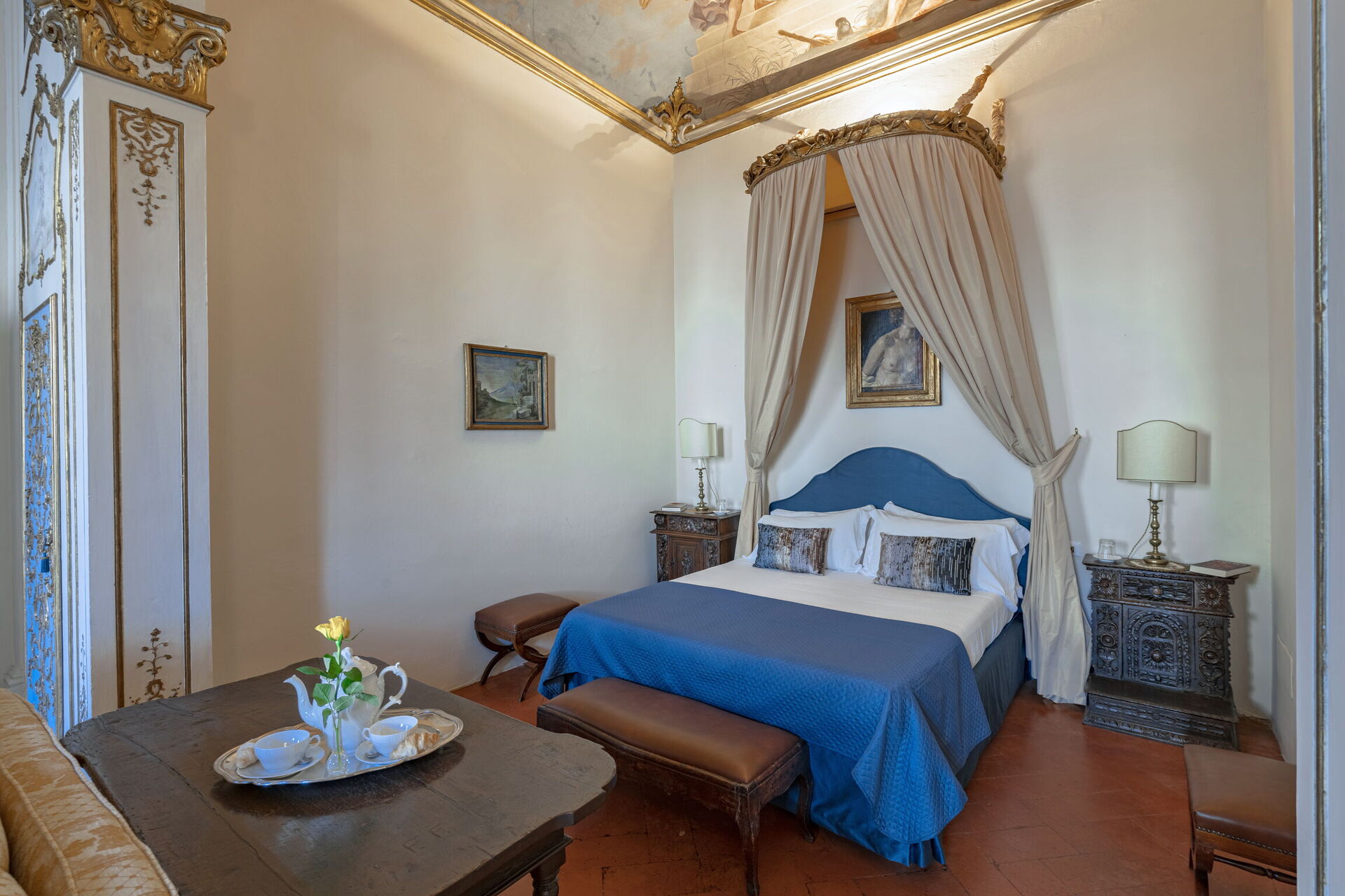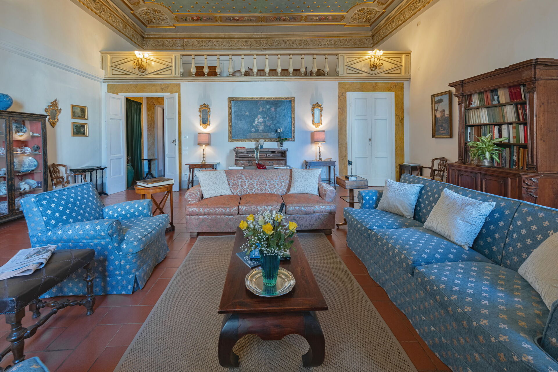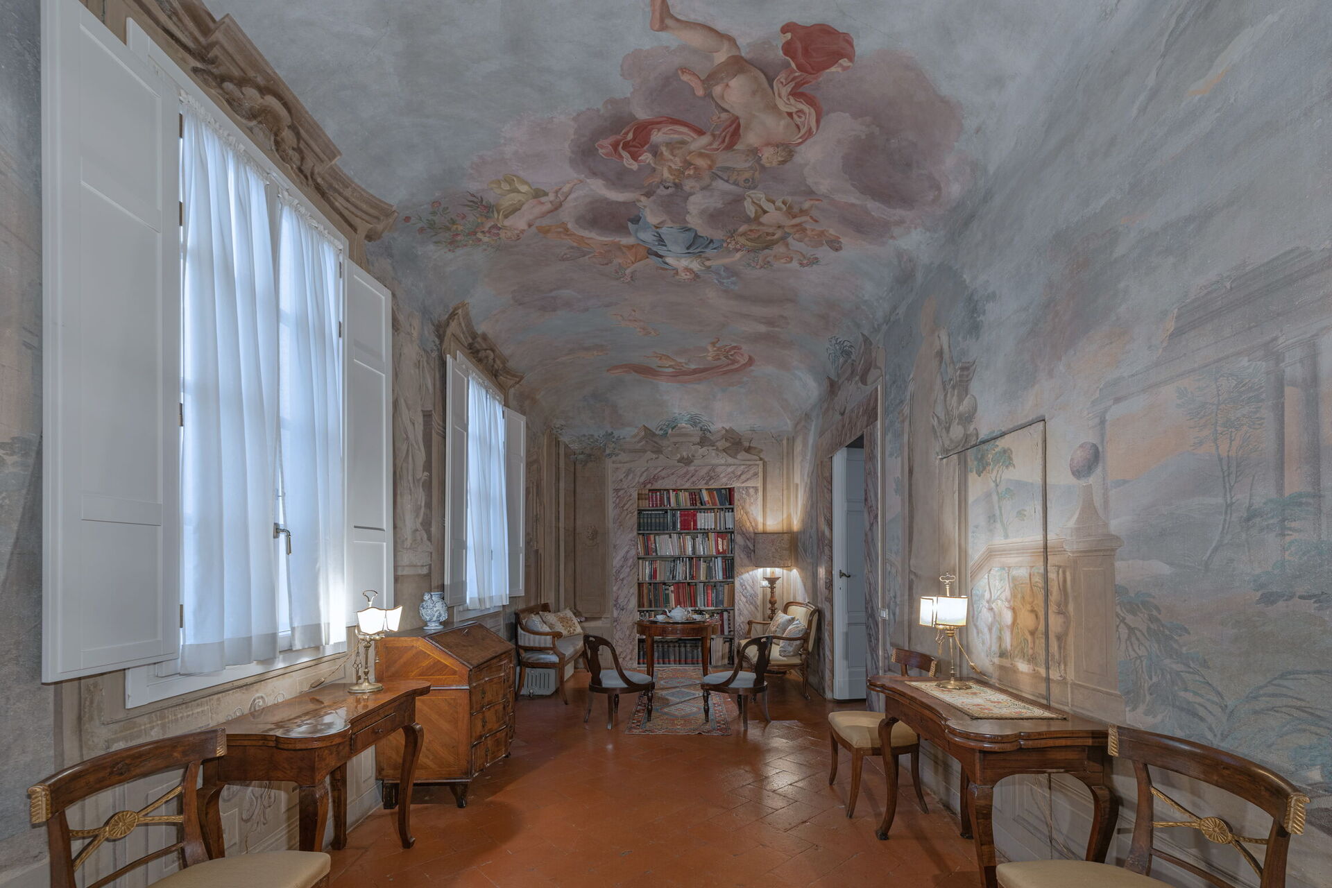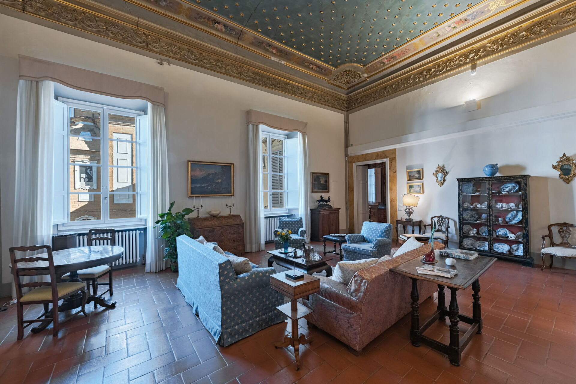 the Medici Chapels, this noble family belongs to a prominent Florentine family. From the front doors guests enter a hallway decorated in the nineteenth century: worthy of note the wrought iron gates and, facing the stairway, a doorway engraved with the coat arms of the family. On the first floor (the piano nobile) decorated with precious wall paintings, the private home is today one of the largest apartments in Florence for hire, and it's perfect for families and for those with a taste for Art and a central location.