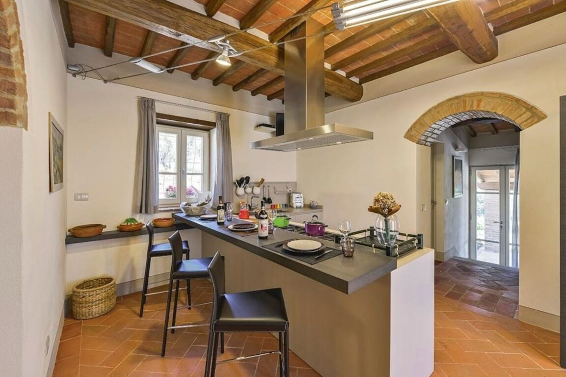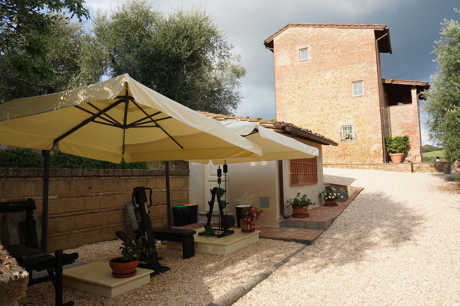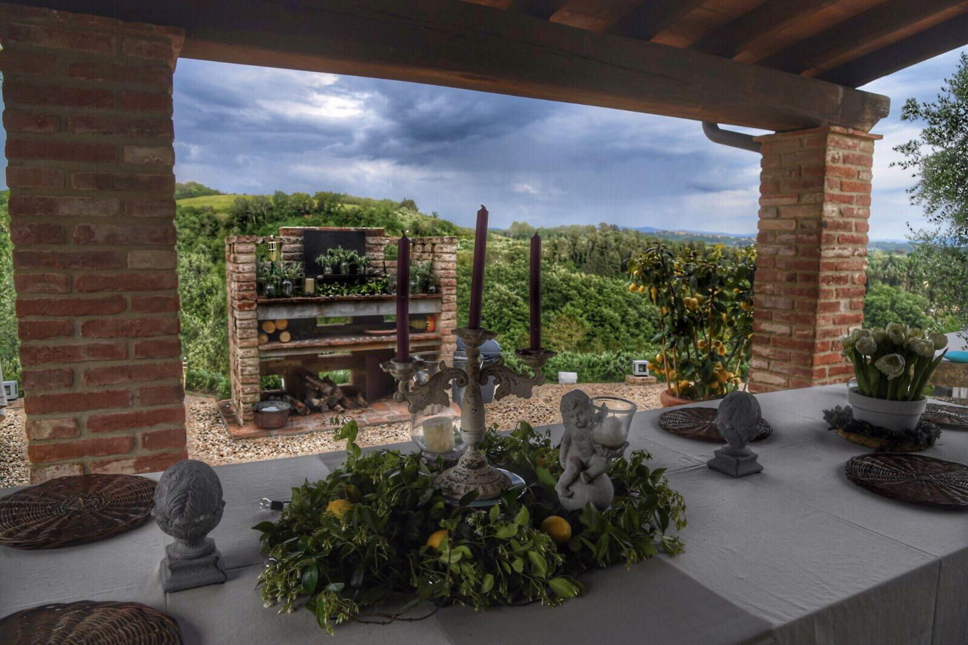 The external area of the property has a swimming-pool of recent construction (2013). From May to October, the private swimming pool, with a beautiful view over the Valley surrounding the villa, offers to the clients the possibility to spend relaxing days in privacy, surrounded by the green of the Tuscan countryside. A barbecue, a large pergola and a big wood-fired oven restored respecting its original structure, permit to organize wonderful dinners on the outside. The restoration of the property, respecting its original structure and function, contribute to recreate the environment and conviviality of the past.