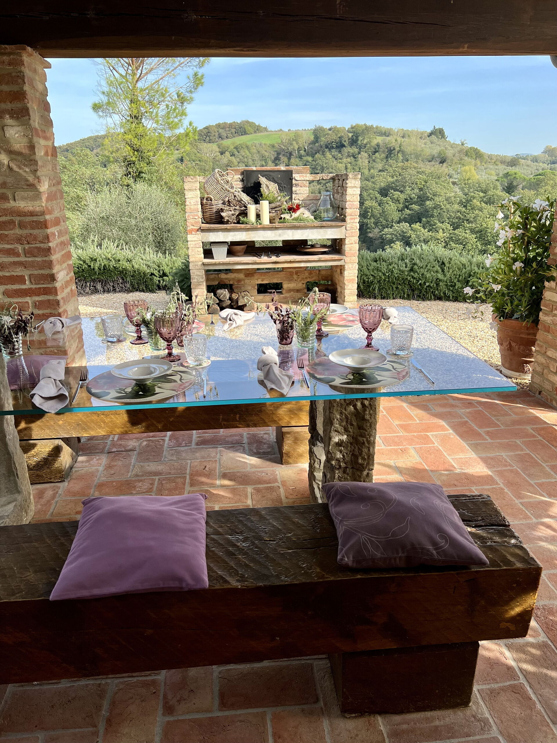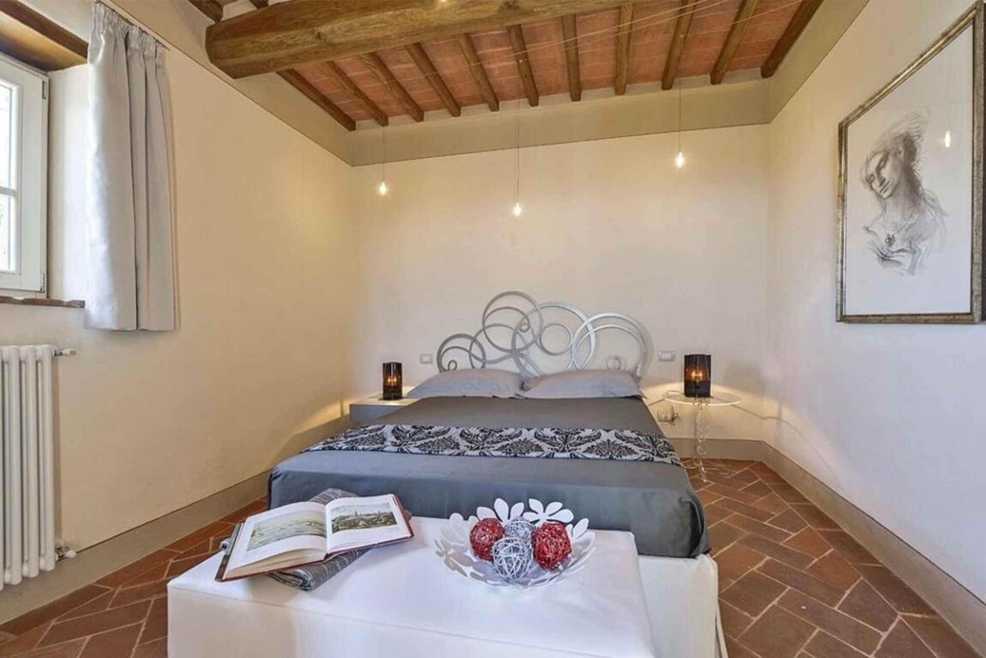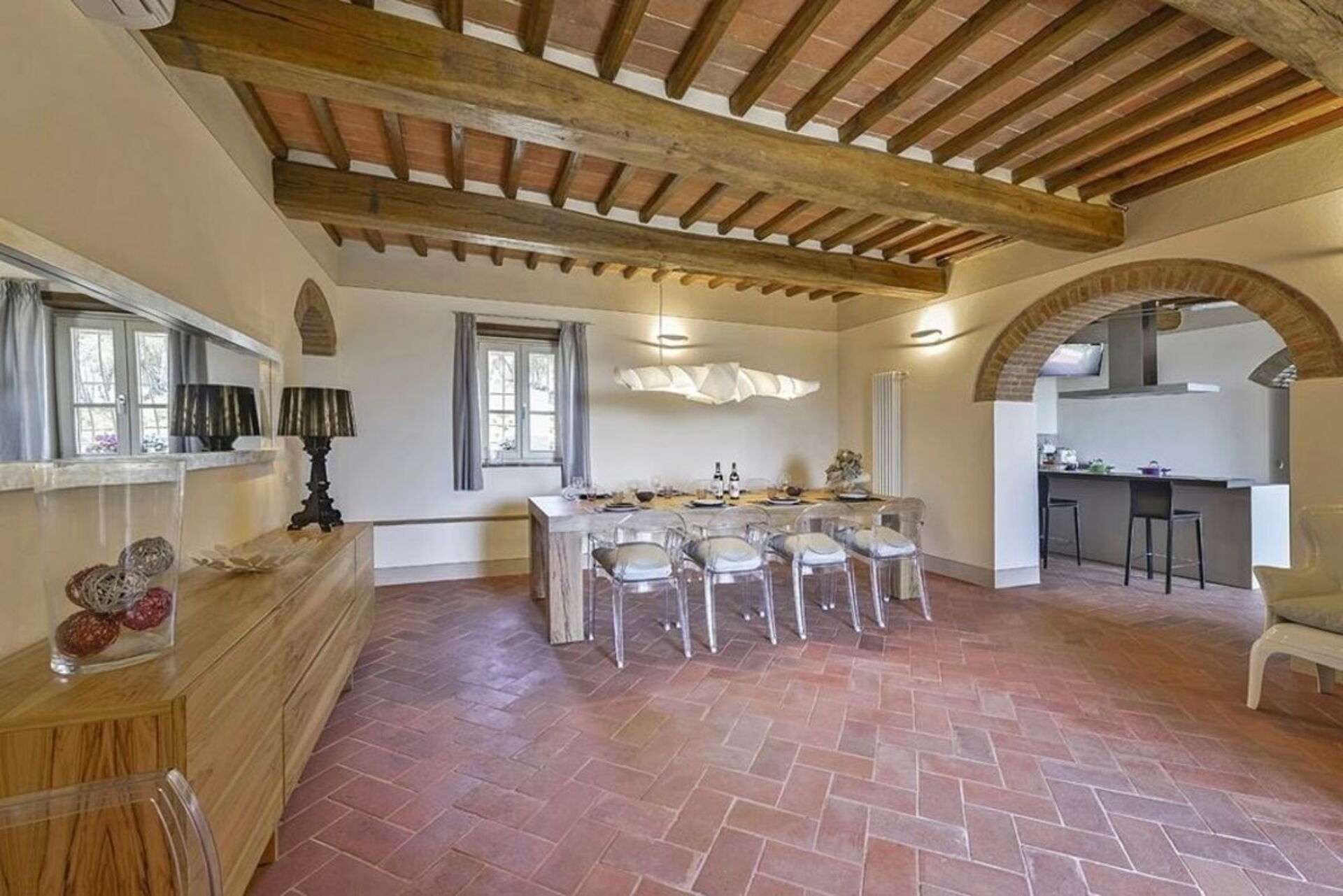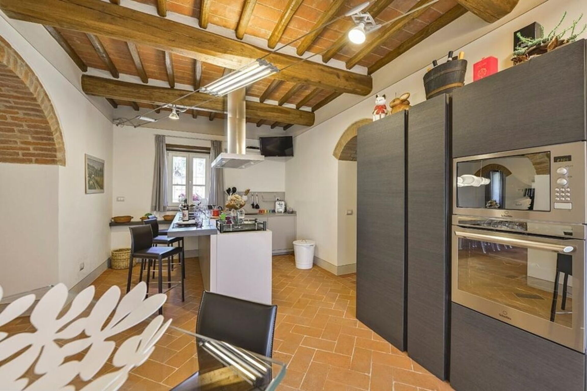 The external area of the property has a swimming-pool of recent construction (2013). From May to October, the private swimming pool, with a beautiful view over the Valley surrounding the villa, offers to the clients the possibility to spend relaxing days in privacy, surrounded by the green of the Tuscan countryside. A barbecue, a large pergola and a big wood-fired oven restored respecting its original structure, permit to organize wonderful dinners on the outside. The restoration of the property, respecting its original structure and function, contribute to recreate the environment and conviviality of the past.
