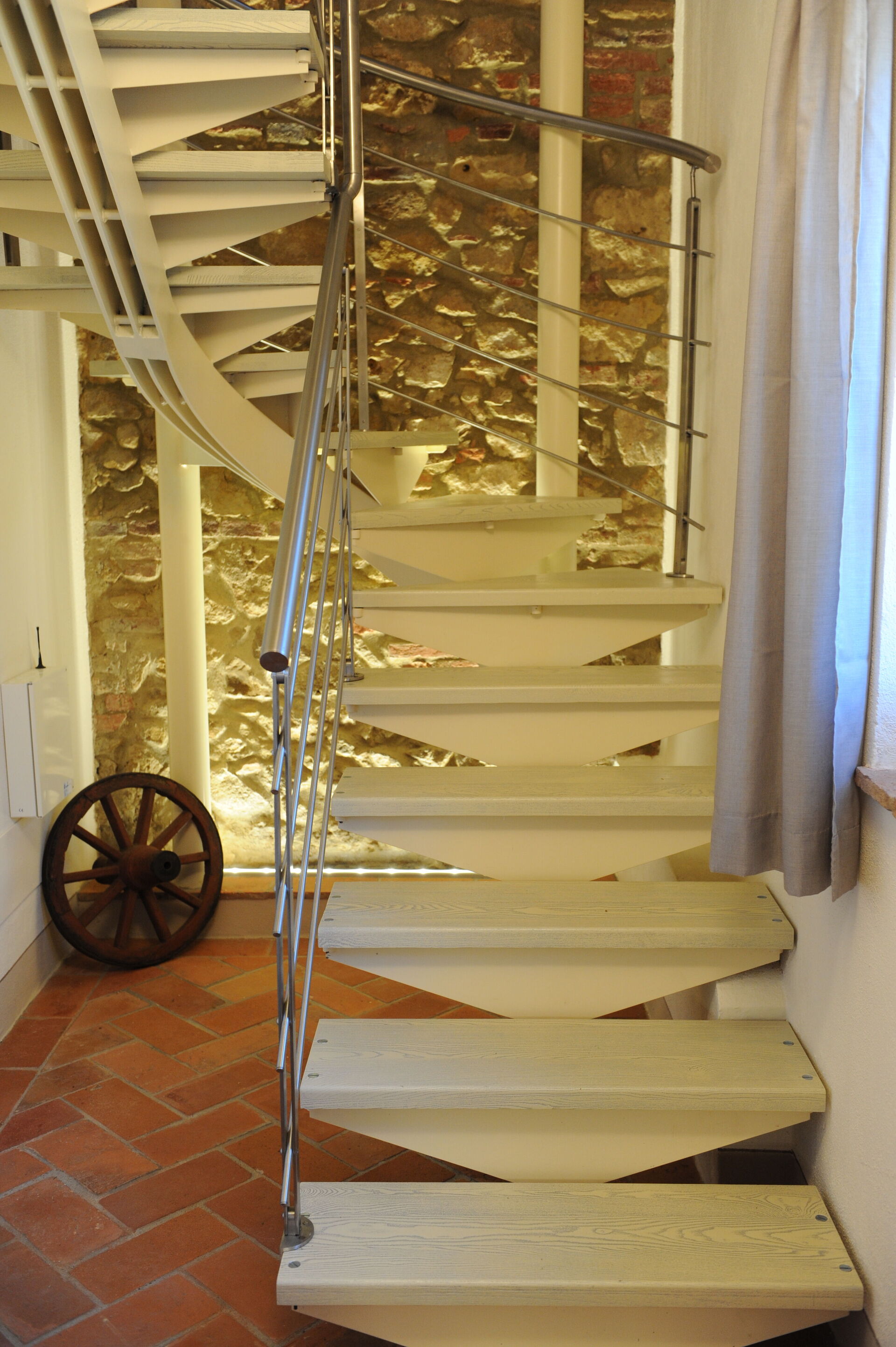 Access to upper floors one through an external stone staircase leading to a small balcony from which you can enjoy a landscape that, in the clearest days, reaches the sea, either through a spiral staircase in steel and wood that is modernly illuminated, evocative sight stone wall adjacent to it.