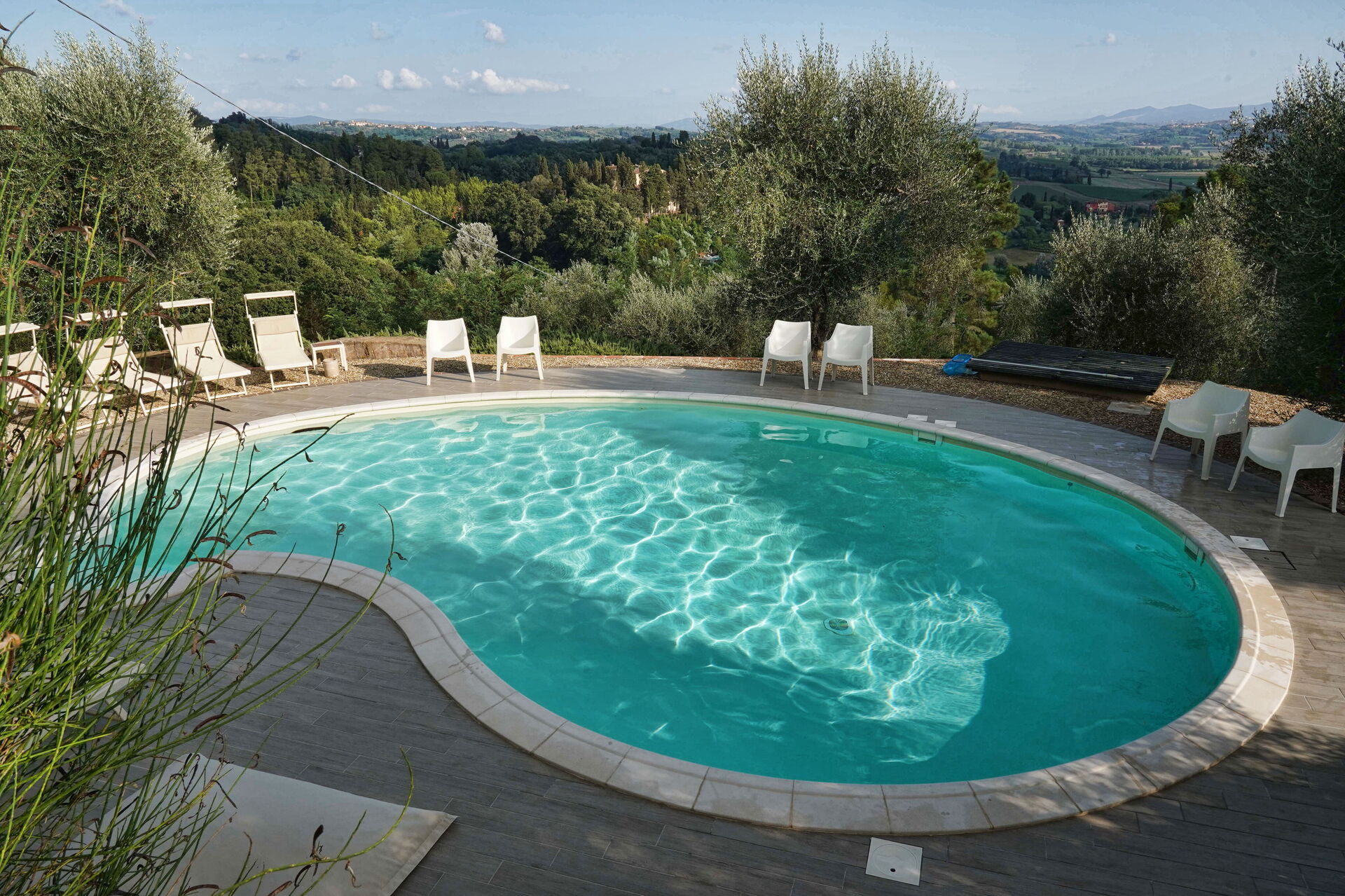 On arrival, the view of the villa, framed by the surrounding valley. The swimming pool, a jewel inaugurated in 2013, is waiting to give you days of pure relaxation and moments of privacy in the heart of the Tuscan countryside. The panorama that opens up before you is a postcard of nature, a dream picture.
