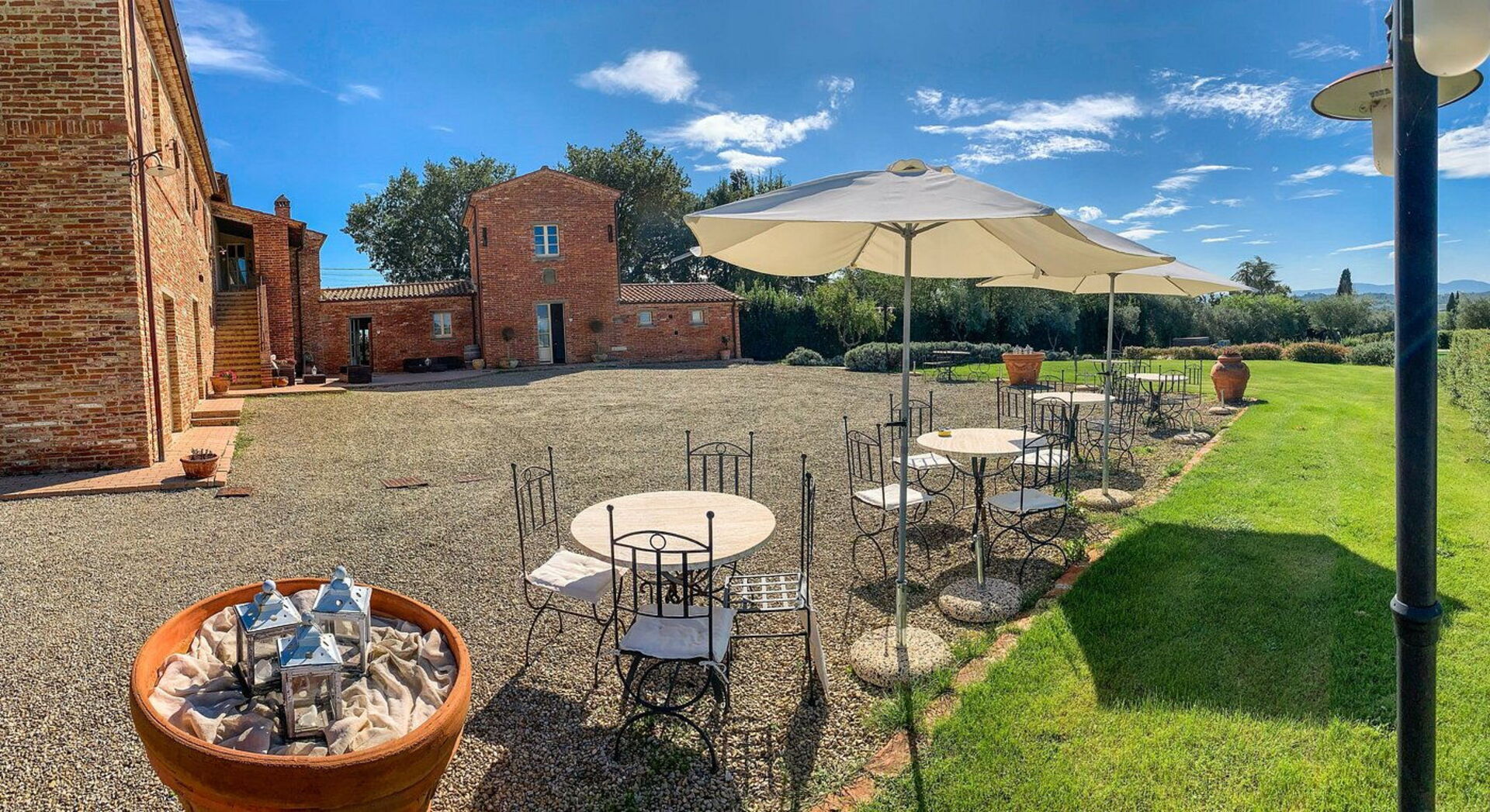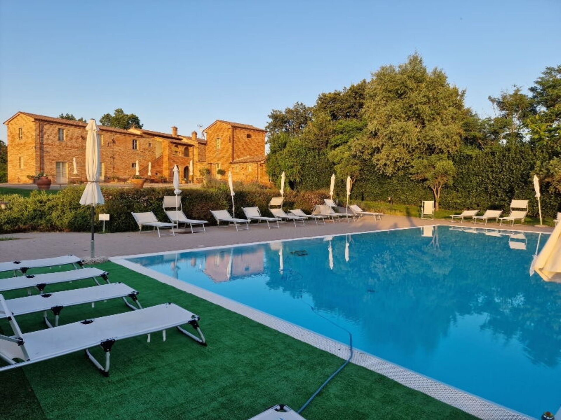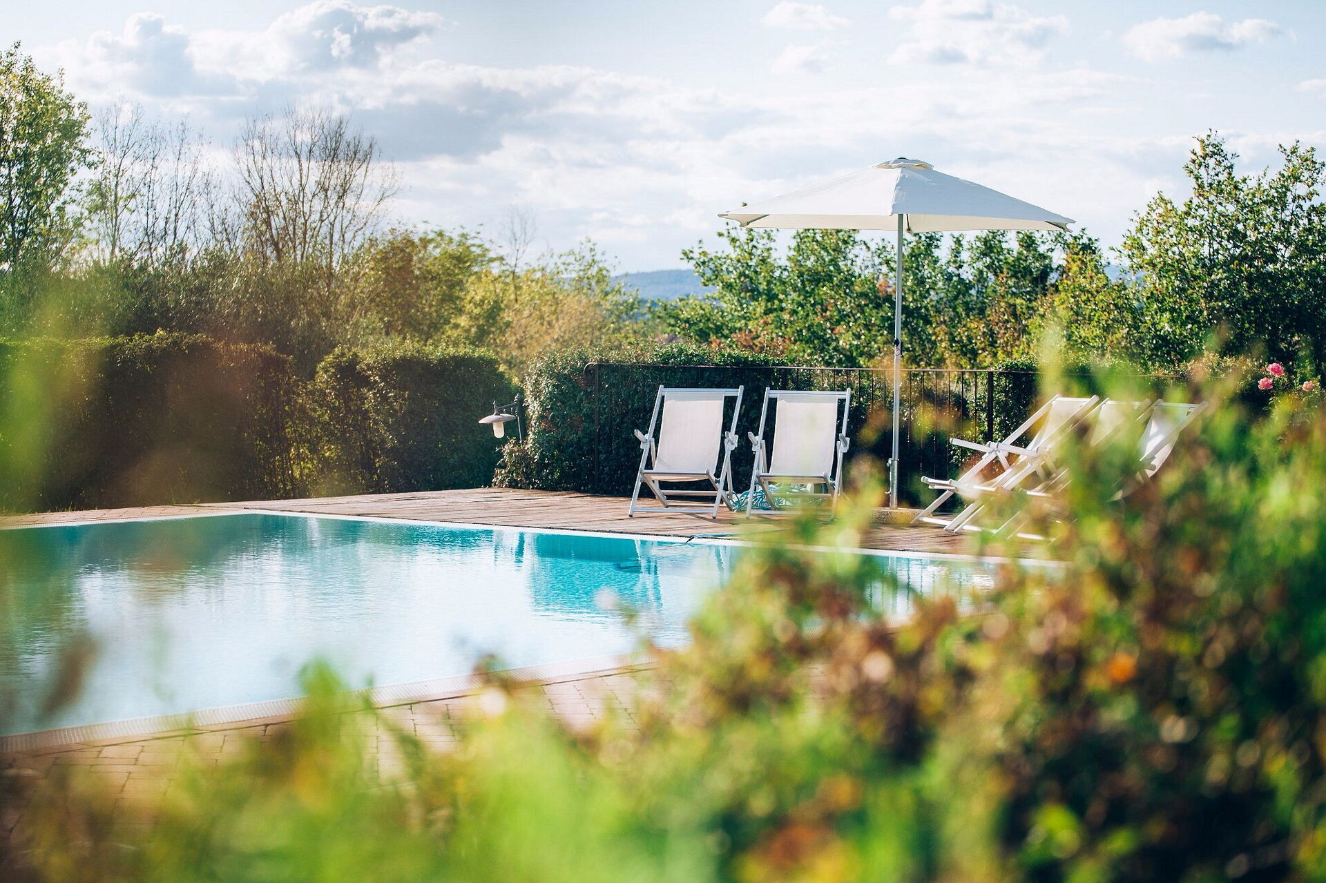 There is a place in the rolling hills of Valdichiana where the view stretches as far as Cortona and Montepulciano and the air smells of wild herbs and wood. This is where you will find Casale Cardini (Via della Selce 44, Foiano della Chiana – AR), an old farmhouse that has been transformed into a resort thanks to the Bartoli family's vision: philological restoration of the walls, bespoke interiors in contemporary Tuscan style and that all-Italian balance between discretion and warmth that makes the welcome genuine, not just superficial. The location is strategic: the A1 Valdichiana and Siena-Perugia motorway junctions are 4-5 km away; Cortona can be reached in about 25 minutes, Montepulciano in 30, Pienza and Arezzo in 35-40, and Siena in less than an hour. A few hundred metres away, the medieval village of Foiano della Chiana offers shops, trattorias and the friendliness of an authentic Tuscany.
