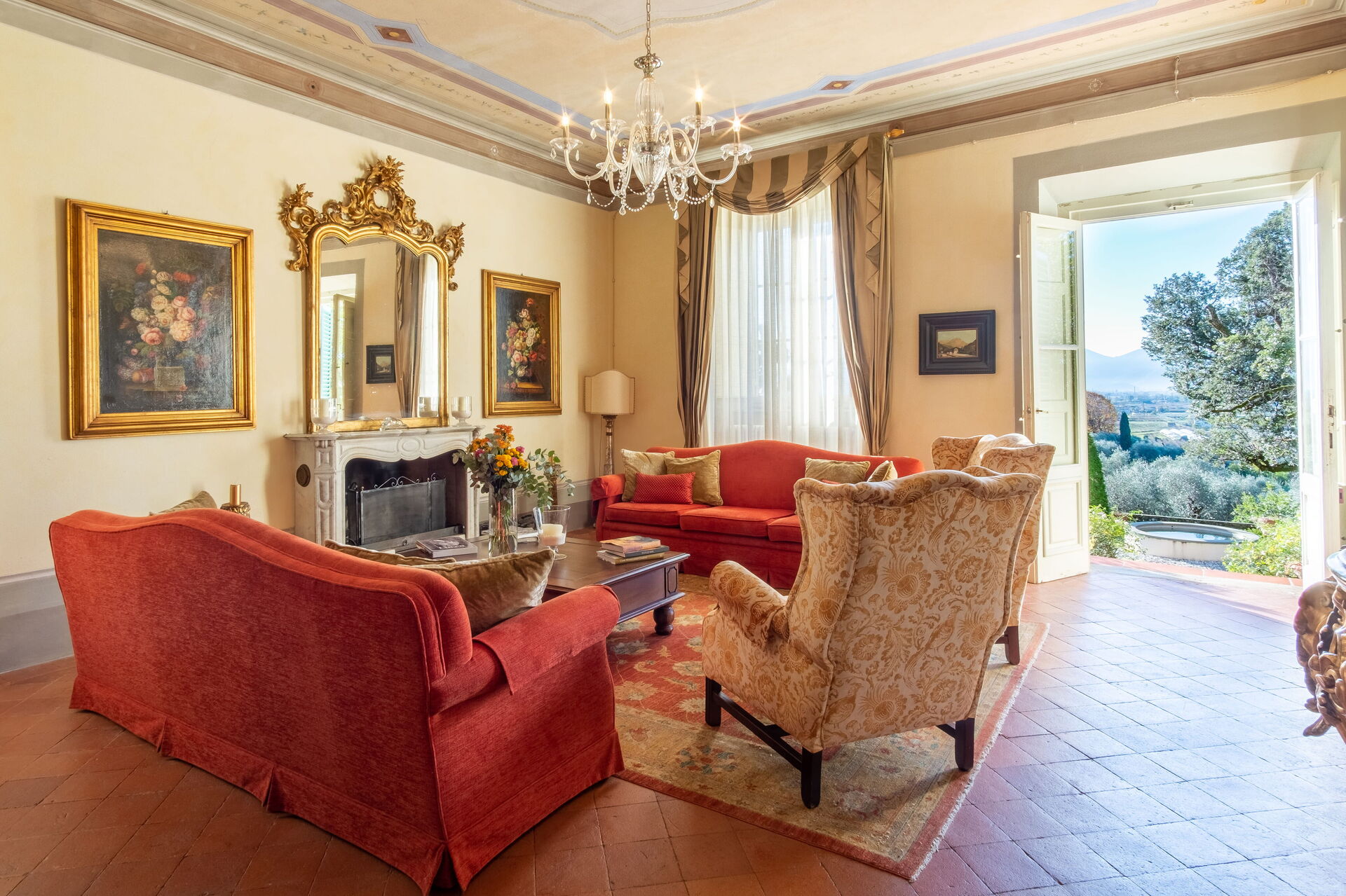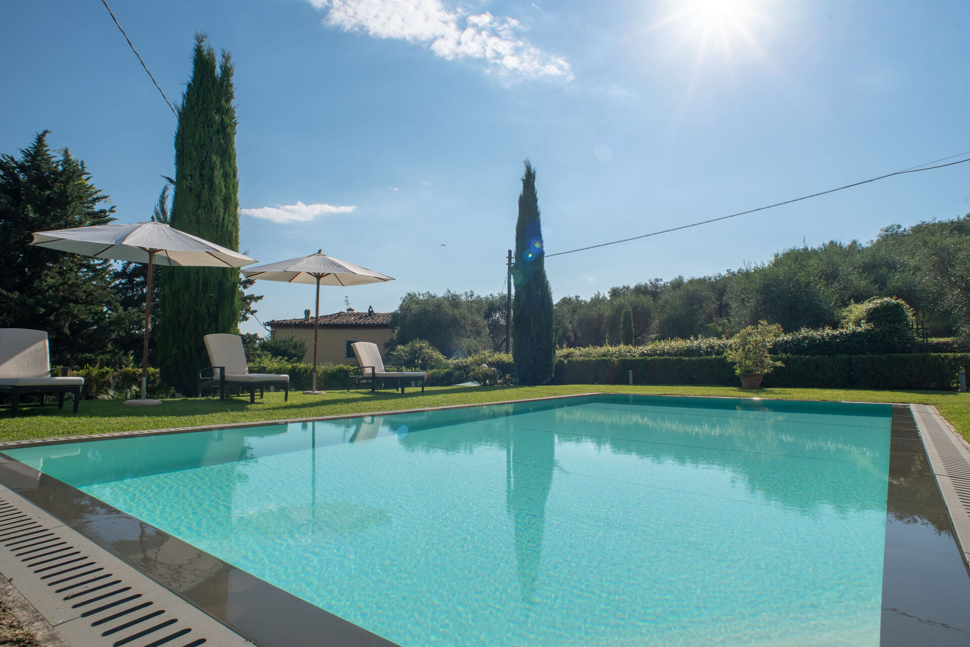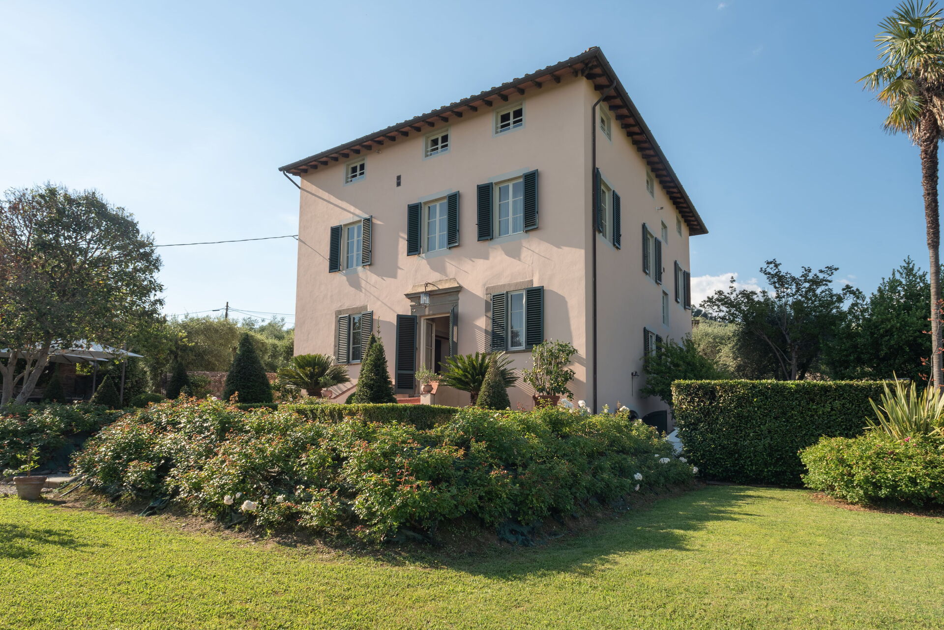 All around the Villa is a marvellous Italian-style garden, cared for down to the last detail and communicating with the beautiful 13x5 metre swimming pool, surrounded by a green lawn and immersed, like the rest of the property, among the olive trees and rose bushes.