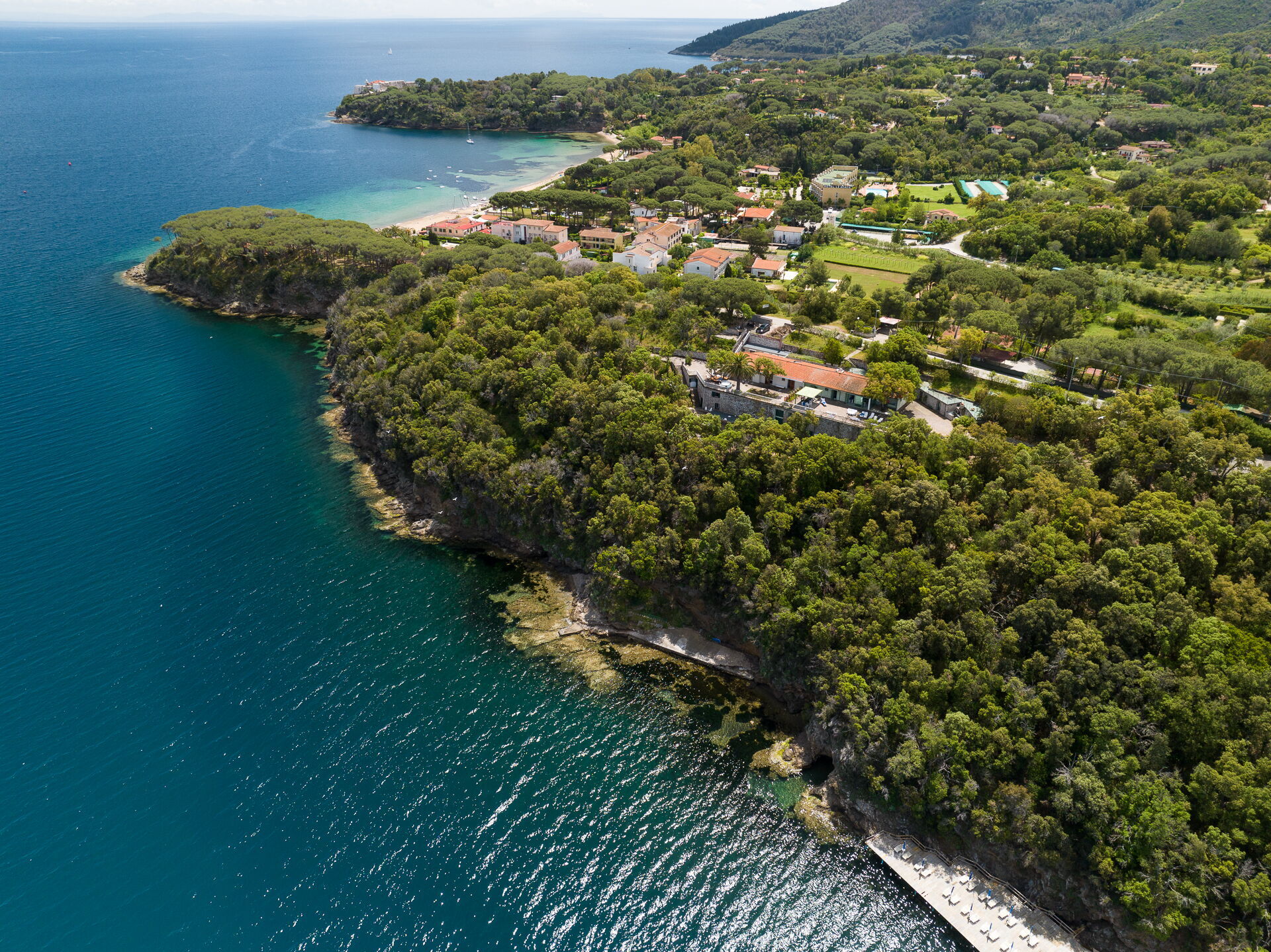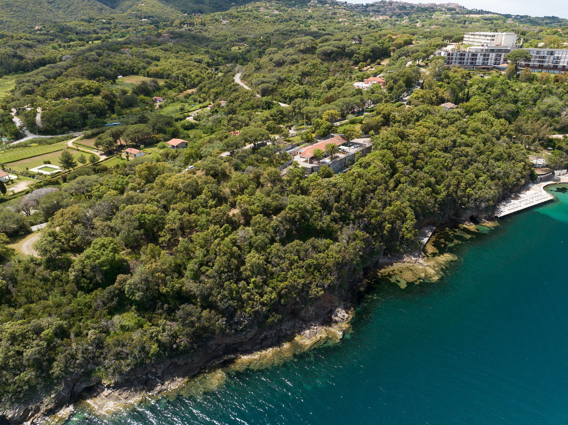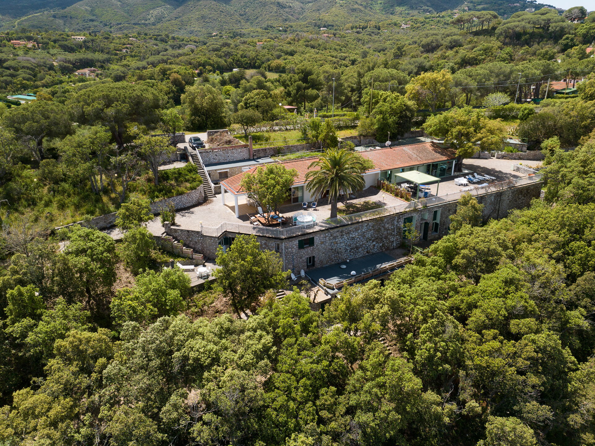 Villa Porto Azzurro is a splendid master Villa of 130 square metres and three Dependances of about 40 square metres each overlooking the crystal-clear sea of the Island of Elba, offering a wonderful view of the Gulf of Mola and its renowned Porto Azzurro. The Villa and the Dependance are located in the midst of nature within a private woodland that descends directly towards the access to the sea via a flight of steps.