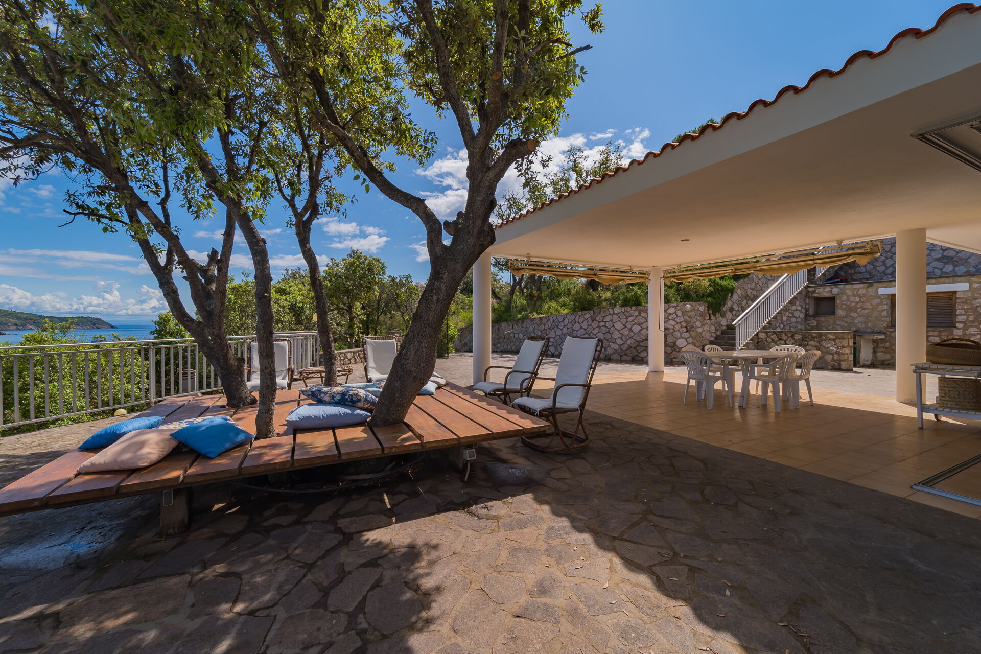Villa is the main body of Villa Porto Azzurro, a 130 sqm Cottage with three bedrooms with bathroom, a kitchen and a living room and a wonderful terrace overlooking the Gulf where you can enjoy breathtaking views and priceless sunsets. A staircase leads from the Villa to the three Dependances below and the private access to the sea.