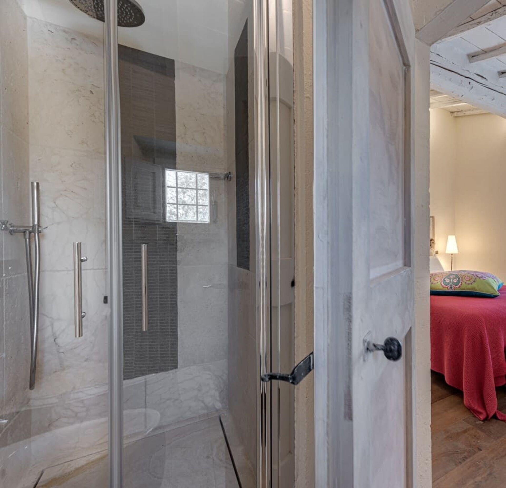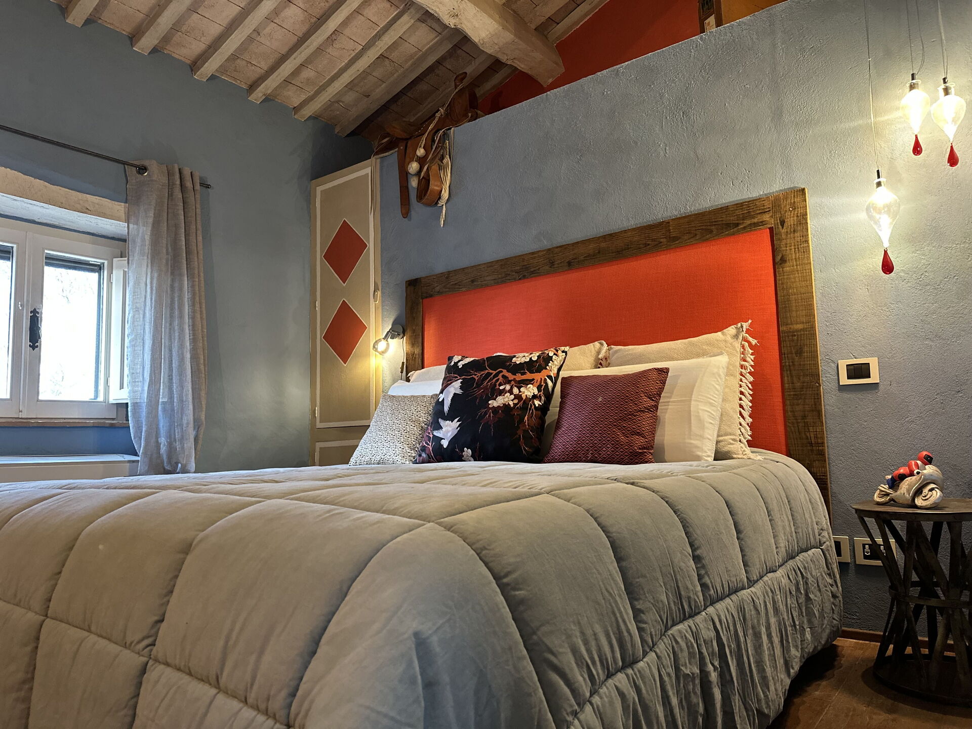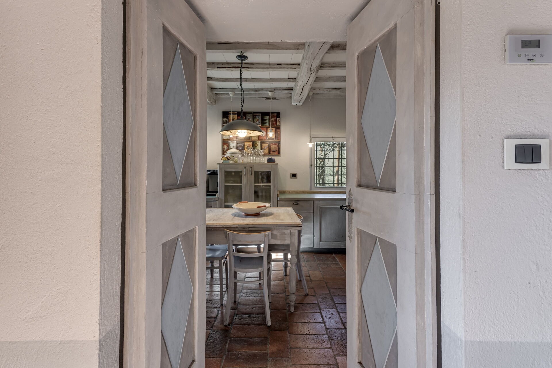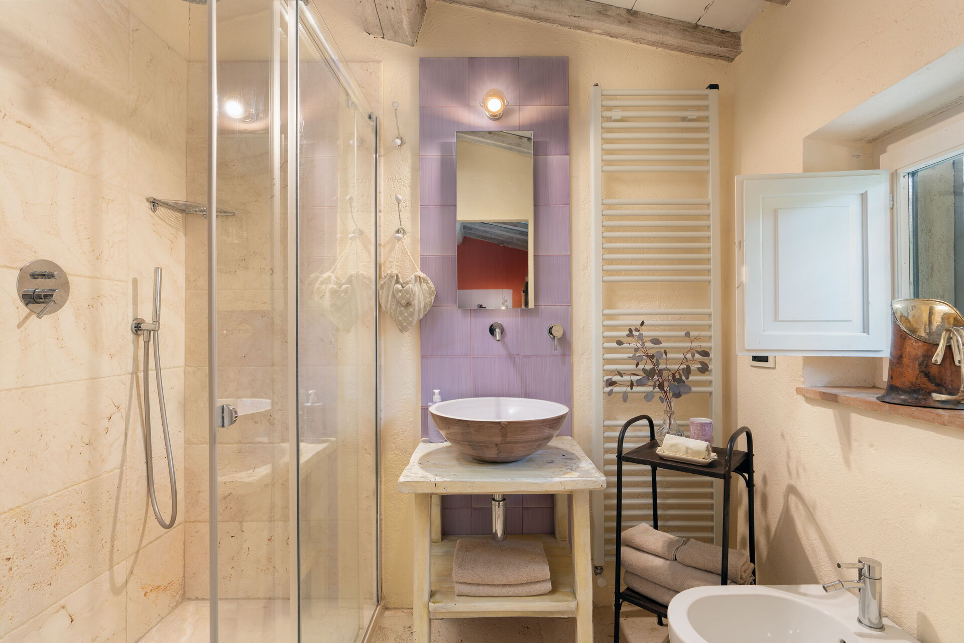 provides privacy and relaxation in a key location for enjoying central Italy. The design of the house, approached with simplicity but good taste, is in a classic/rustic style, with quality oak floors in the bedrooms and terracotta floors in the living area. terracotta floors in the living area. The vaulted ceilings with wooden beams show the traditional elements that were retained during the renovation.