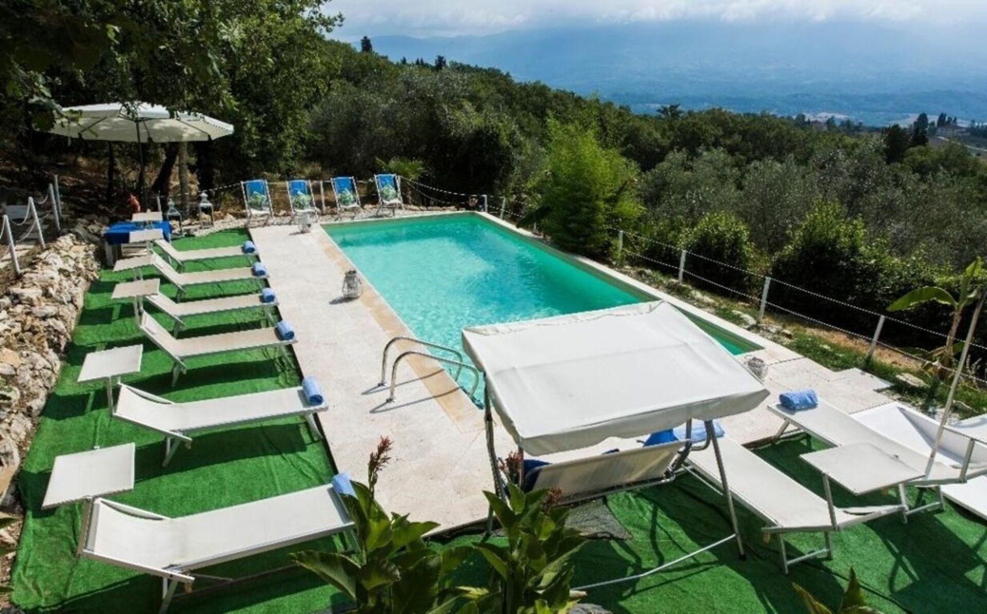 The private garden is where dreams come to life: an oasis of relaxation with a lounge area, a charming gazebo and a large wooden table, perfect for unforgettable al fresco meals. But the real masterpiece is the swimming pool, a true gem of tranquillity (10 x 5 m), where parasols, sun loungers and an inviting hammock await you. From here, the panorama that opens up before you is simply breathtaking.