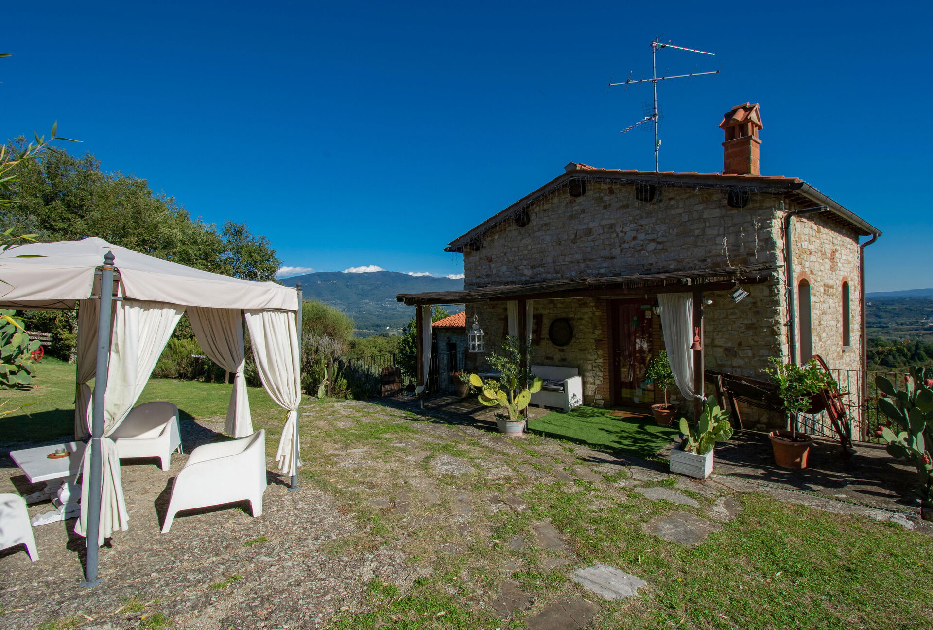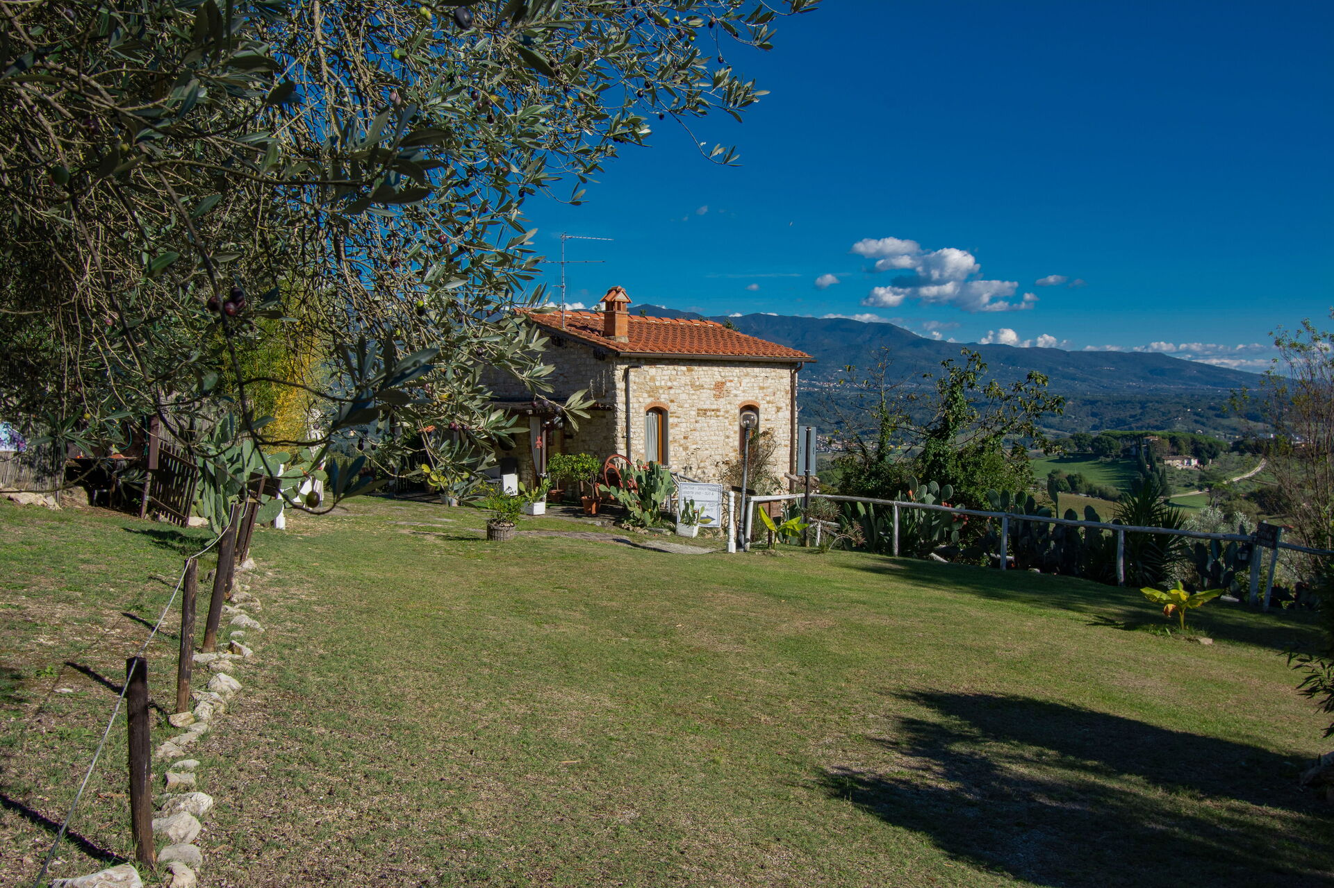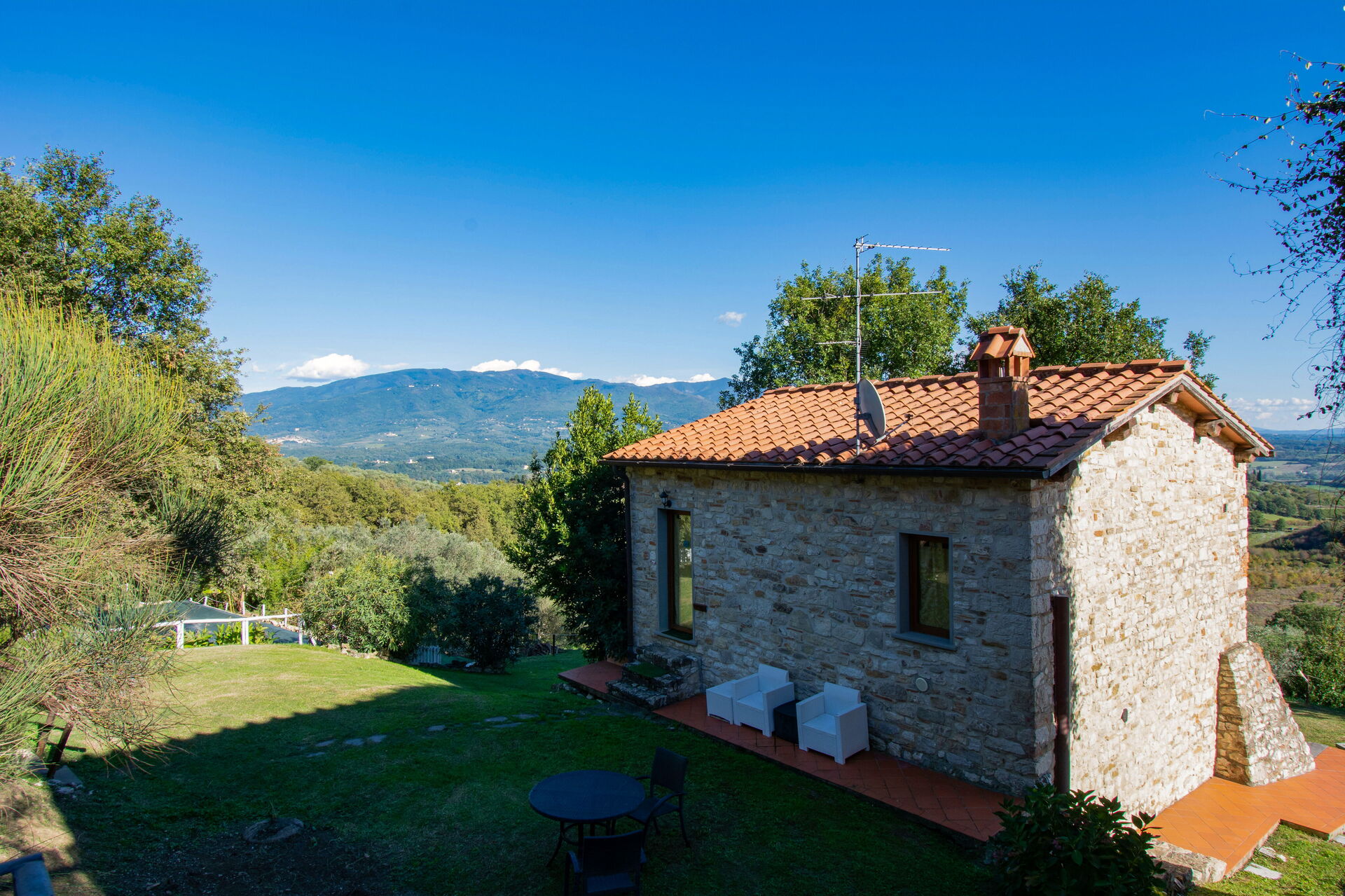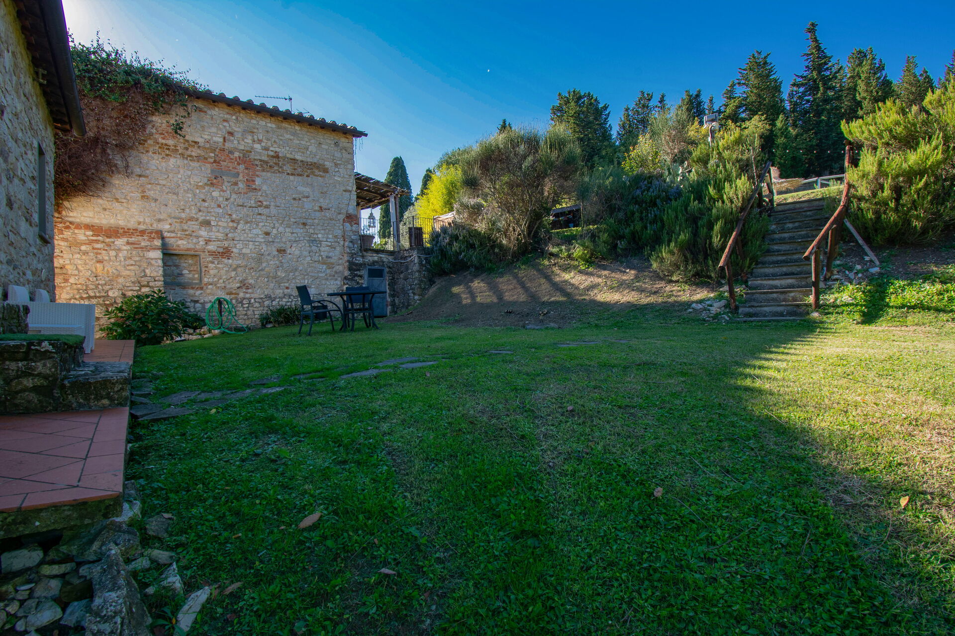 Villa Dallara is composed by 2 beautiful stone cottages located close to each other in the municipality of Rignano sull'Arno, in the Chianti area and only half an hour by car from Florence. The property boasts a private garden with a lounge area, gazebo and large wooden dining table, ideal for pleasant alfresco meals. Next to the gazebo is a delightful swimming pool (10 x 5 m) equipped with parasol, sunbeds, deckchairs and a swing. From the pool you can admire a wonderful view of the surrounding countryside. On the back of the cottages you will find a large outdoor area with fairy-tale atmosphere, children's play area, tables and barbecue where the owners occasionally organize small events. This area can be used by the guests and, upon request, it is possible to organize lunches, buffets or dinners.