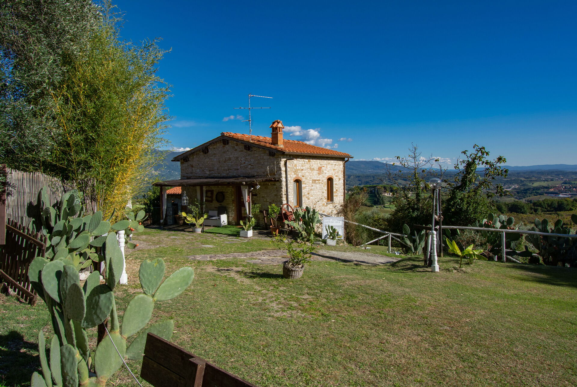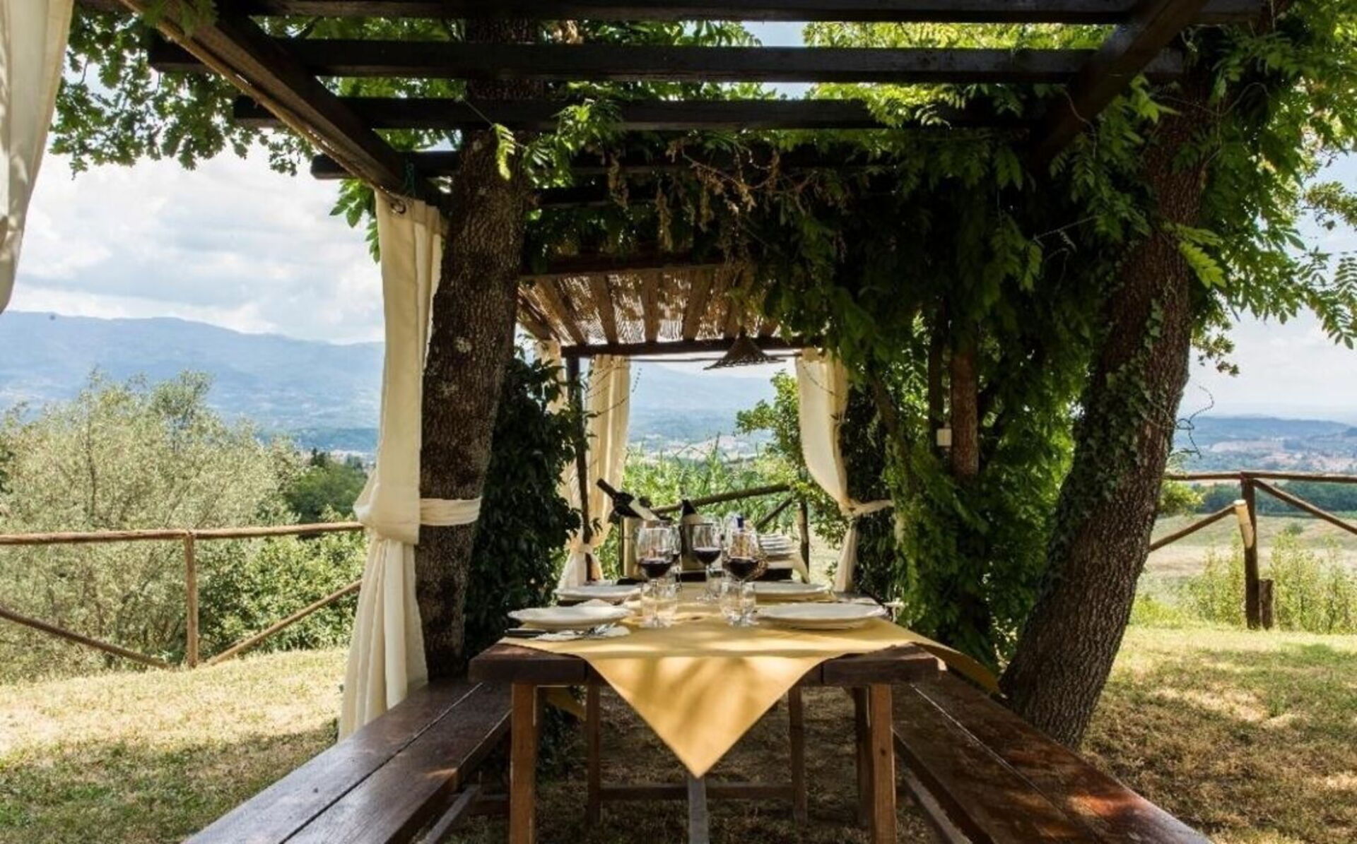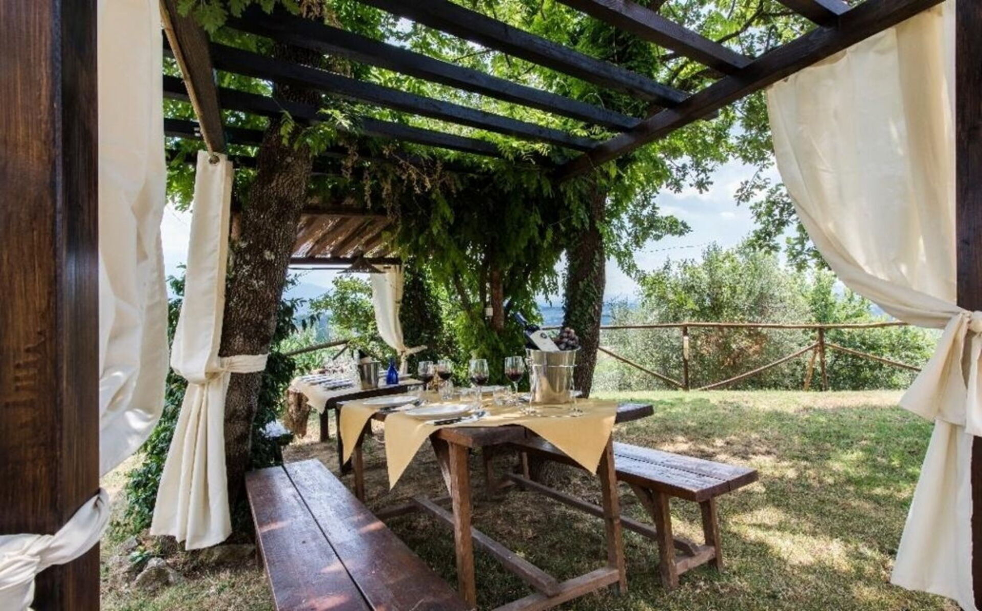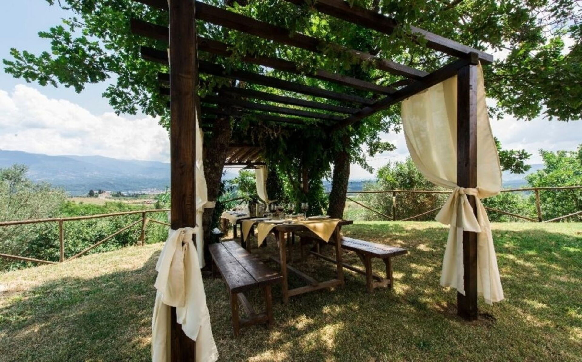 Villa Dallara is composed by 2 beautiful stone cottages located close to each other in the municipality of Rignano sull'Arno, in the Chianti area and only half an hour by car from Florence. The property boasts a private garden with a lounge area, gazebo and large wooden dining table, ideal for pleasant alfresco meals. Next to the gazebo is a delightful swimming pool (10 x 5 m) equipped with parasol, sunbeds, deckchairs and a swing. From the pool you can admire a wonderful view of the surrounding countryside. On the back of the cottages you will find a large outdoor area with fairy-tale atmosphere, children's play area, tables and barbecue where the owners occasionally organize small events. This area can be used by the guests and, upon request, it is possible to organize lunches, buffets or dinners.