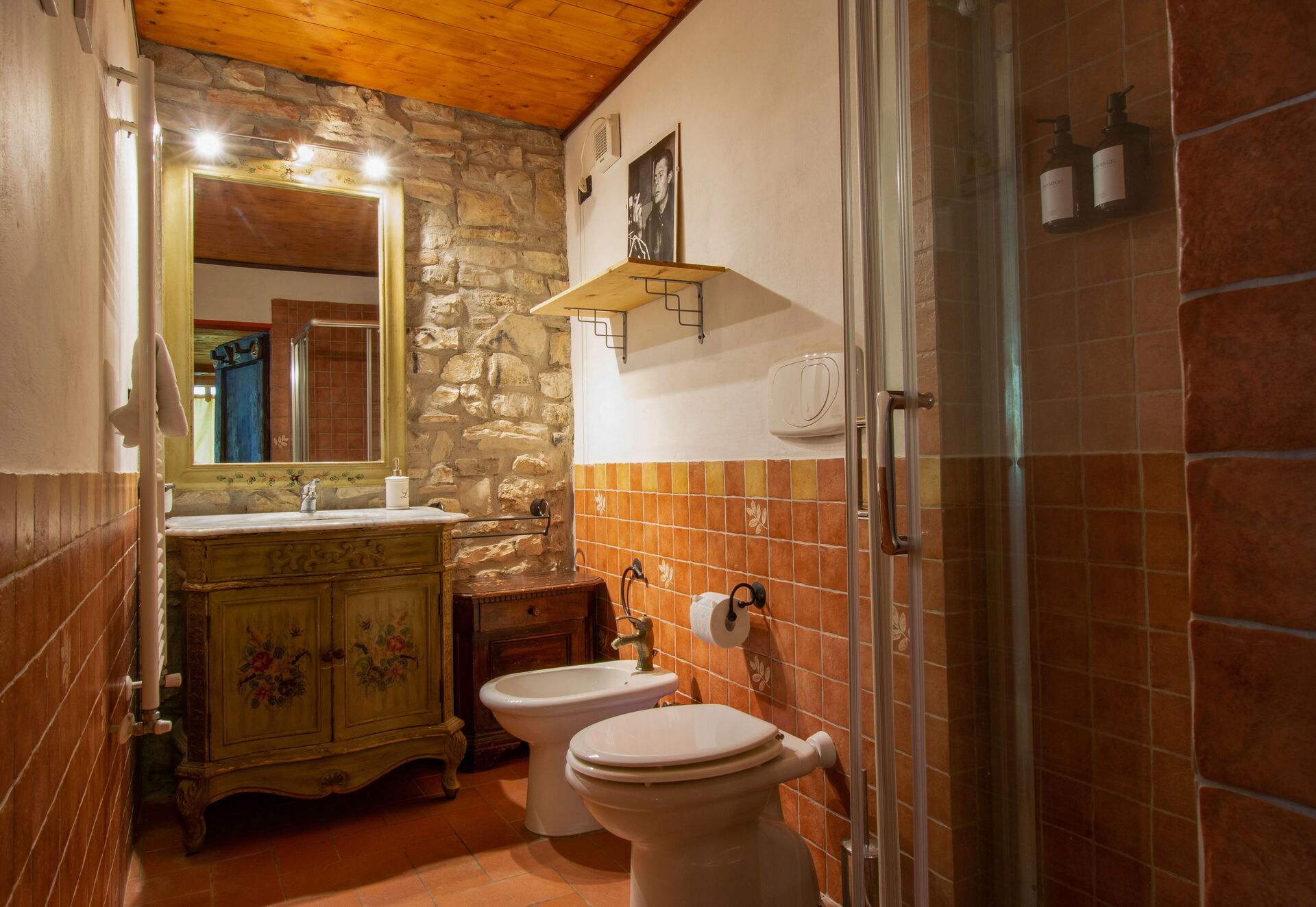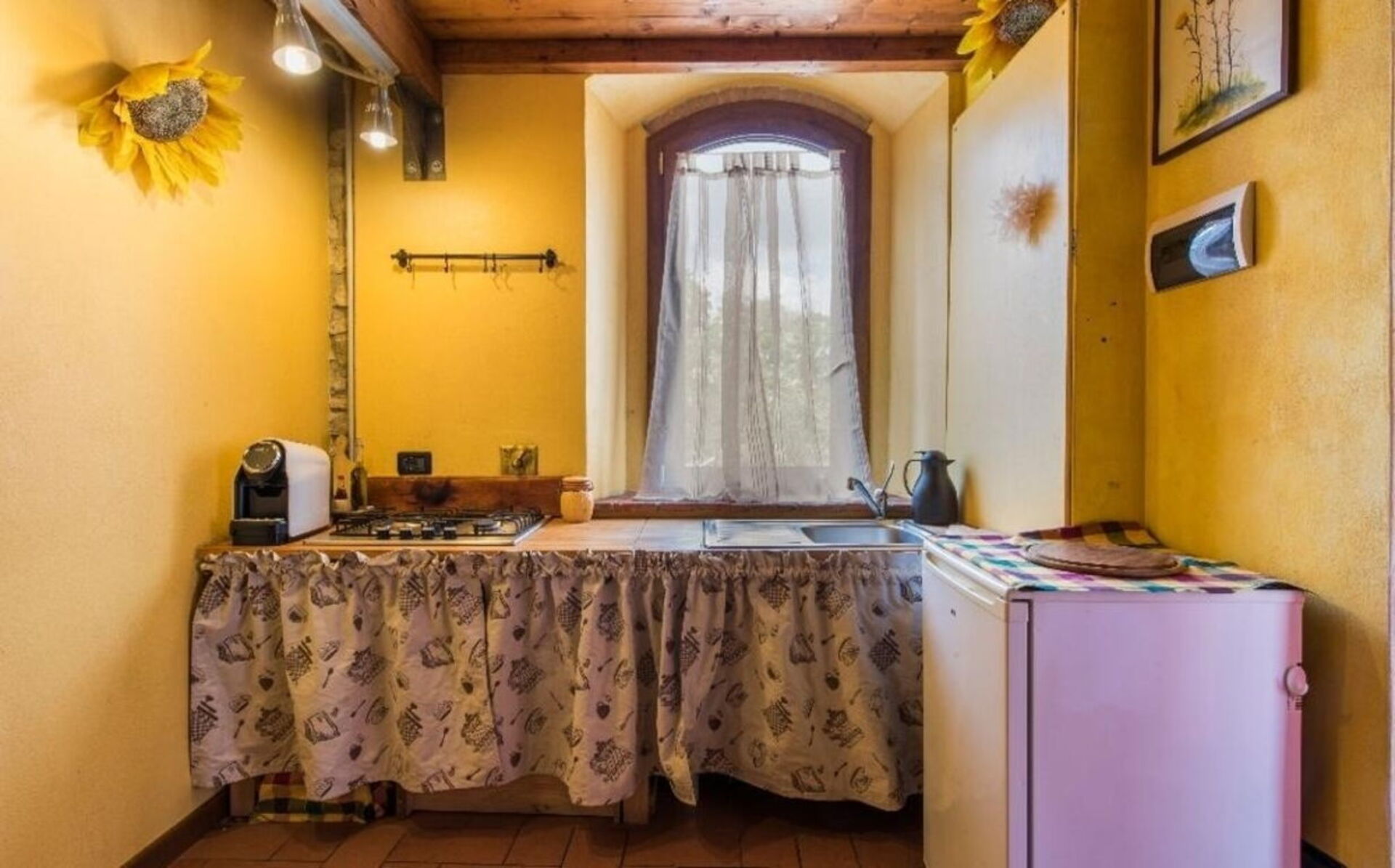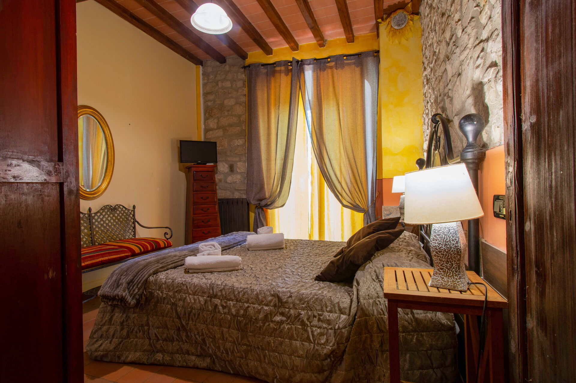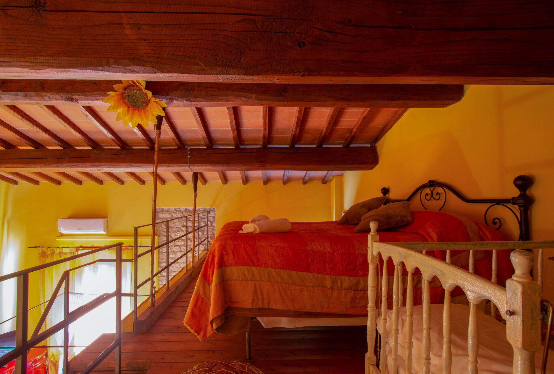 The two cottages consist of 4 apartments (two for each cottage) and can accommodate up to 14 people for a total of 6 bedrooms (including 2 loft rooms) and 4 bathrooms. Each apartment, internally characterized by exposed beams and Florentine terracotta flooring, is made up of 1 double bedroom, an equipped kitchen, a bathroom with shower and air conditioning. Moreover, two apartments also have 2 loft rooms (each with 3 single beds), while the other two apartments have a sofa bed (that can be used if necessary). Air conditioning has an extra cost. Pets are allowed at an extra cost.