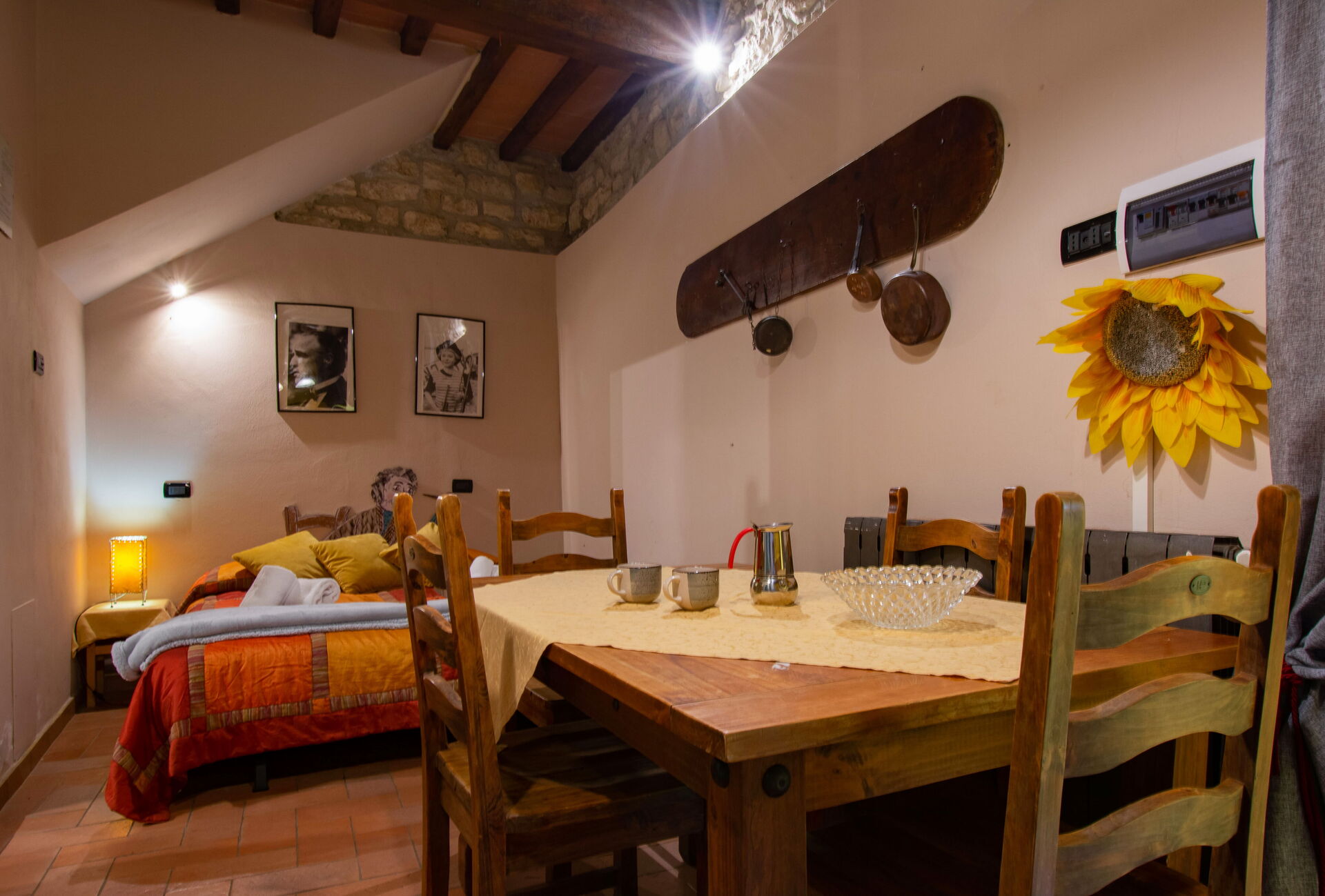 Each apartment is made up of 1 double bedroom. Moreover, two apartments also have 2 loft rooms (each with 3 single beds), while the other two apartments have a sofa bed (that can be used if necessary).