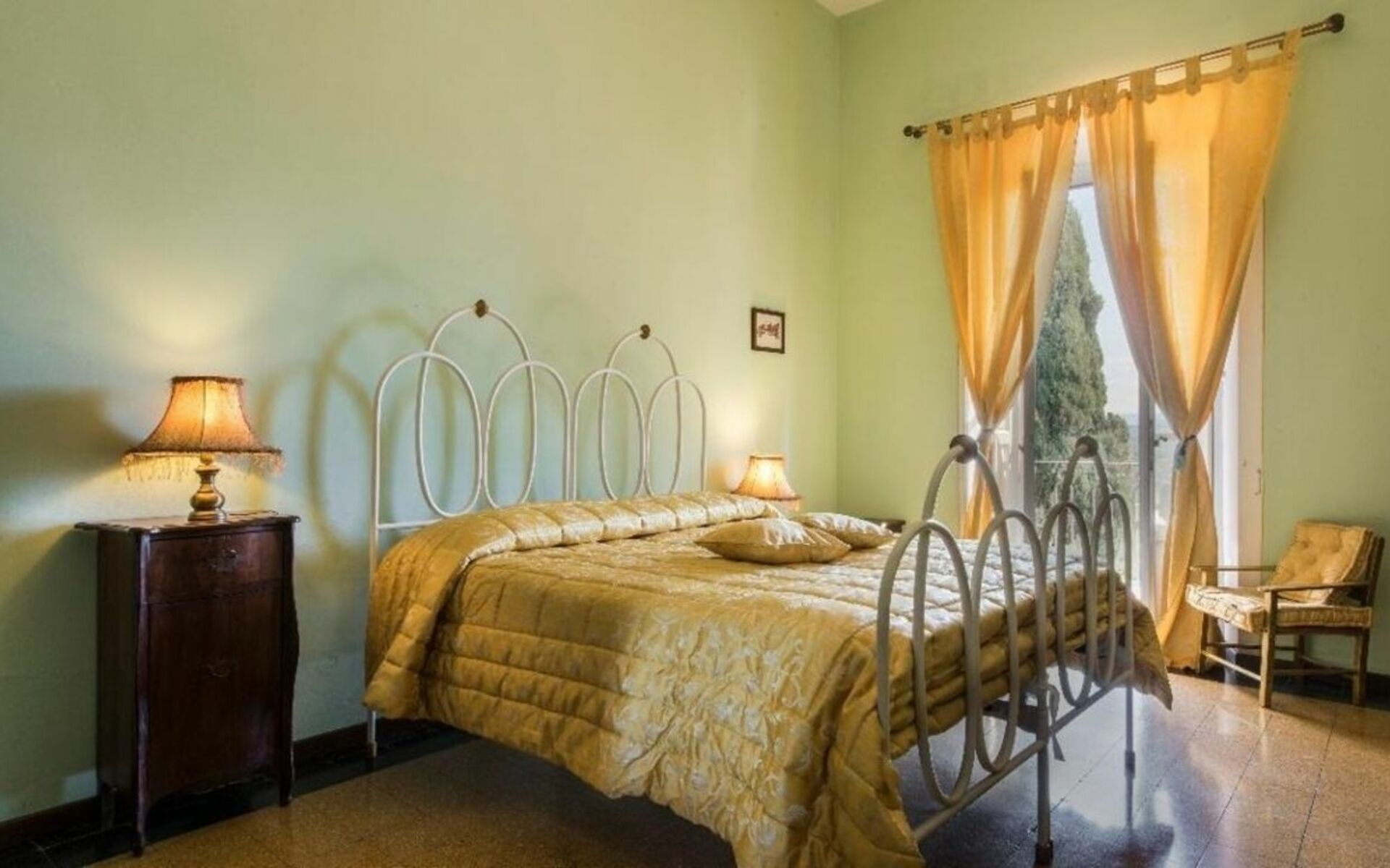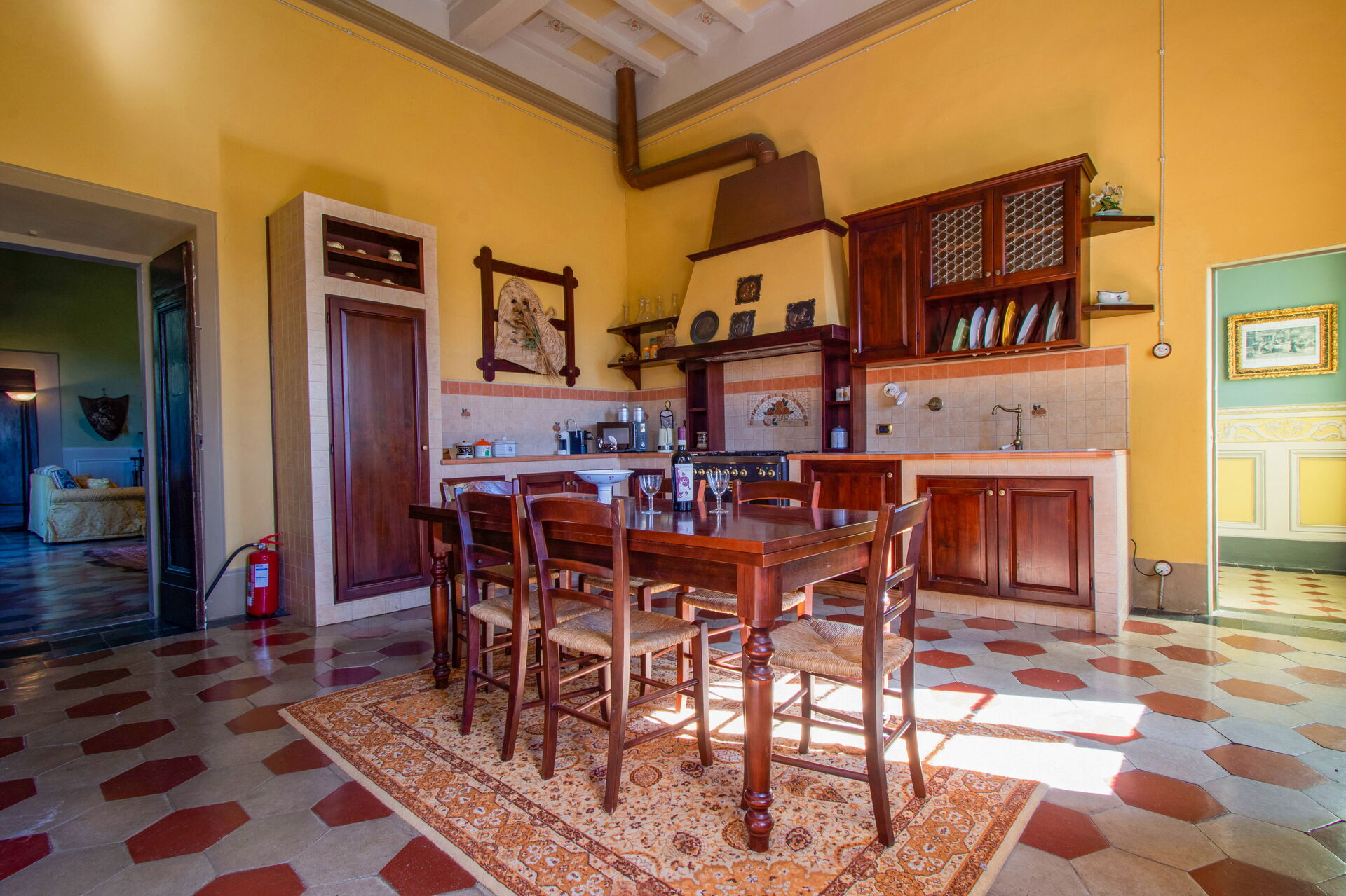 Ground floor: The ground floor is dedicated to the living area consisting of: three living rooms with sofa, fireplace and tv, and a spacious kitchen (equipped with breakfast table, fridge, oven, coffee maker, dishwasher, toaster and microwave). Following you will find two double bedrooms: one with four-poster bed and bathroom with shower; the other one with a small balcony and bathroom with shower. First floor: The upper floor, accessible by a wooden staircase, is dedicated to the sleeping area, consisting of 4 double bedrooms divided as follows: - a large double bedroom with ensuite bathroom with shower, a double sofa bed and air conditioning; - a large double bedroom with air conditioning (when the physicist Enrico Fermi stayed); - two smaller double bedrooms without air conditioning. These last 3 bedrooms share a bathroom with shower. Only two bedrooms on the first floor are equipped with air conditioning. Each other bedroom is provided with fan. Pets are allowed at an extra cost.