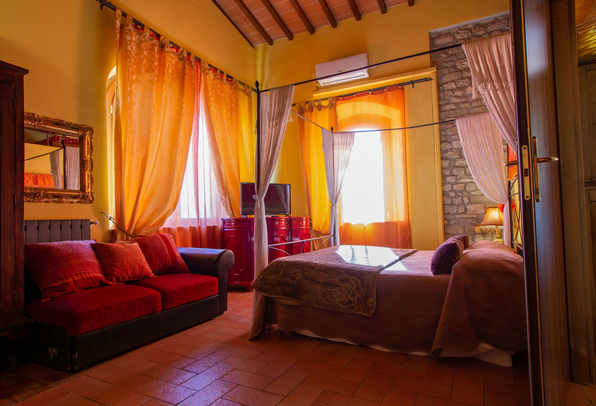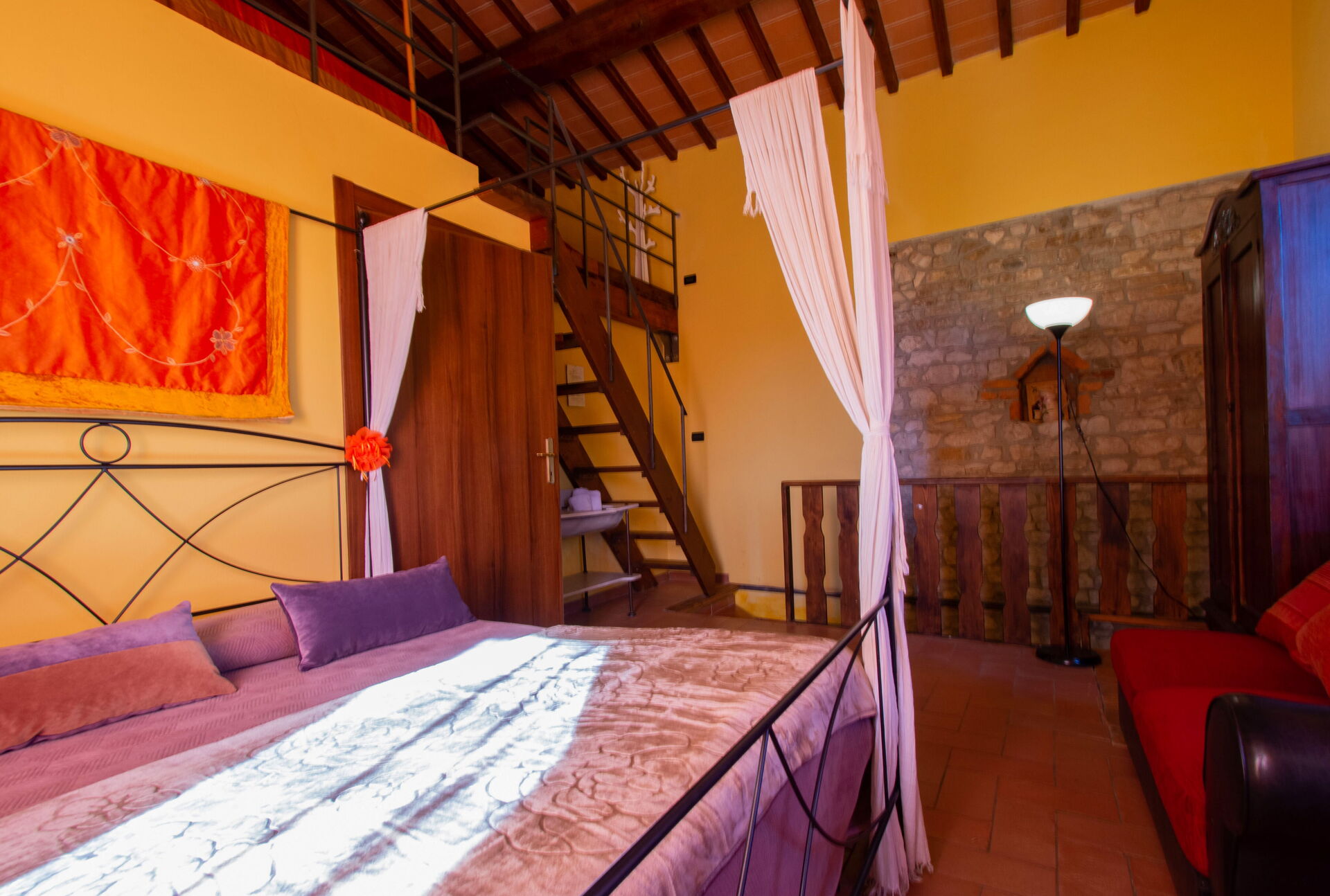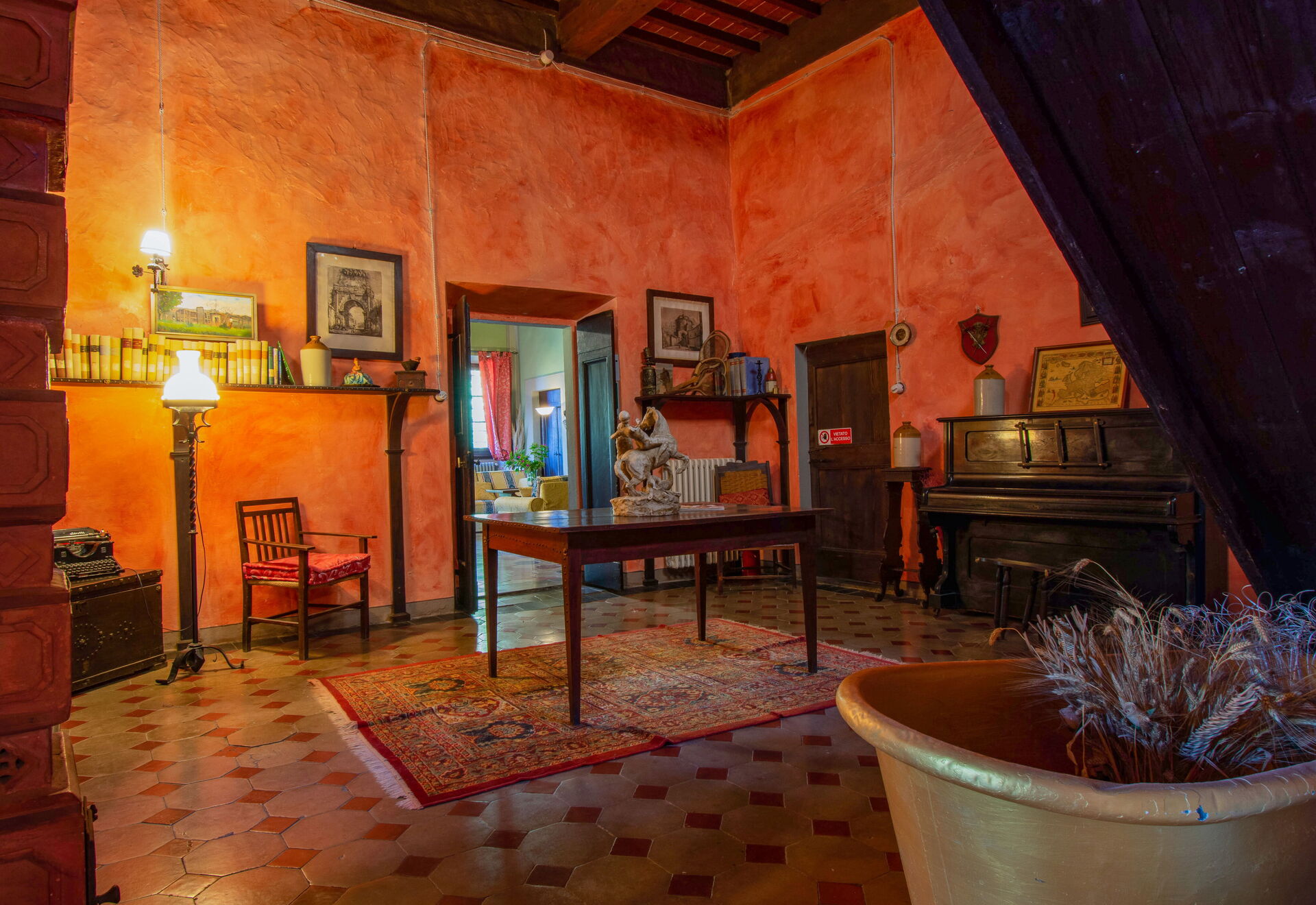 First floor: The upper floor, accessible by a wooden staircase, is dedicated to the sleeping area, consisting of 4 double bedrooms divided as follows: - a large double bedroom with ensuite bathroom with shower, a double sofa bed and air conditioning; - a large double bedroom with air conditioning (when the physicist Enrico Fermi stayed); - two smaller double bedrooms without air conditioning.