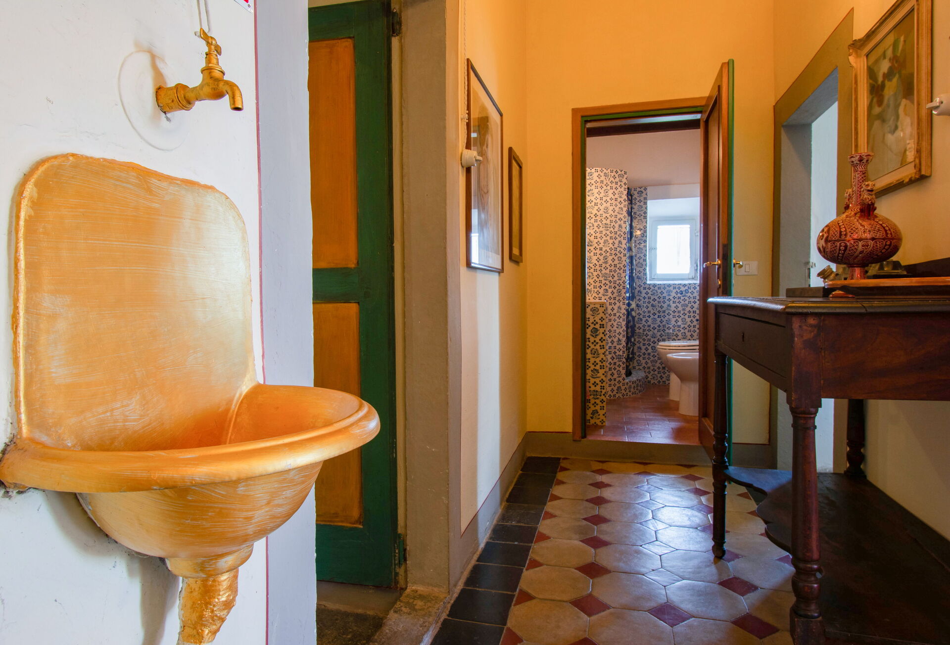 Villa del Mosaico is located in the municipality of Rignano sull'Arno, in the area of Chianti and just half an hour by car from Florence. This area boasts a rich artistic and architectural heritage (including several churches, parishes, museums of sacred art and the Sammezzano Castle, notable for its Moorish Revival architectural style and its wide park). Rignano sull'Arno is located only 6 km from the villa and here you will find all necessary services: grocery stores, post office, bank/ATM, pharmacy, bars, restaurants, supermarket. Among the natural treasures, you will find: the forest of Vallombrosa (a biogenetic nature reserve rich in conifer woods, hosting an extraordinary abbey of Benedictine monks) and the forest of St. Anthony (a protected nature area of local interest, covering 900 hectares). The forest of Vallombrosa has one of the most famous experimental arboretum of Europe, containing about 3200 exemplars of 1200 different species coming from all over the world. This area has several marked hiking paths and nature itineraries that can be explored on mountain bike, on foot, or on horseback. The proximity to the Chianti Classico region - known worldwide for the prestigious wine - allows you to visit its charming villages such as Gaiole, Radda and Castellina. Arezzo and Siena are also easily reachable by car. Lastly, if you love shopping, we recommend a visit to The Mall Outlet (8 km), where you can find the most important brands of international fashion.